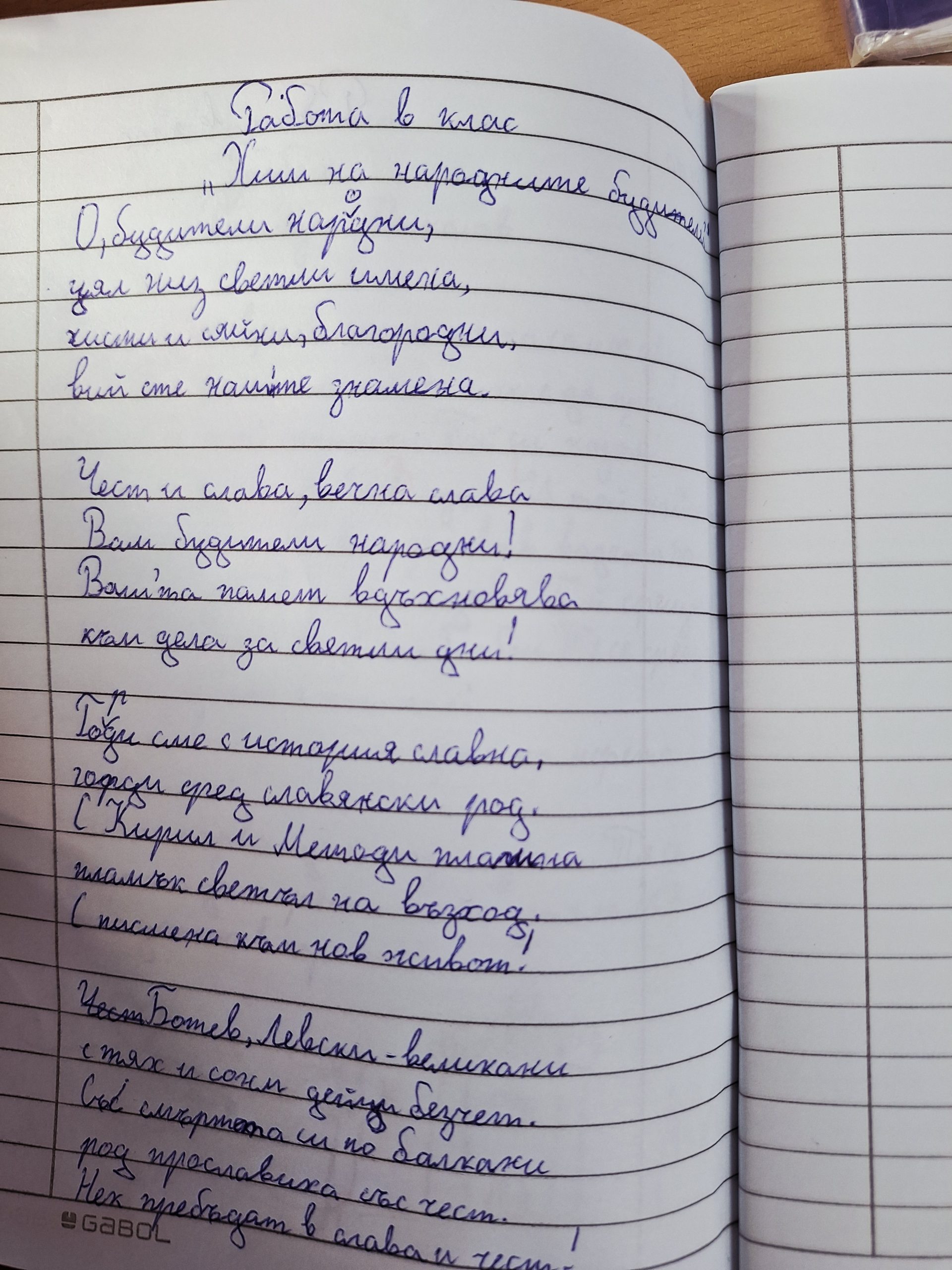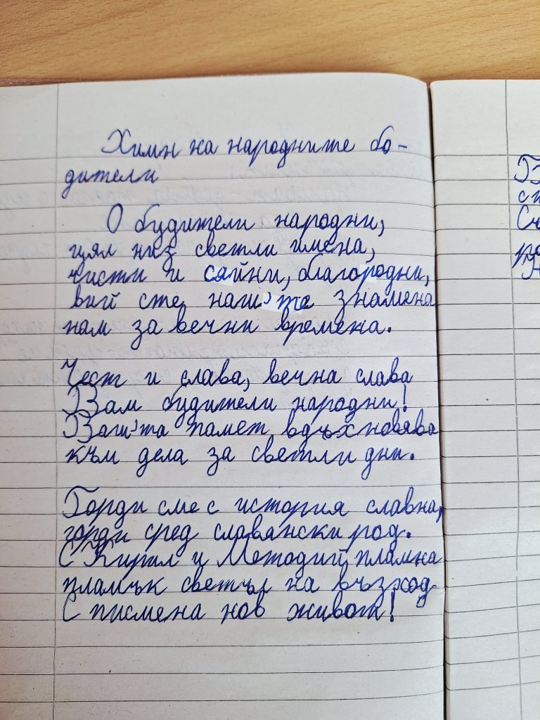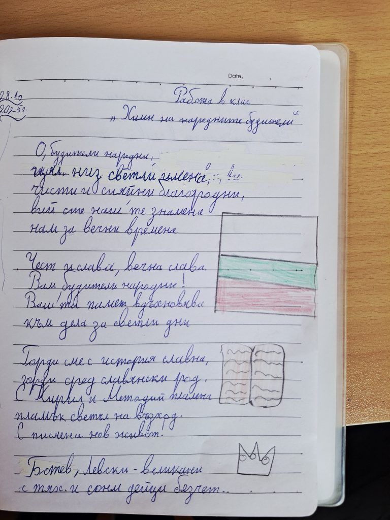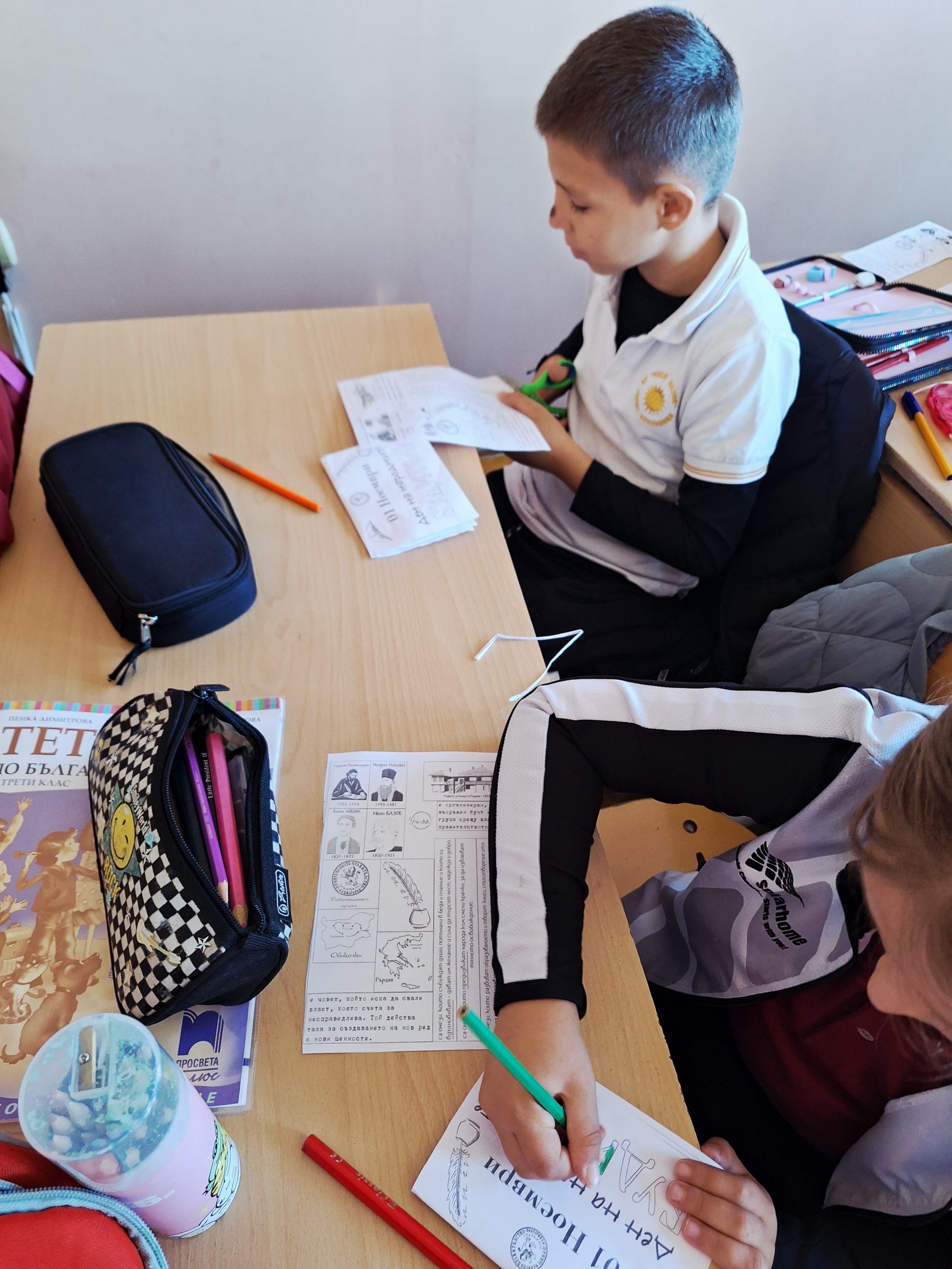 Учениците от 3. Б клас, с класен ръководител Гергана Манчева, отдадоха почит в седмицата преди 1-ви ноември с различни дейности. В часа на класа изгледаха видеа свързани с различни будители, които са допринесли за развитието на българския народ през годините и които са се борили за свободата на България. Също така се проведе беседа, в която учениците отговаряха и разказваха какво знаят за тези българи. Докато гледаха образователните видеа, пяха песни посветени на великите личности. В часа по литература, която тема беше посветена на този празник, изработиха чудесна книжка, в която трябваше да попълнят на празните места, дали техни портрети, или цитати и думи отговарящи на точното значение. След като сглобиха книжката всеки я оцвети по свое желание. Учениците знаят, че великото дело бива продължавано от съвременните учители, творци и културни дейци!