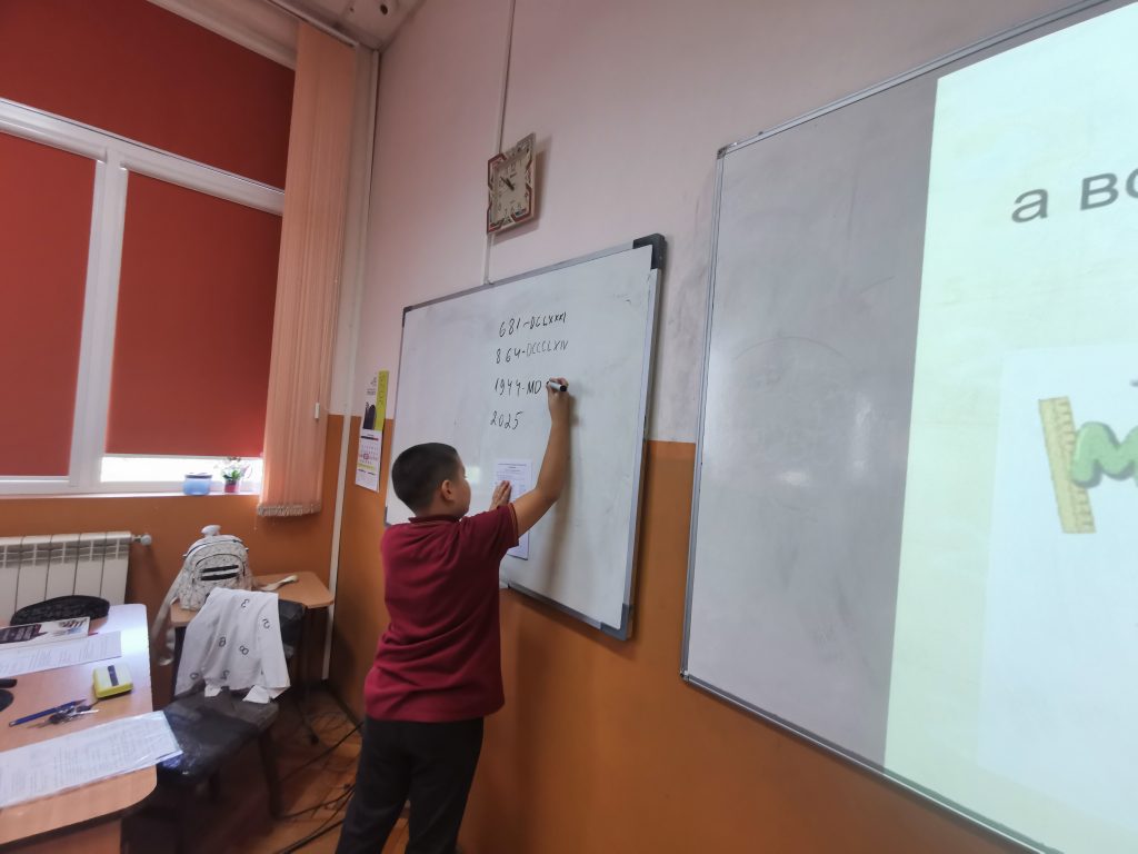 По време на часа петокласниците решаваха математически загадки, свързани с годините на значими български победи и личности, писаха римски числа, изчисляваха тайни кодове и дори пресмятаха „стойността“ на думата БЪЛГАРИЯ чрез числови стойности на буквите.