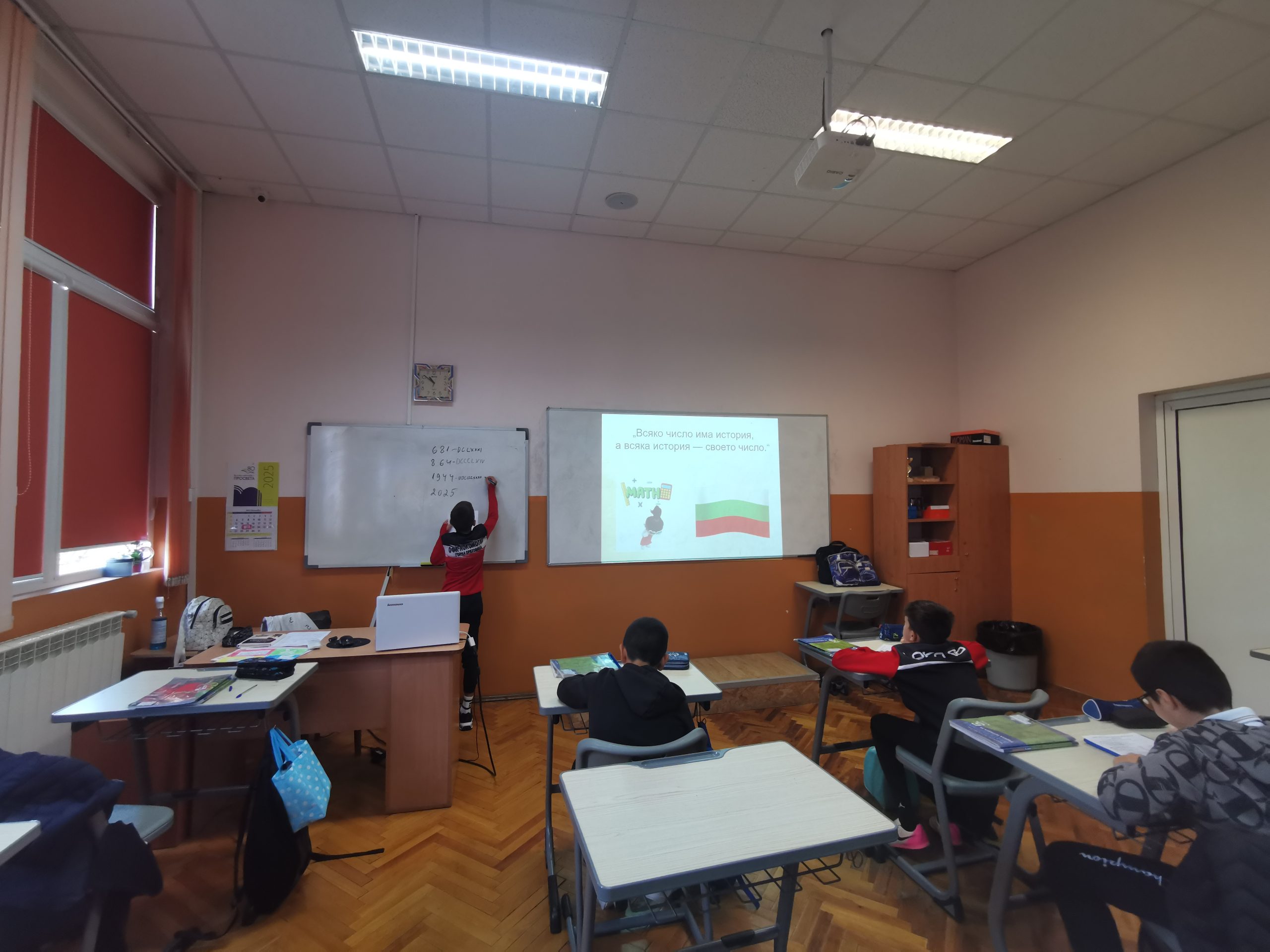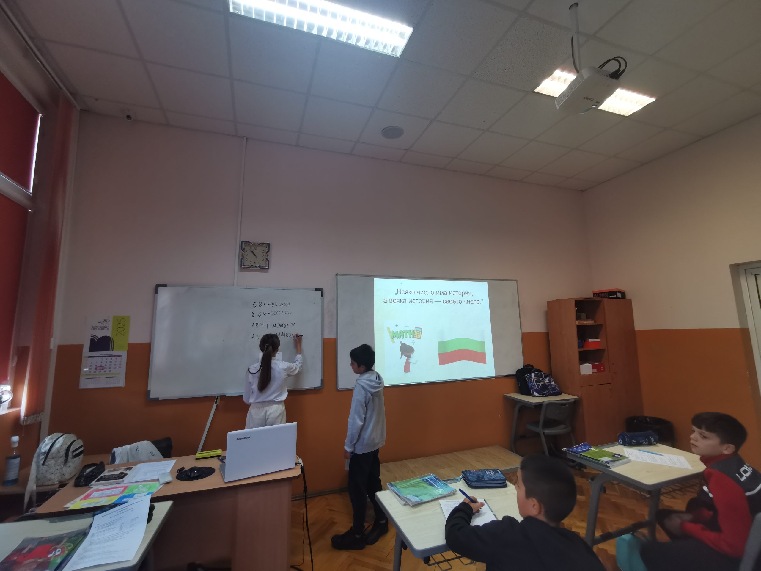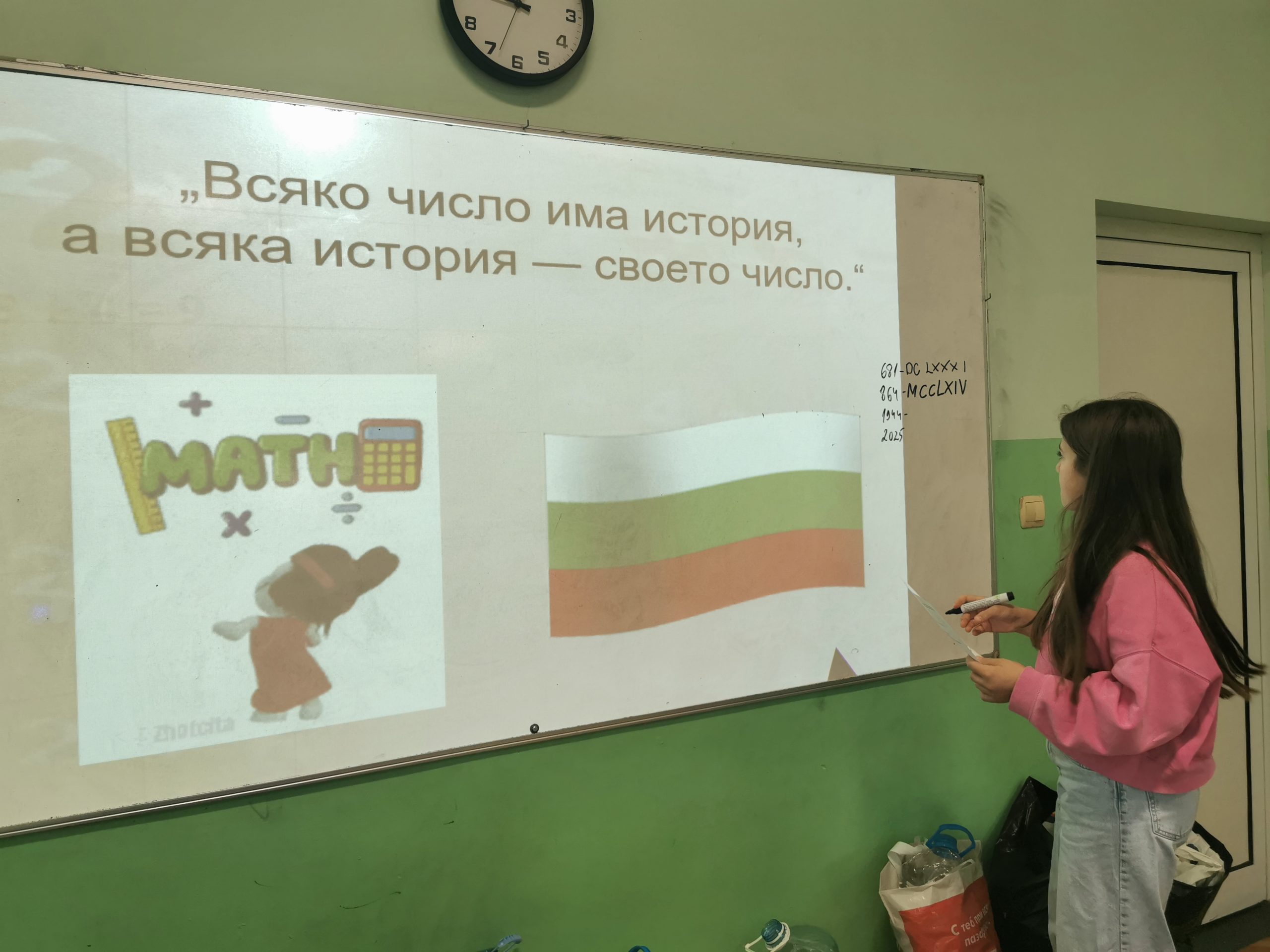 По време на часа петокласниците решаваха математически загадки, свързани с годините на значими български победи и личности, писаха римски числа, изчисляваха тайни кодове и дори пресмятаха „стойността“ на думата БЪЛГАРИЯ чрез числови стойности на буквите.