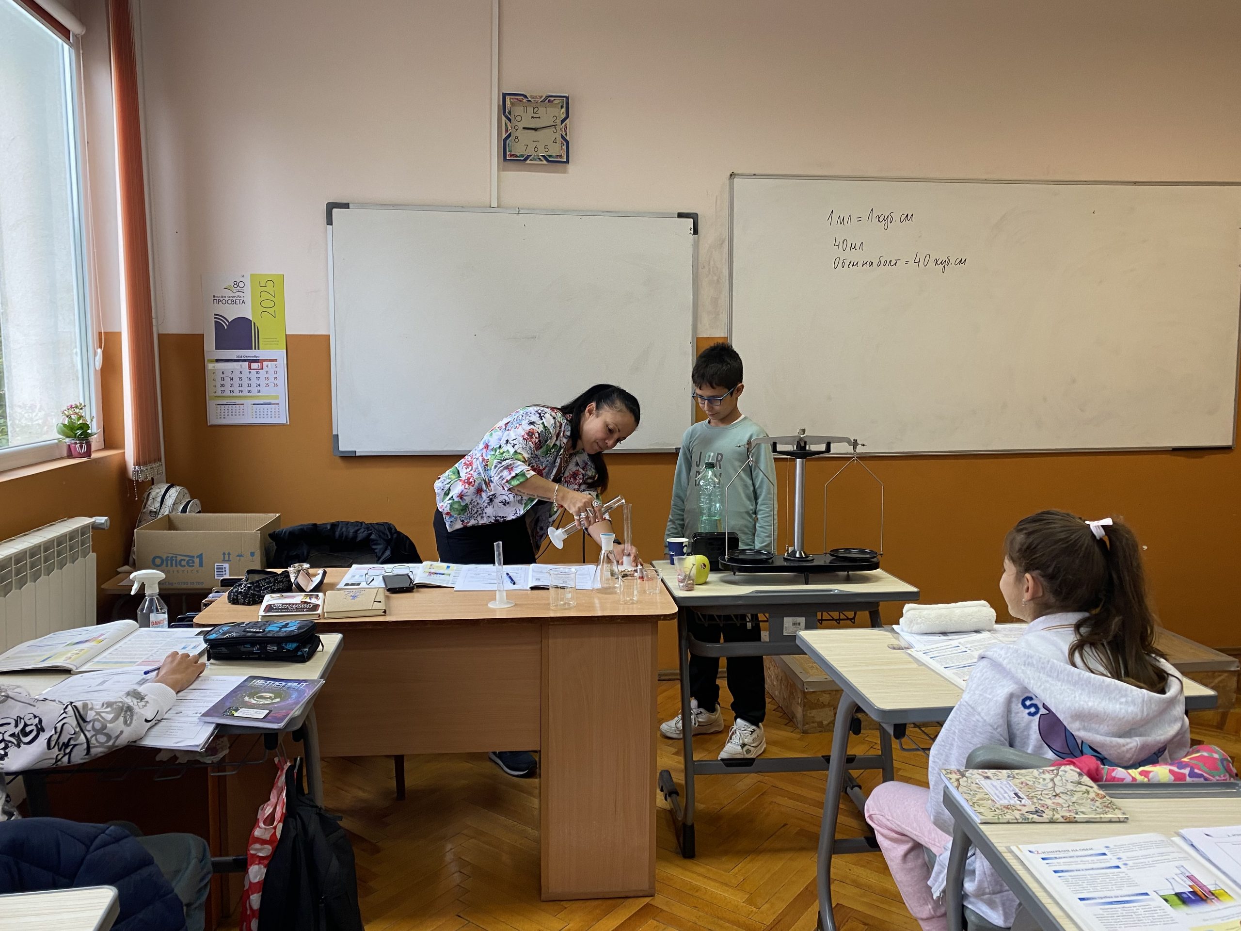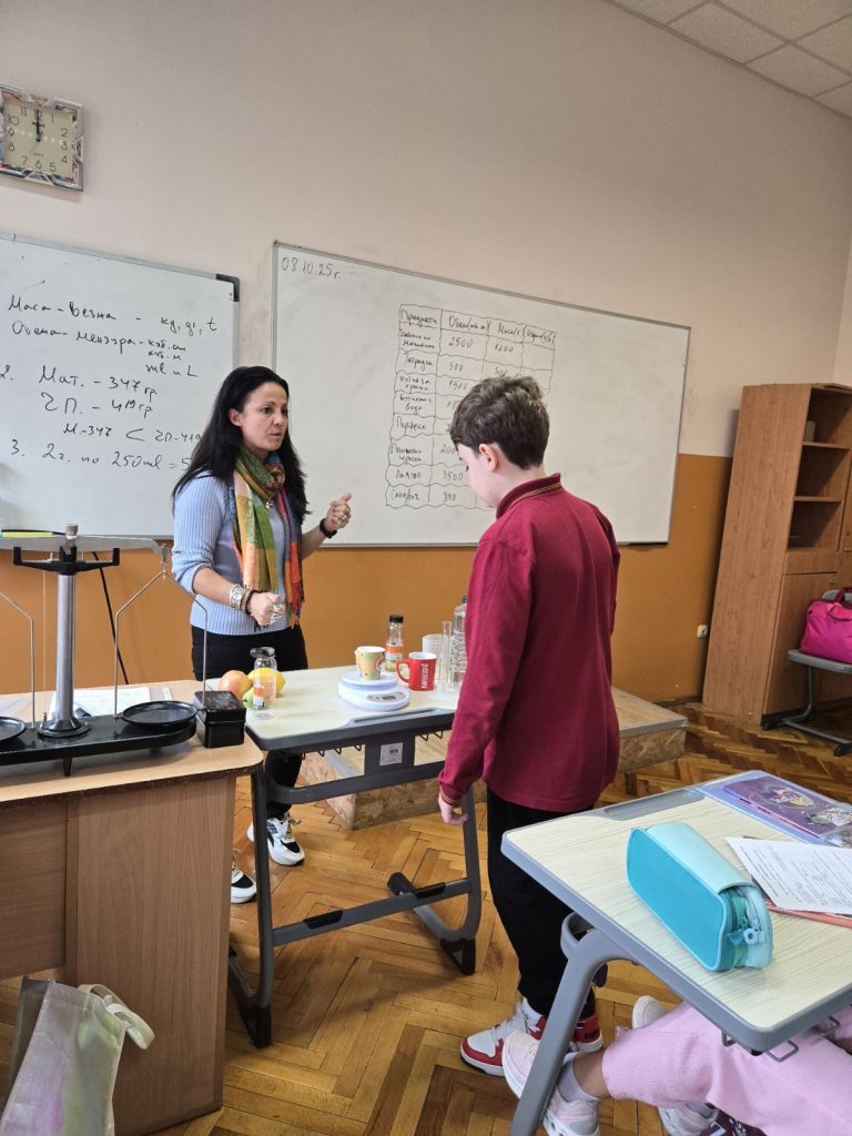 На 7 октомври 2025 година в ОУ „Иван Вазов“ се проведе вълнуващ бинарен урок по математика и човекът и природата с учениците от пети клас на тема: „Измерване и пресмятане на обем и маса на телата“. Под ръководството на г-жа Калина Йорданова, г-жа Йорданка Димитрова и г-жа Теодора Узунова децата приложиха знанията си за обема и масата на телата на практика – чрез измерване, сравняване и изчисляване.
