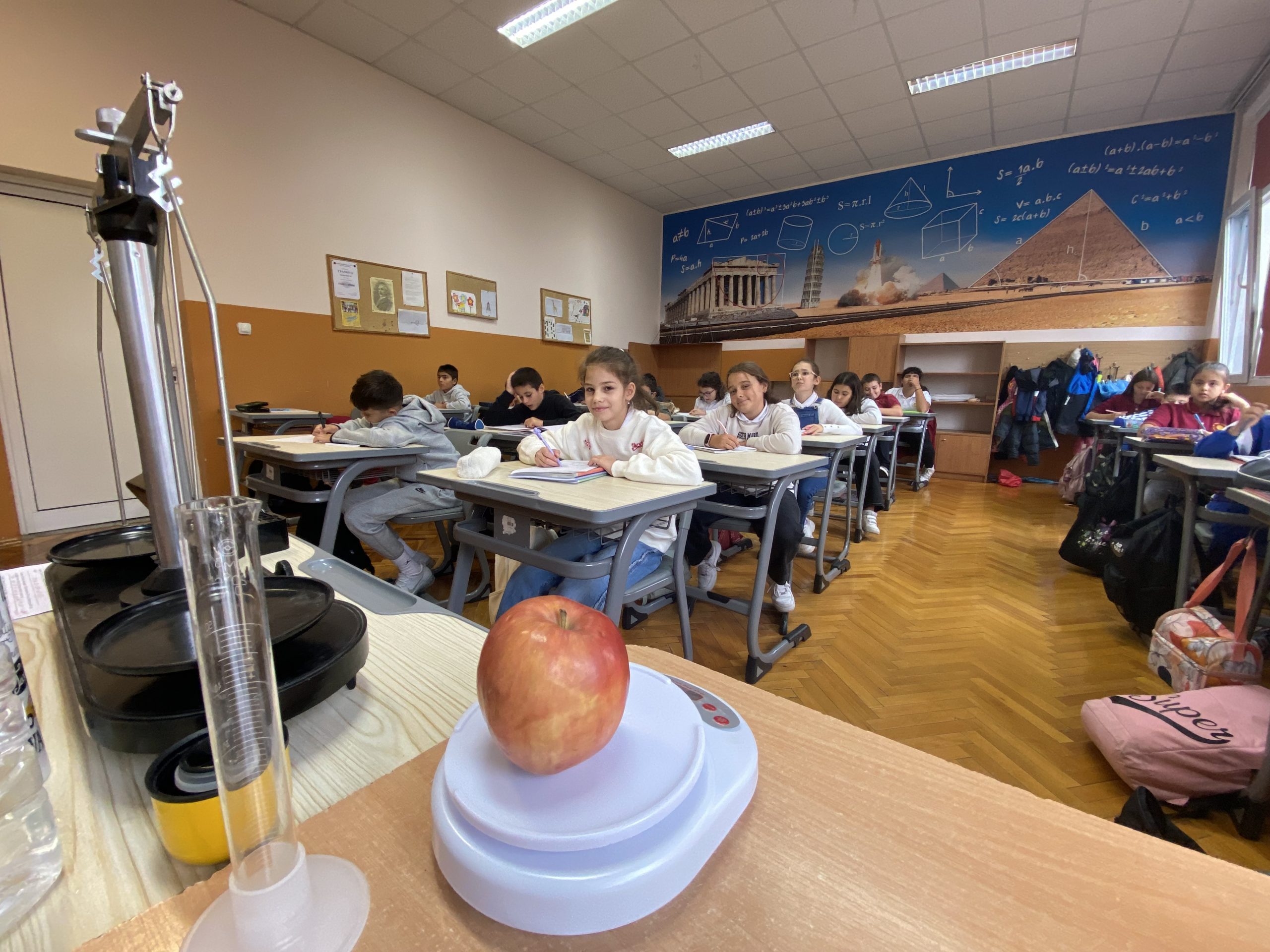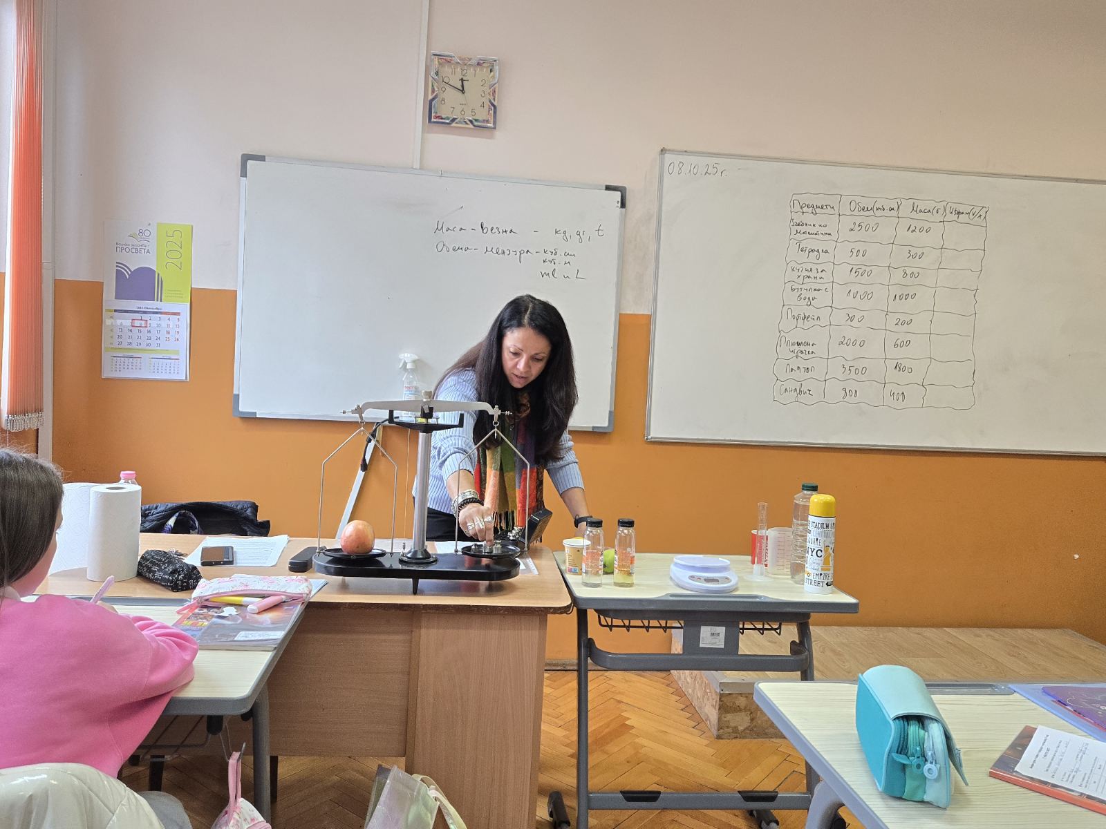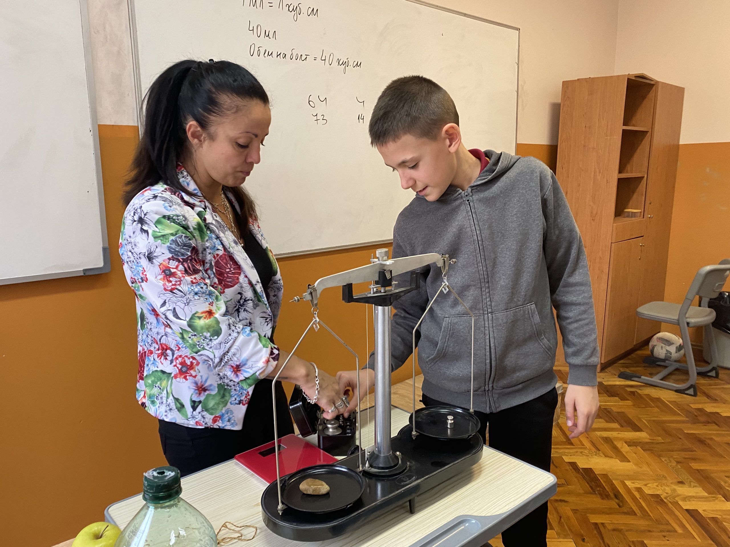 Поставени в ролята на учени, петокласниците измерваха масата на твърди тела и течности с везна, сравняваха и обобщаваха резултатите. За определяне на обема на телата и вместимостта на различни съдове извършиха различни експерименти.