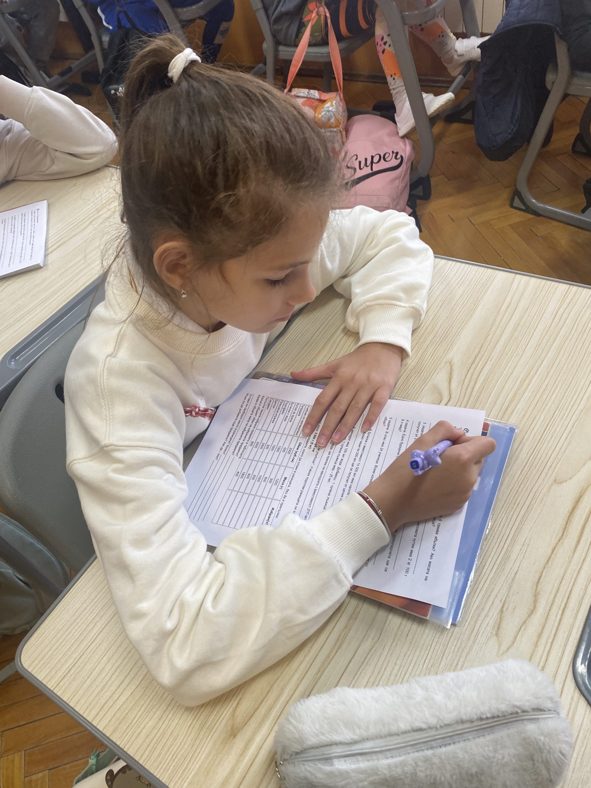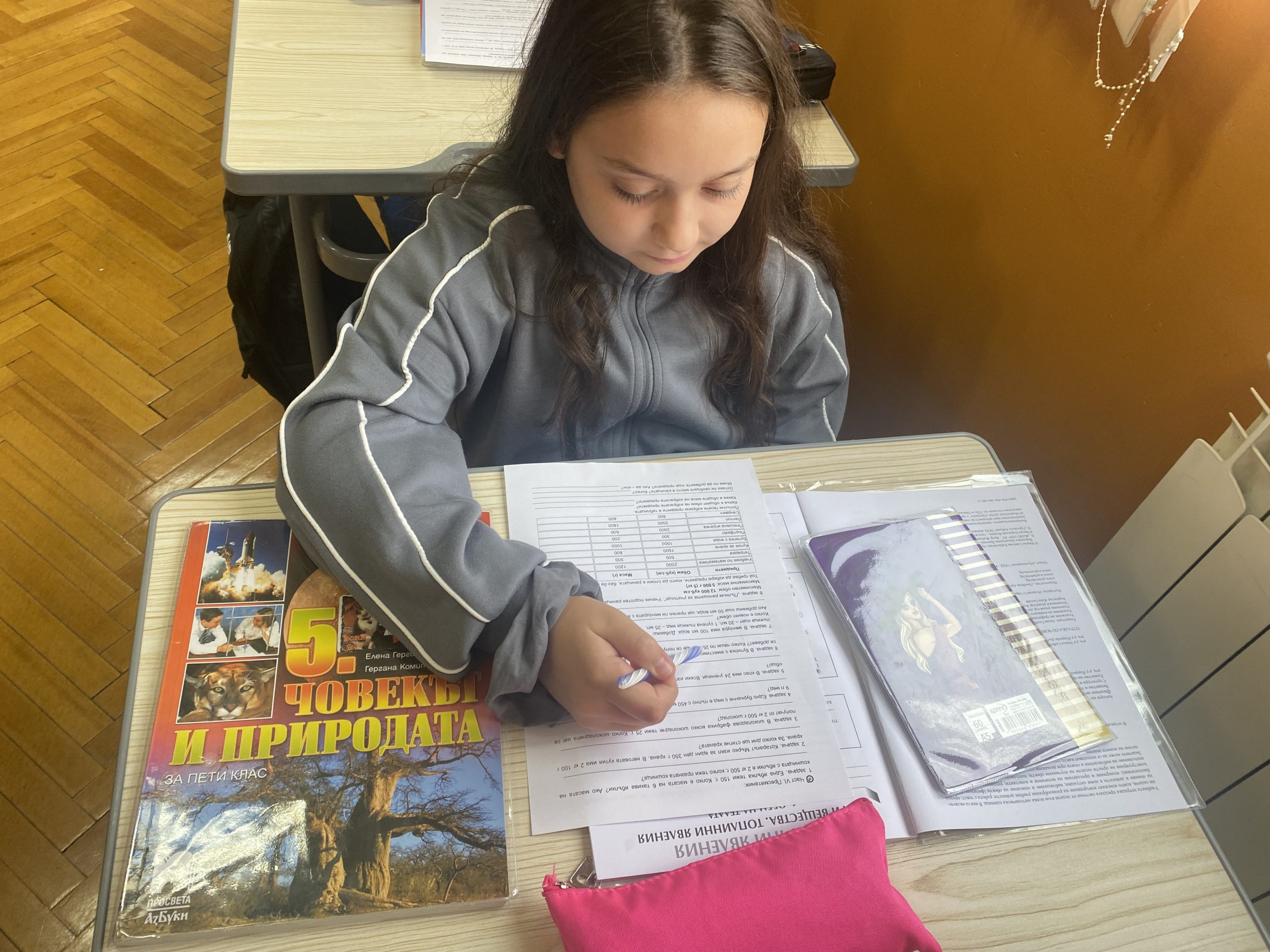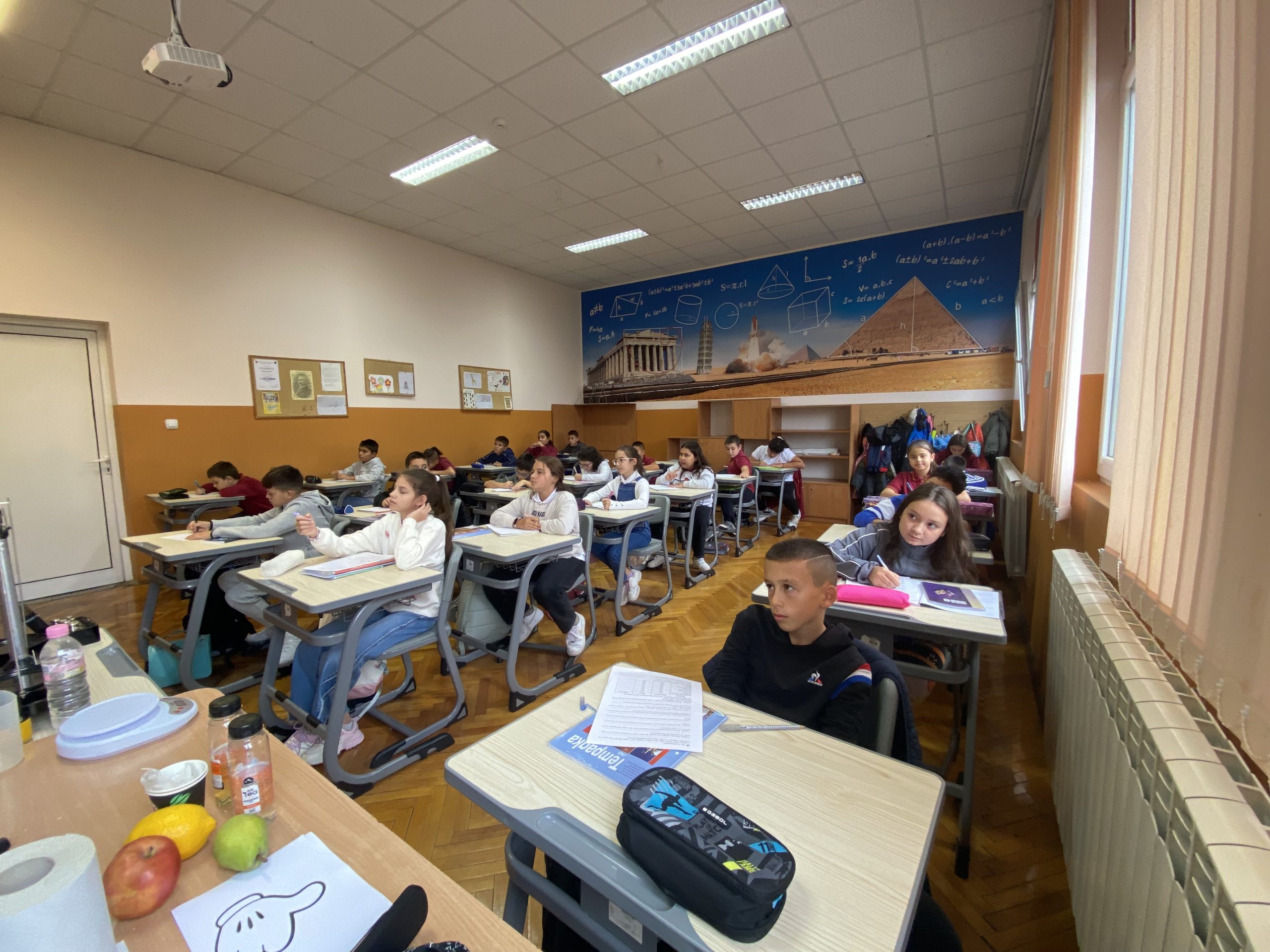В математическата част на урока учениците използваха знанията си за преобразуване на мерни единици. Чрез точни изчисления те пресмятаха различни задачи. Най-забавна и практически полезна за тях бе задачата, в която трябваше да подредят в своята ученическа раница предмети, така че да не надвишават определен обем и маса. Упражнявайки логическо мислене, точно пресмятане и планиране, всеки петокласник избра нужните за училище предмети, без да препълни и направи прекален тежка своята раница.