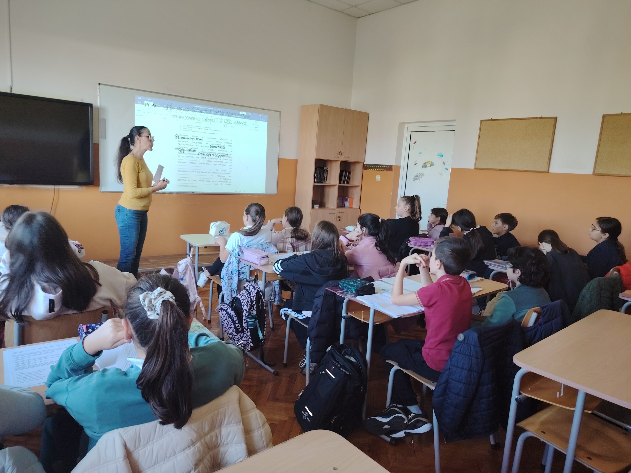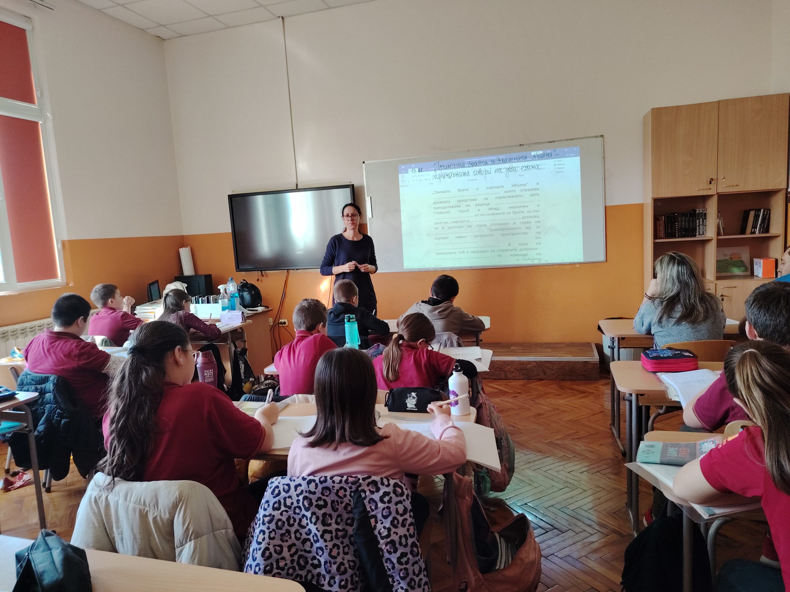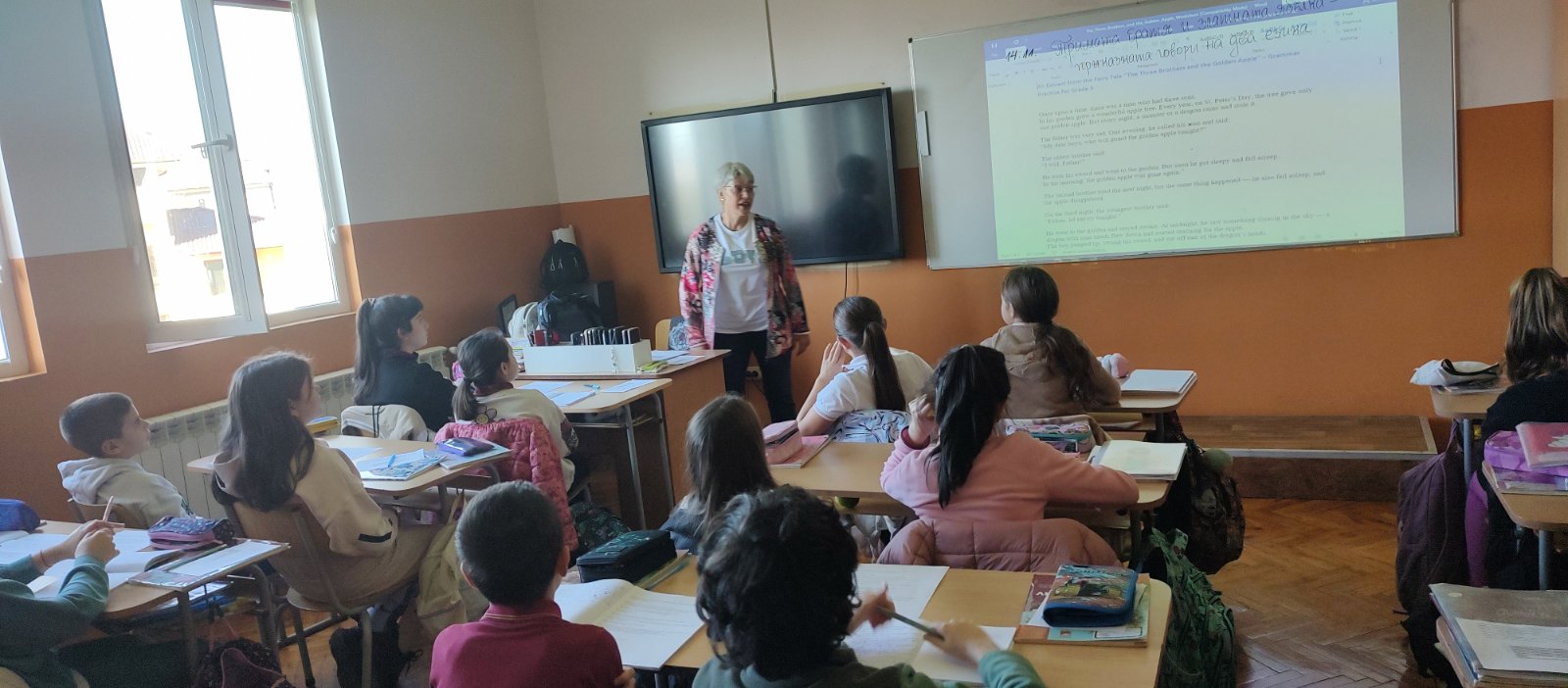 Петокласниците бяха главни действащи лица по време на вълнуващ бинарен урок, посветен на народната приказка „Тримата братя и златната ябълка“, в който те имаха възможност да изследват произведението едновременно през призмата на българския език и литература и английския език.