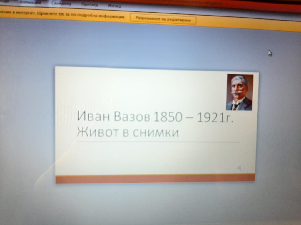 Учениците от 4 клас – група ЦДО, с преподавател Емил Нейков, се включиха активно в дните, посветени на празника на училището. Гледаха презентацията „Животът на Вазов в снимки и картини“. Дискутираха за творчеството на Вазов, за романа „ Под игото“ и ролята на Априлското въстание в историята на България. Поставиха въпроси, свързани с живота на великия писател и прототипите на неговите герои.