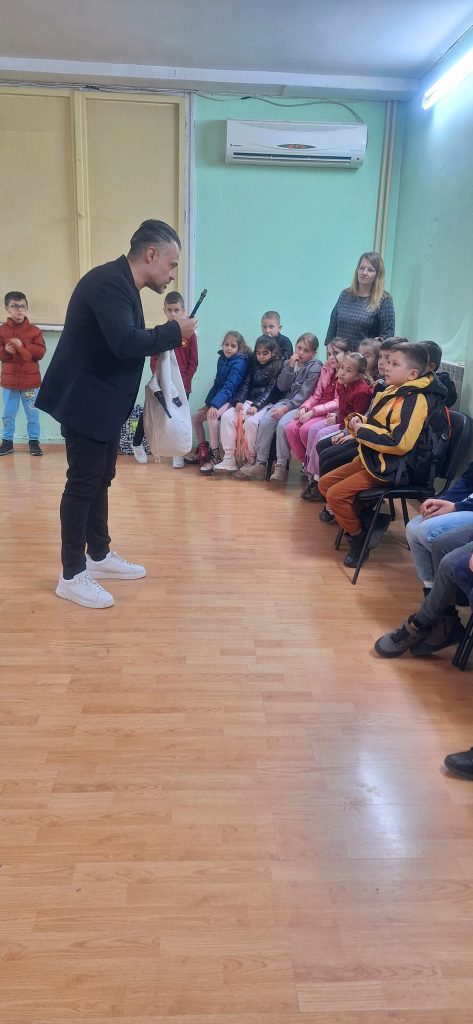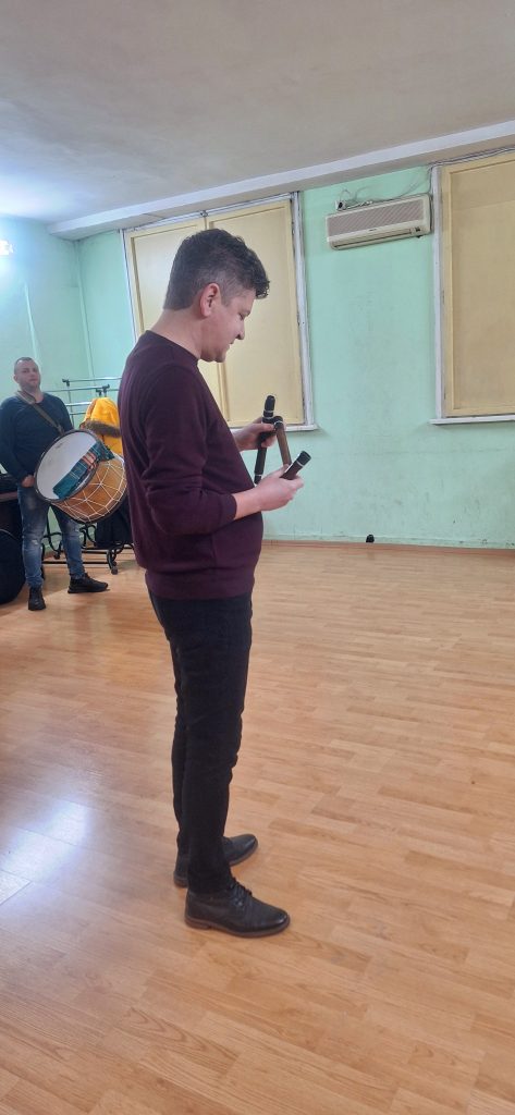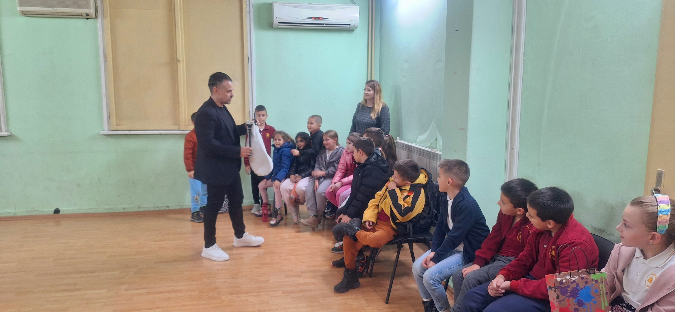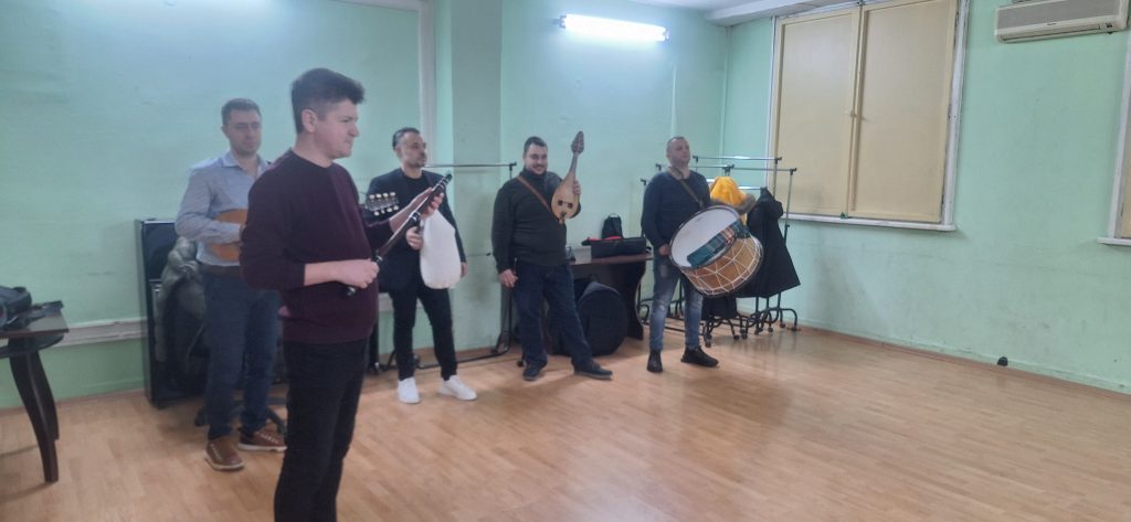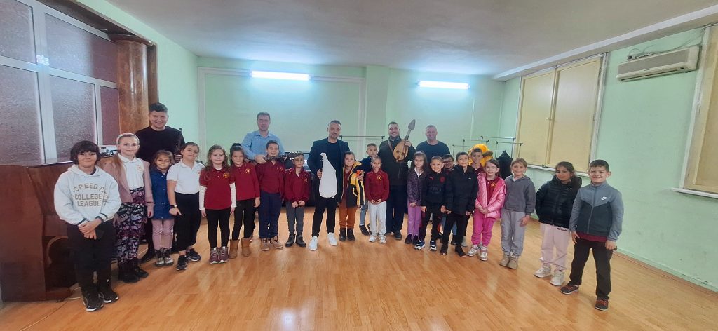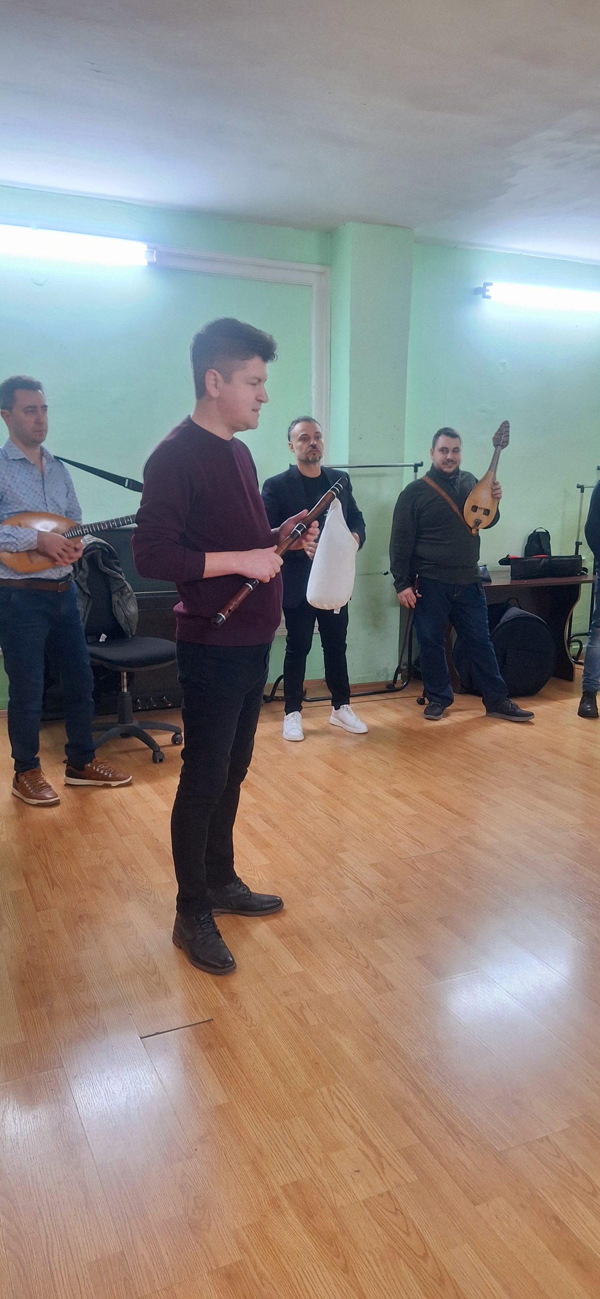 След оркестровото изпълнение се проведе нагледна презентация на всеки инструмент, а музикантите обясниха много подробно за всеки един от тях – материал, начин на свирене, видове и части. Имаше беседа, на която учениците даваха много точни и коректни отговори. Урокът продължи с въпроси от учениците, които преоткриха професията – музикант. Една трудна професия, за която е необходимо голямо търпение , последователност в репетиции и сериозно отношение към музиката. Музикантите от оркестъра са започнали да свирят от ранна детска възраст, а след това продължават образованието си в това направление. Диригентът на оркестъра, г-н Тихомир Йорданов, обясни, че школата към ансамбъла обучава деца, които имат желание и талант да свирят на народен инструмент. Идеята му е да се организират образователни концерти на ученици, за да усетят магията на българската народна музика и танци.