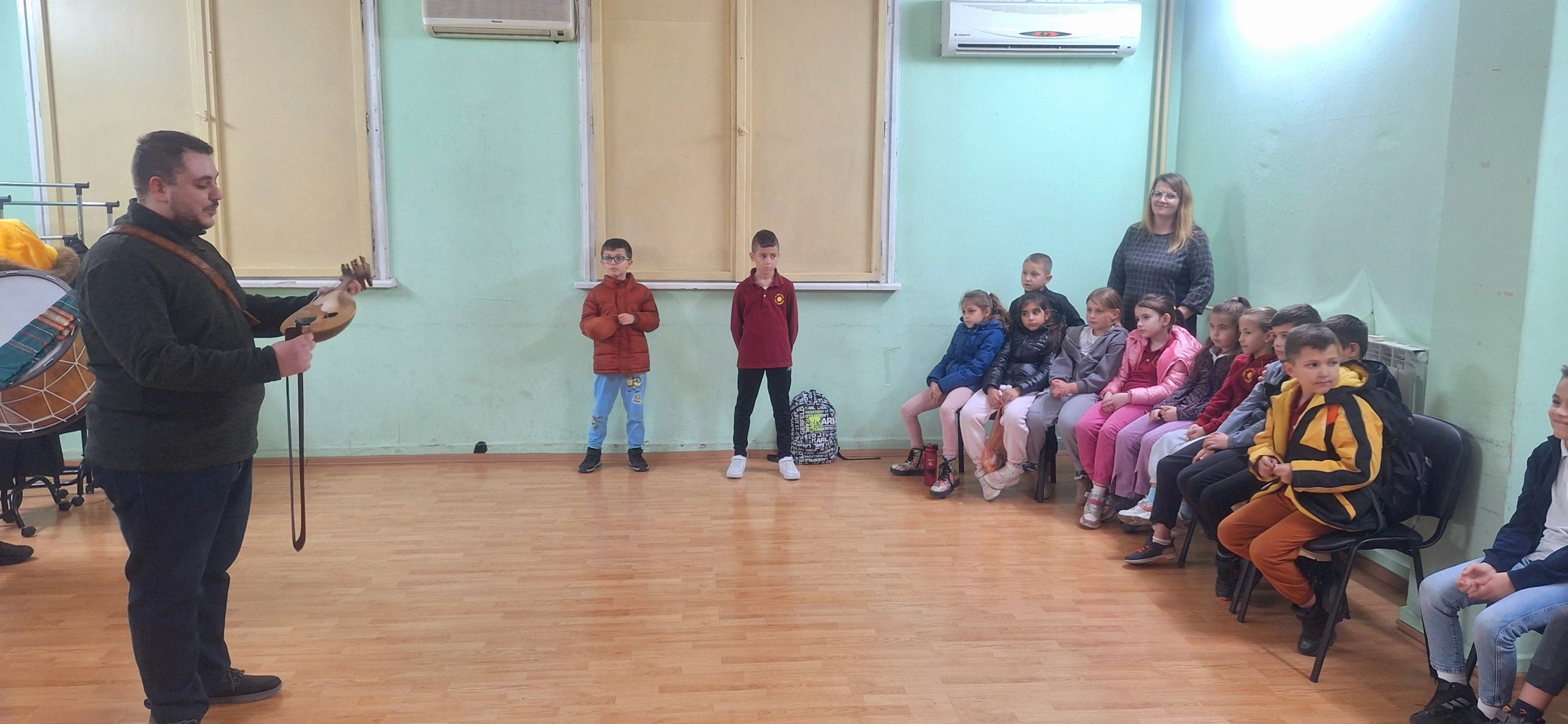 Учениците от 2. Б клас, с учители г-жа Гергана Манчева и г-жа Десислава Божинова, участваха в съвместен урок на тема Български народни инструменти, който бе проведен от оркестъра на фолклорен ансамбъл „Сидер войвода“ – лицето на град Горна Оряховица от 70 години насам. Учениците бяха посрещнати с ръченица изпълнена от гайда, тъпан, тамбура, кавал и гъдулка.