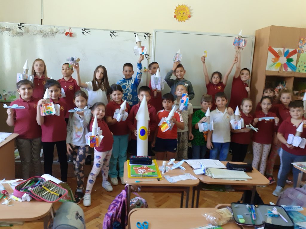 На 12. април празнуваме международния ден на авиацията и космонавтиката! На този ден през 1961 година Юри Гагарин става първият космонавт на света и прави една пълна обиколка около Земята с космическия кораб „Восток-1“ за 108 минути. За да отпразнуват това историческо постижение на науката децата си направиха ракета, скафандри, самолети, а Теодор Юлианов ни представи своя проект за втория български космонавт  Александър  Александров!