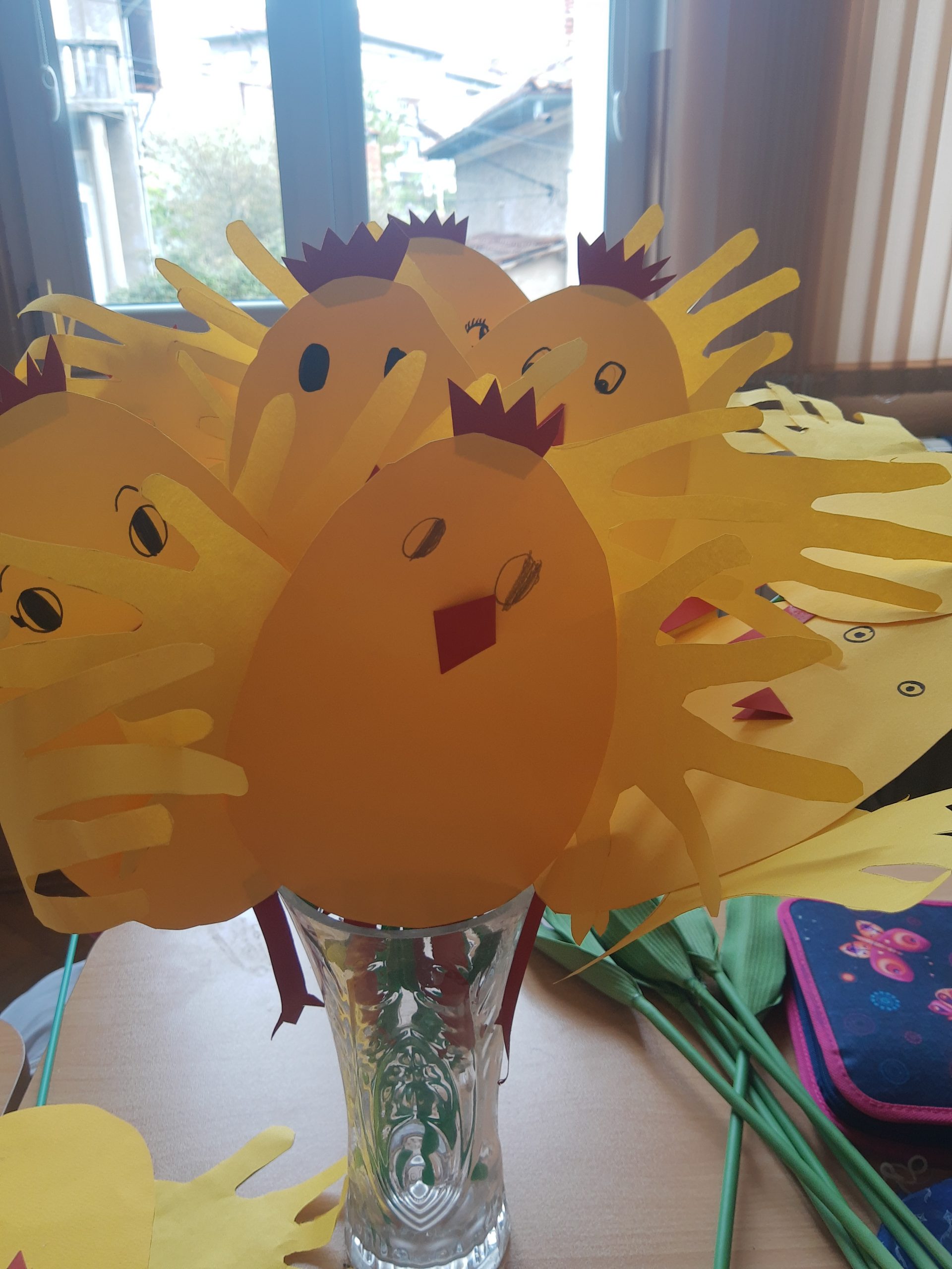 По случай най-светлия празник – Великден, децата от група ЦДО 2б клас с ръководител Петя Георгиева, с голямо желание създадоха малки жълти пиленца за украса на своите домове и класната стая в следобедните занимания по интереси. Учениците пожелават на всички Светли празници, здраве и благополучие!