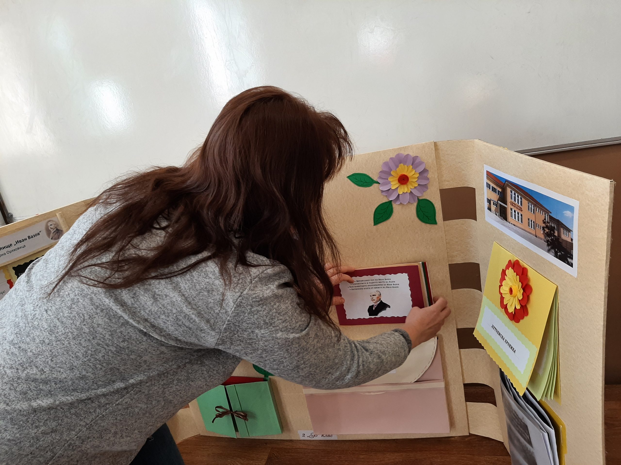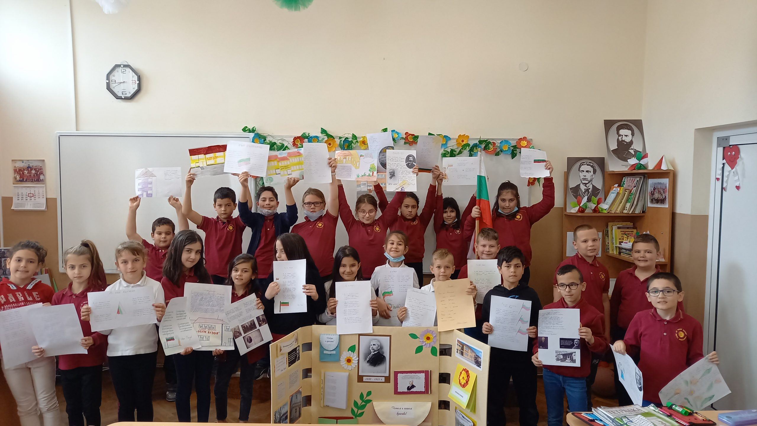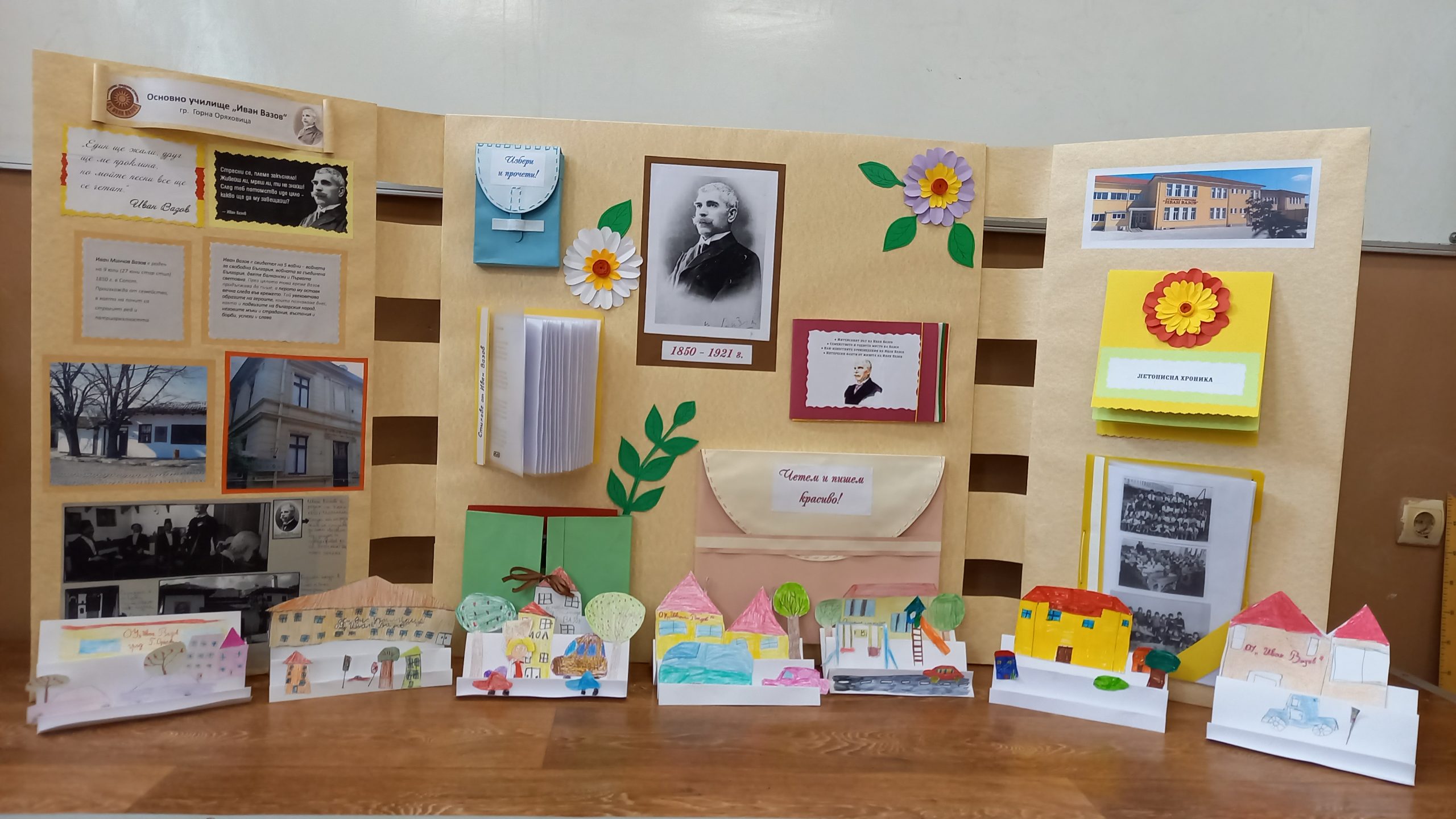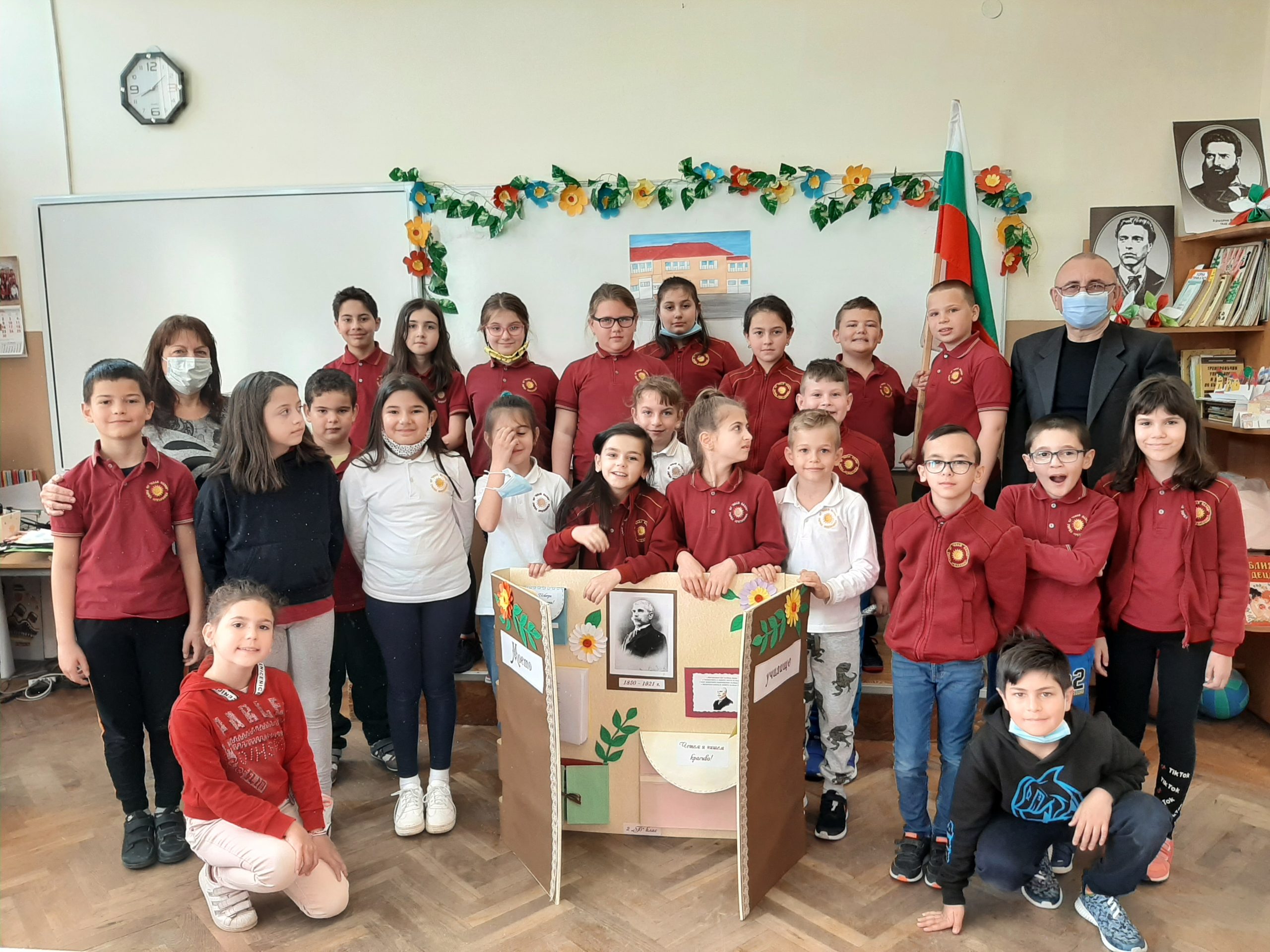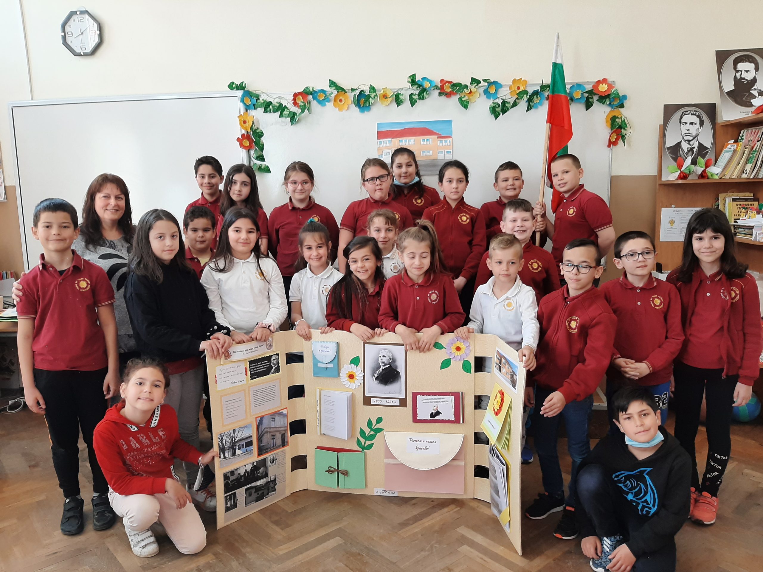 Голяма интерактивна книга със заглавие „Моето училище“ представиха учениците от 2 „Б“ клас с класен ръководител Розалия Нанкова. Книгата включва материали, свързани с живота и творчеството на патриарха на българската литература Иван Вазов и кратка информация за оснавни етапи от развитието на нашето училище.  Учениците могат да прочетат стихотворения, подходящи за деца – такива, с които всички българи сме израснали. Второкласниците са преписали някои от тези стихове и са нарисували прекрасни илюстрации към тях. Описали са и са нарисували родното училище така, както го виждат през собствените си очи. По интерактивен начин учениците могат да видят фотографии на всичко, свързано с живота на Вазов – родната къща в гр. Сопот, както и къщата, в която е живял в гр. София до края на живота си; паметниците в тези градове, както и признанието на българската общественост при именуване на различни институции в страната – театър, библиотека, читалище и много училща, едно от които е нашето. Интерена е тази част, в която е поместена летописната хронология на училището и снимки от изминали години.