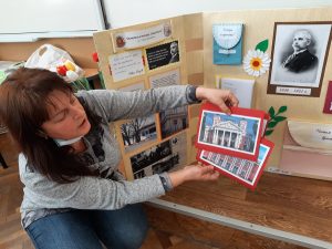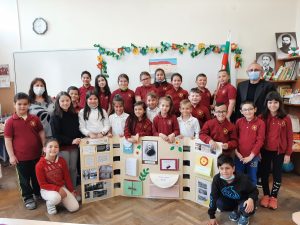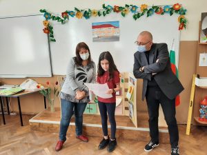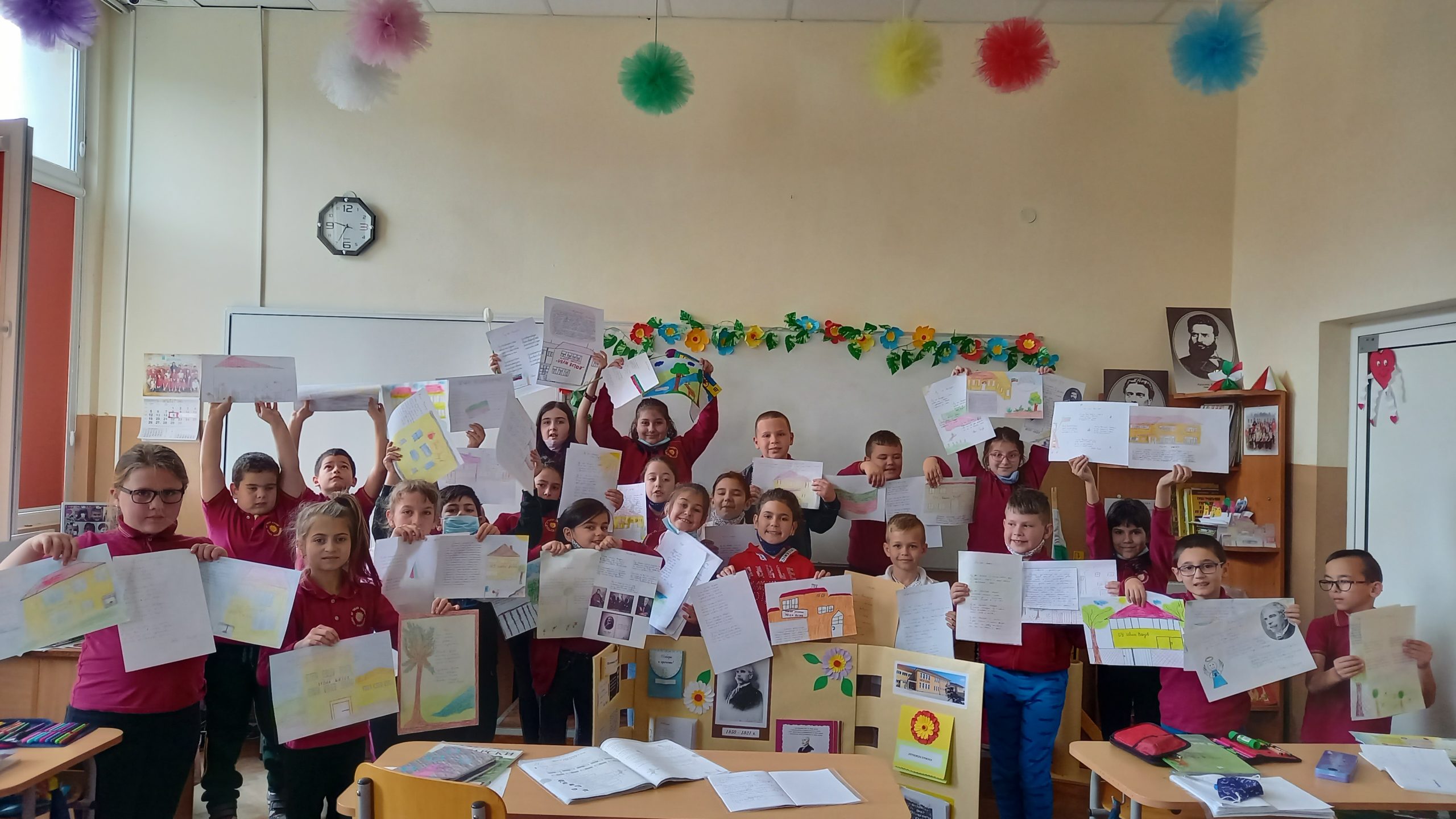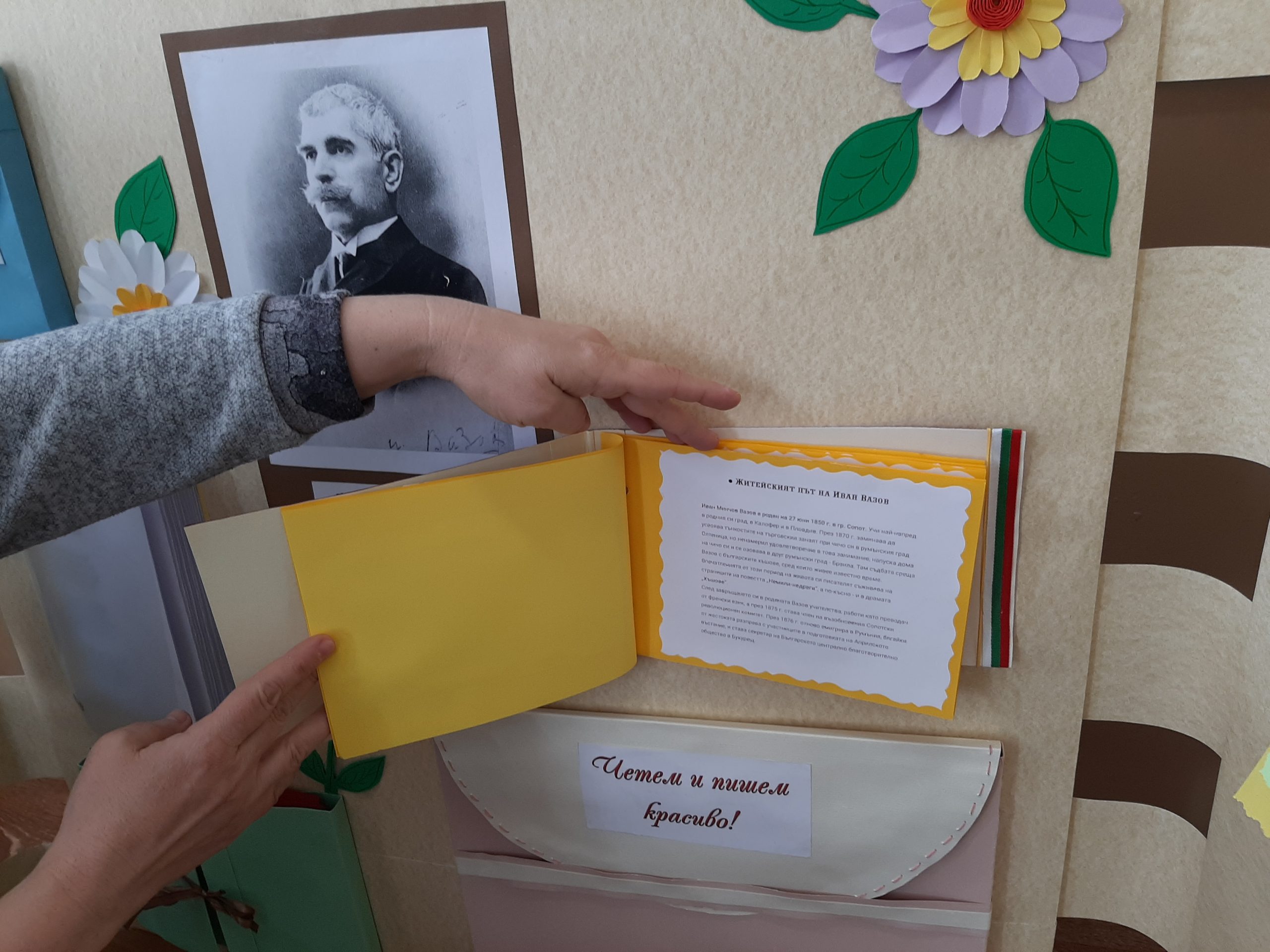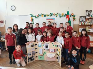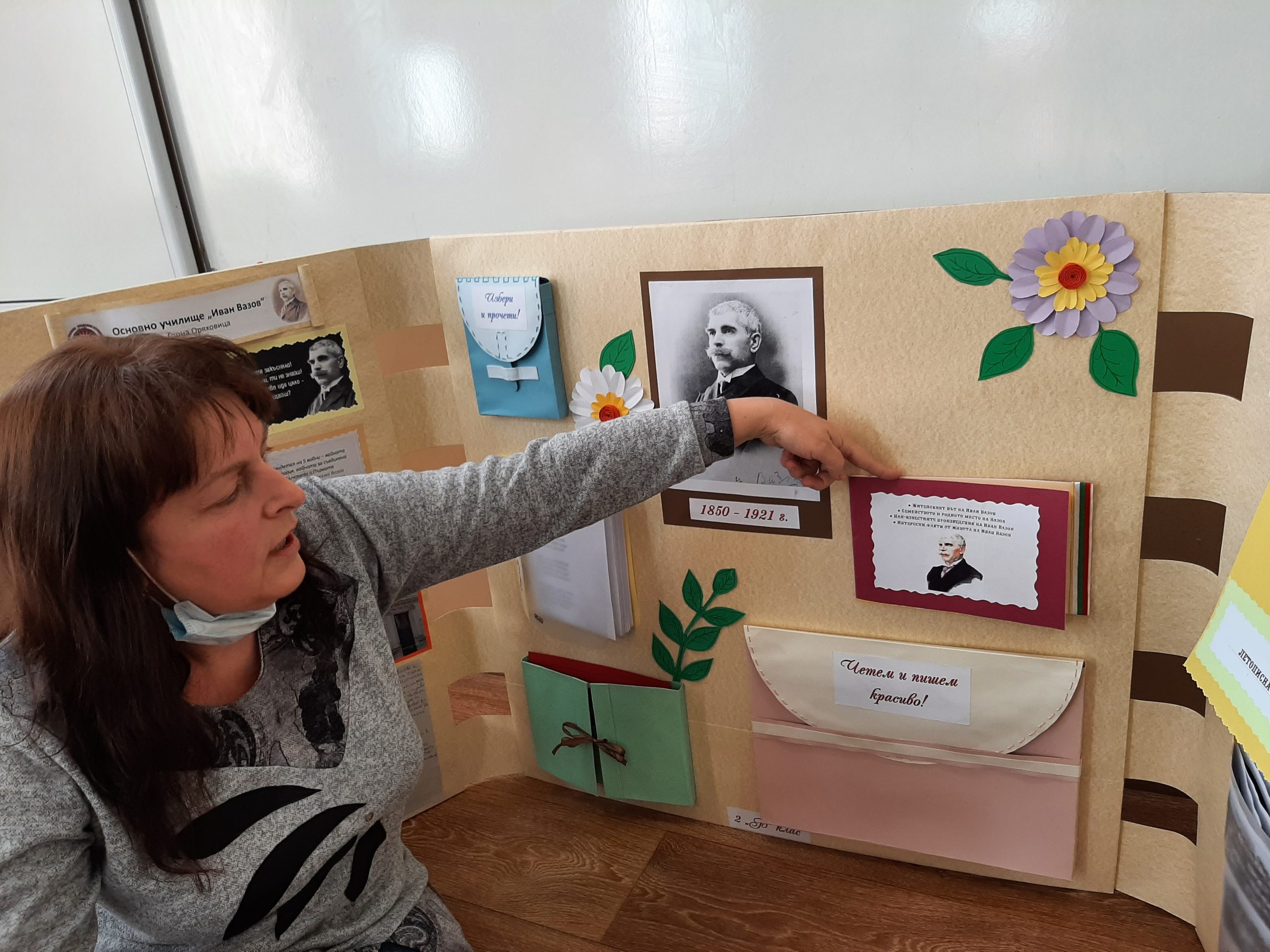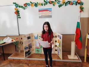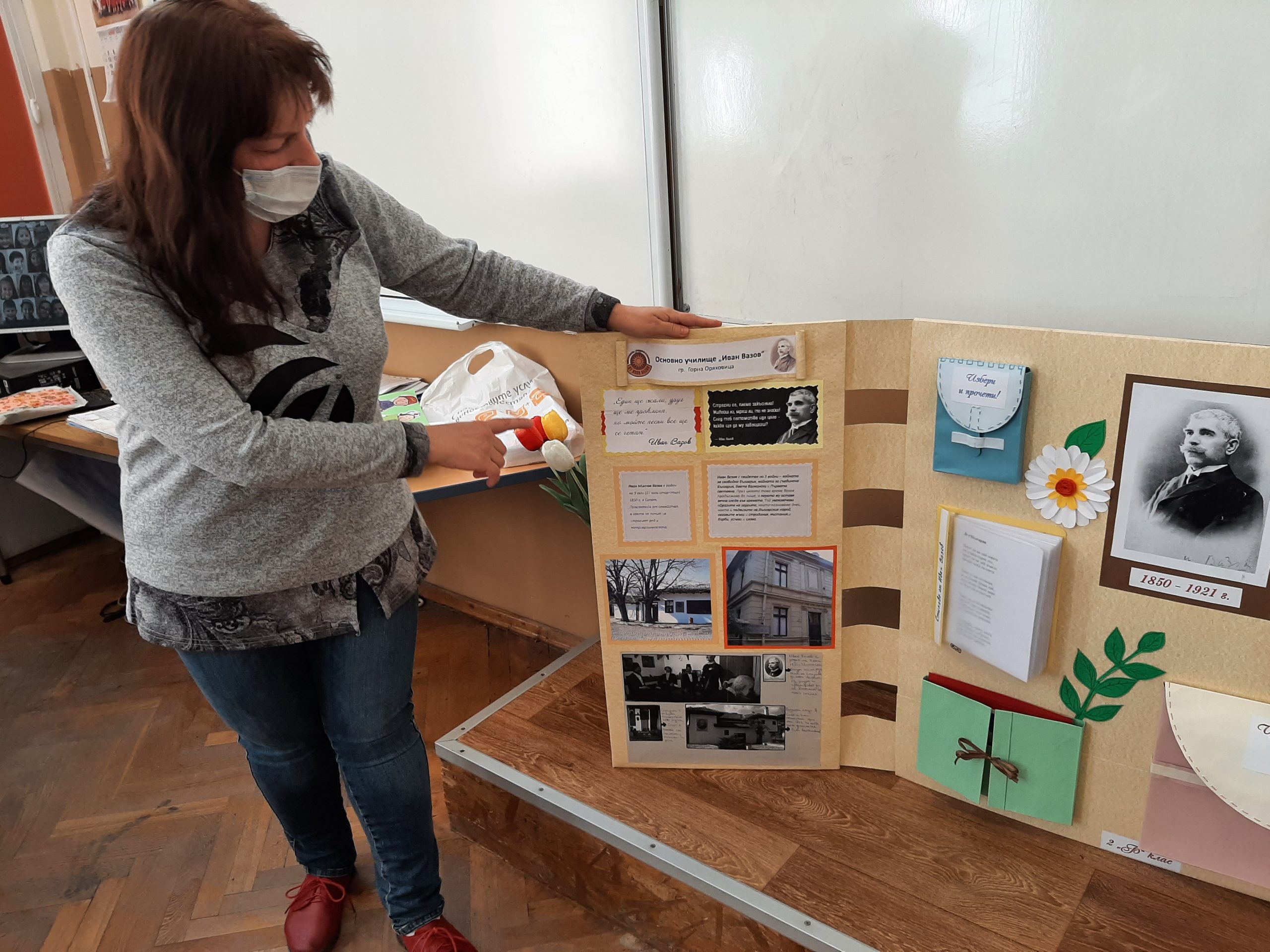Голяма интерактивна книга със заглавие „Моето училище“ представиха учениците от 2 „Б“ клас с класен ръководител Розалия Нанкова. Книгата включва материали, свързани с живота и творчеството на патриарха на българската литература Иван Вазов и кратка информация за оснавни етапи от развитието на нашето училище.  Учениците могат да прочетат стихотворения, подходящи за деца – такива, с които всички българи сме израснали. Второкласниците са преписали някои от тези стихове и са нарисували прекрасни илюстрации към тях. Описали са и са нарисували родното училище така, както го виждат през собствените си очи. По интерактивен начин учениците могат да видят фотографии на всичко, свързано с живота на Вазов – родната къща в гр. Сопот, както и къщата, в която е живял в гр. София до края на живота си; паметниците в тези градове, както и признанието на българската общественост при именуване на различни институции в страната – театър, библиотека, читалище и много училща, едно от които е нашето. Интерена е тази част, в която е поместена летописната хронология на училището и снимки от изминали години.