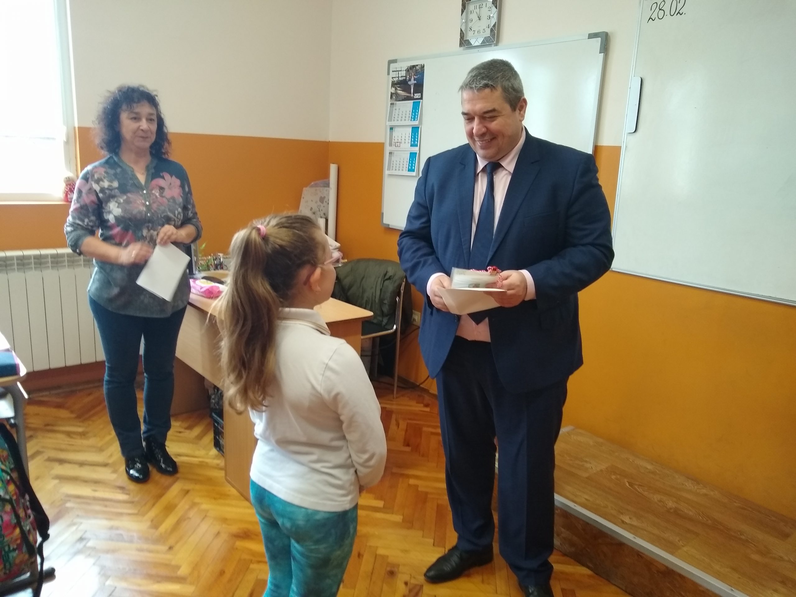 Второкласниците подариха мартеници и изпратиха кмета с призив за повече доброта в сърцата: