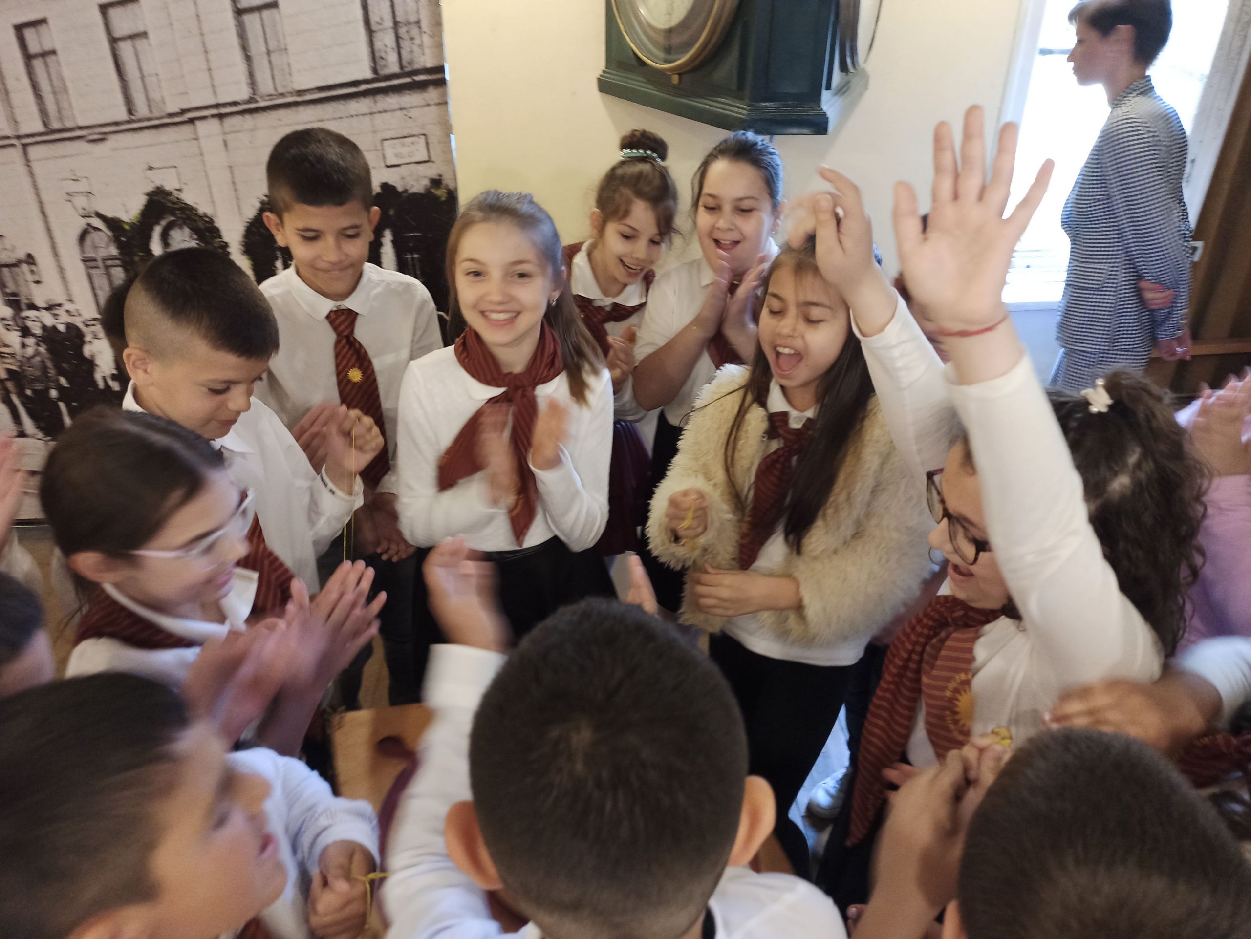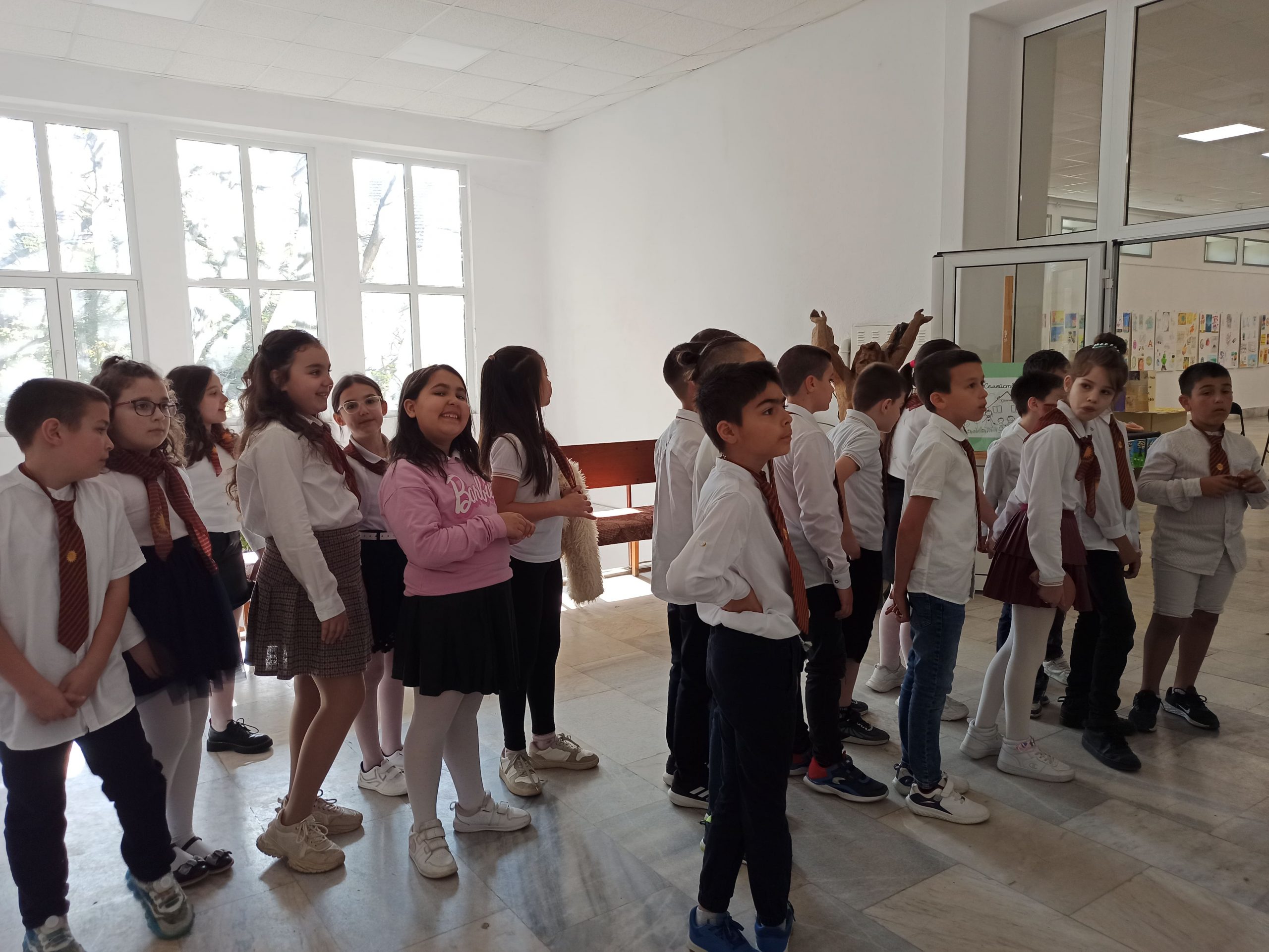 На 11.04. в седмицата посветена на патрона на нашето училище „Иван Вазов“ трети „В“ клас, заедно със своите преподаватели г-жа Байчева и г-жа Цанева, гостуваха в Градската художествена галерия „Недялко Каранешев“. Благодарение на топлото посрещане на уредника д-р Деница Александрова успяха да се запознаят с пъстрата галерия от творби на възпитаници на училището ни. В същия ден в Градския исторически музей осъществиха планувания открит урок на тема „Езикът никога не умира“ . Д-р Искра Николова представи авторския си филм с едноименното заглавие, посветен на 200 – годишнината от началото на учебното дело в Горна Оряховица. Той затвърди знанията на учениците за силата на словото и ролята на българските просветители през Възраждането. Любомир Иванджиков рецитира стихотворението „Опълченците на Шипка“на Иван Вазов. Много впечатляваща за учениците беше гостуващата експозиция на клуб „Традиция“ Велико Търново от средновековни оръжия, облекла, занаяти и игри.
