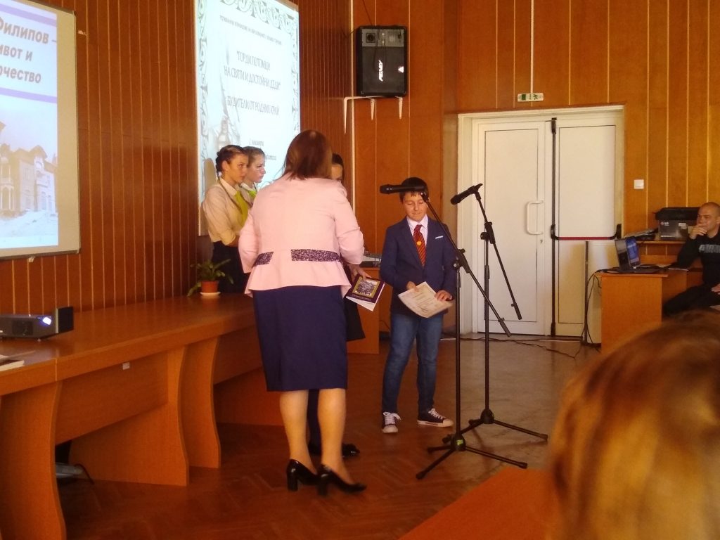 В края на тържественото събитие учениците бяха отличени с грамота за отлично представяне от РУО- Велико Търново. и получиха като подарък за училищната библиотека екземпляр от книгата „Пътеводител на град Велико Търново и околността му” от Моско Москов.