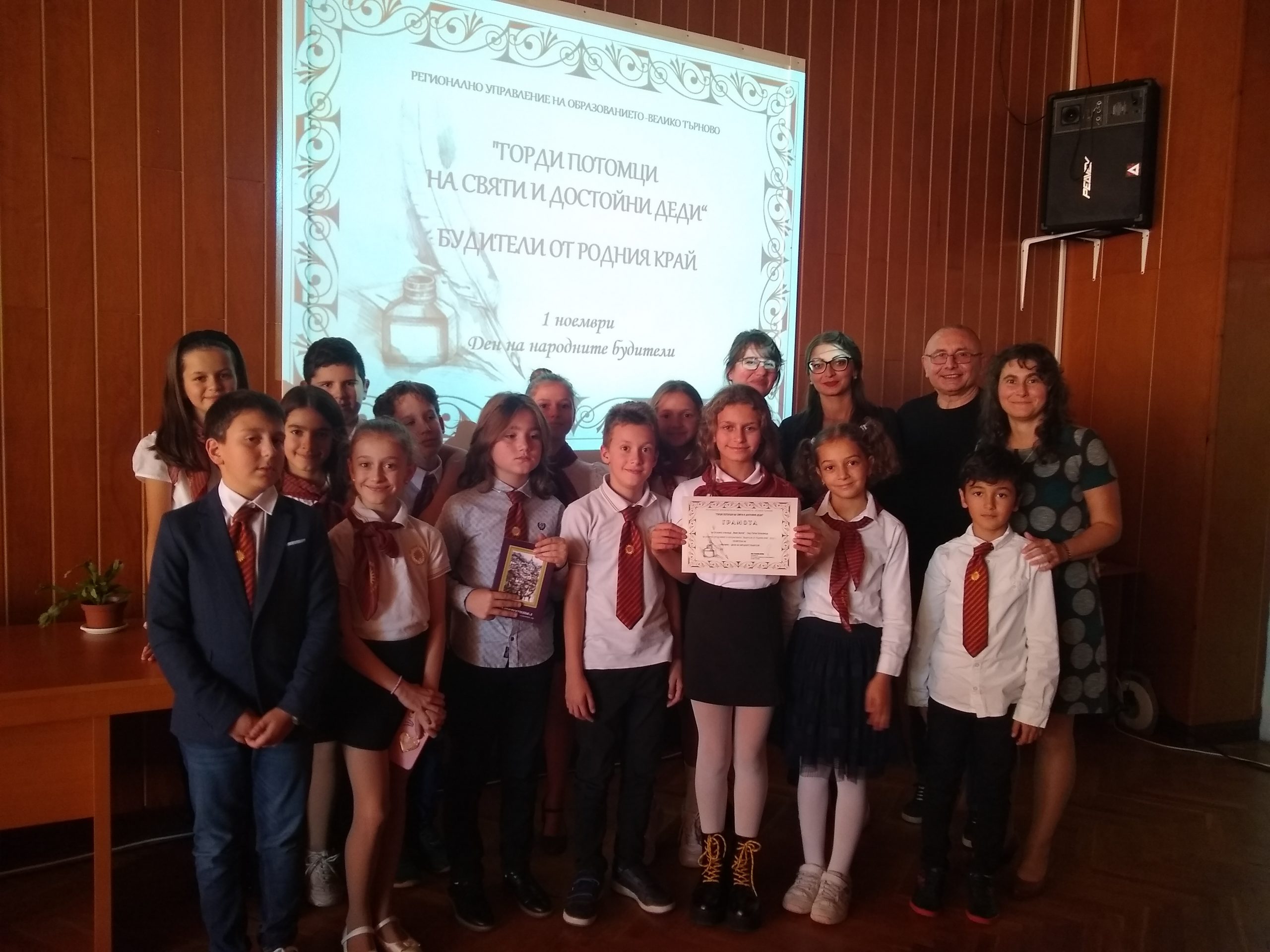В края на тържественото събитие учениците бяха отличени с грамота за отлично представяне от РУО- Велико Търново. и получиха като подарък за училищната библиотека екземпляр от книгата „Пътеводител на град Велико Търново и околността му” от Моско Москов.