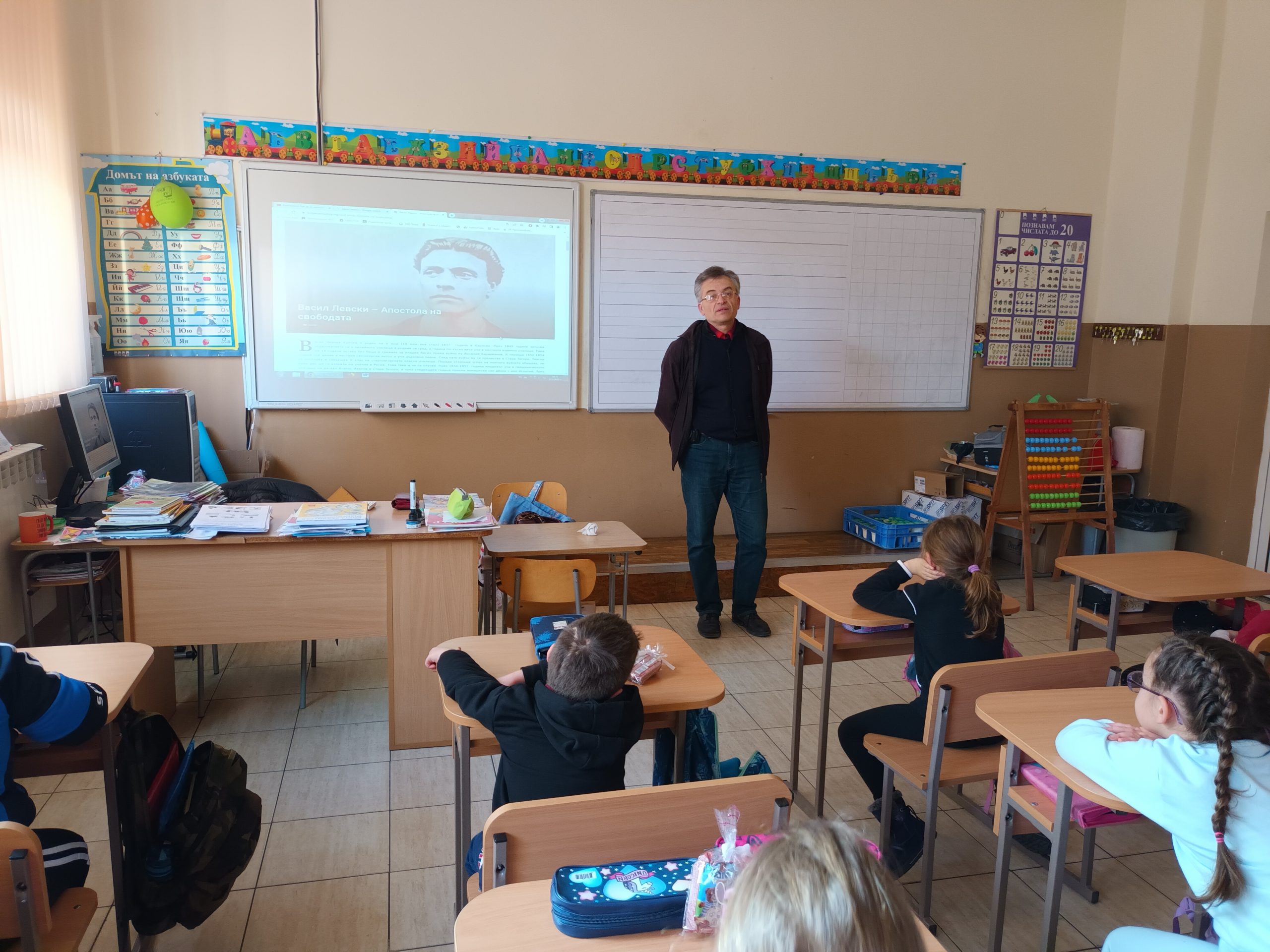 Интересна лекция,с акцент върху детството на революционера, изнесе господин Юлиян Ангелов, преподавател по история и цивилизации в училище. Той ги запозна с интересни, изпълнени с напрежение моменти от трудните детски години и началните стъпки в революционната дейност на Левски.