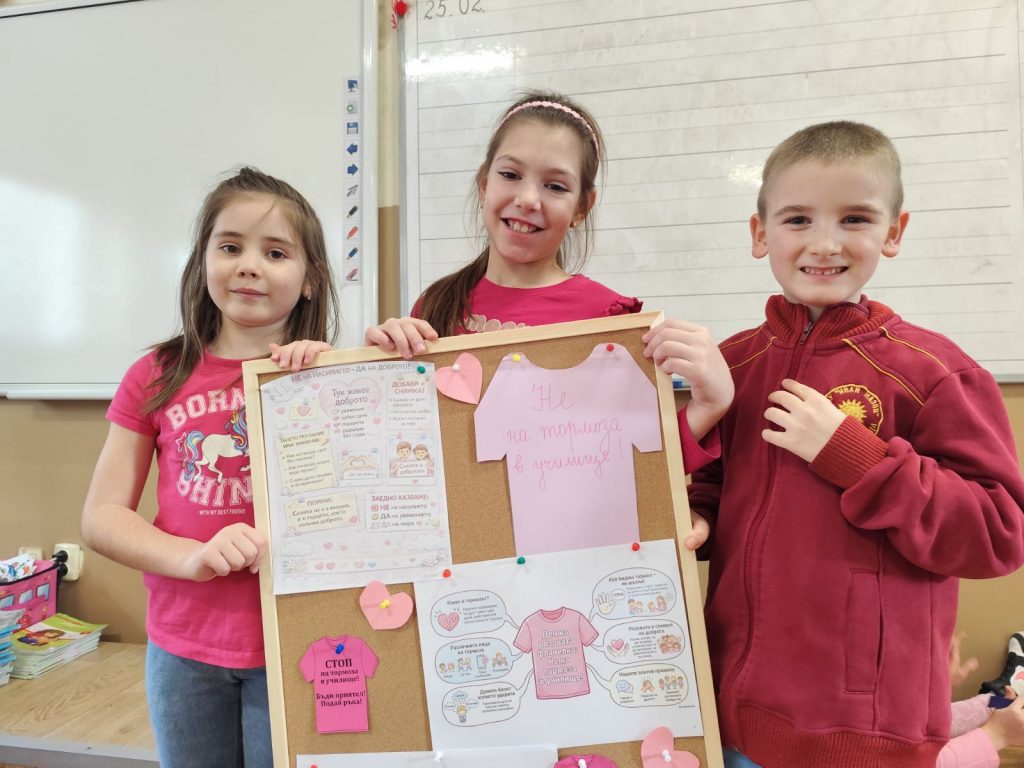 Обличаме розово в подкрепа на добротата, смелостта и приятелството. Нека учим децата си: да бъдат добри, да защитават, да не мълчат .
