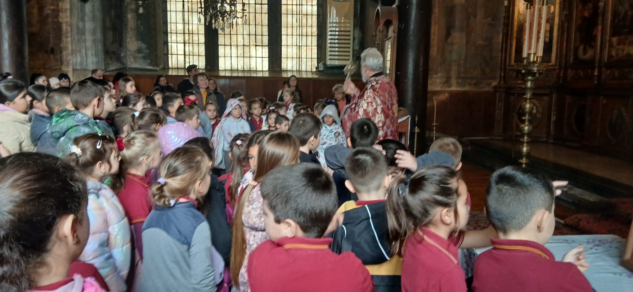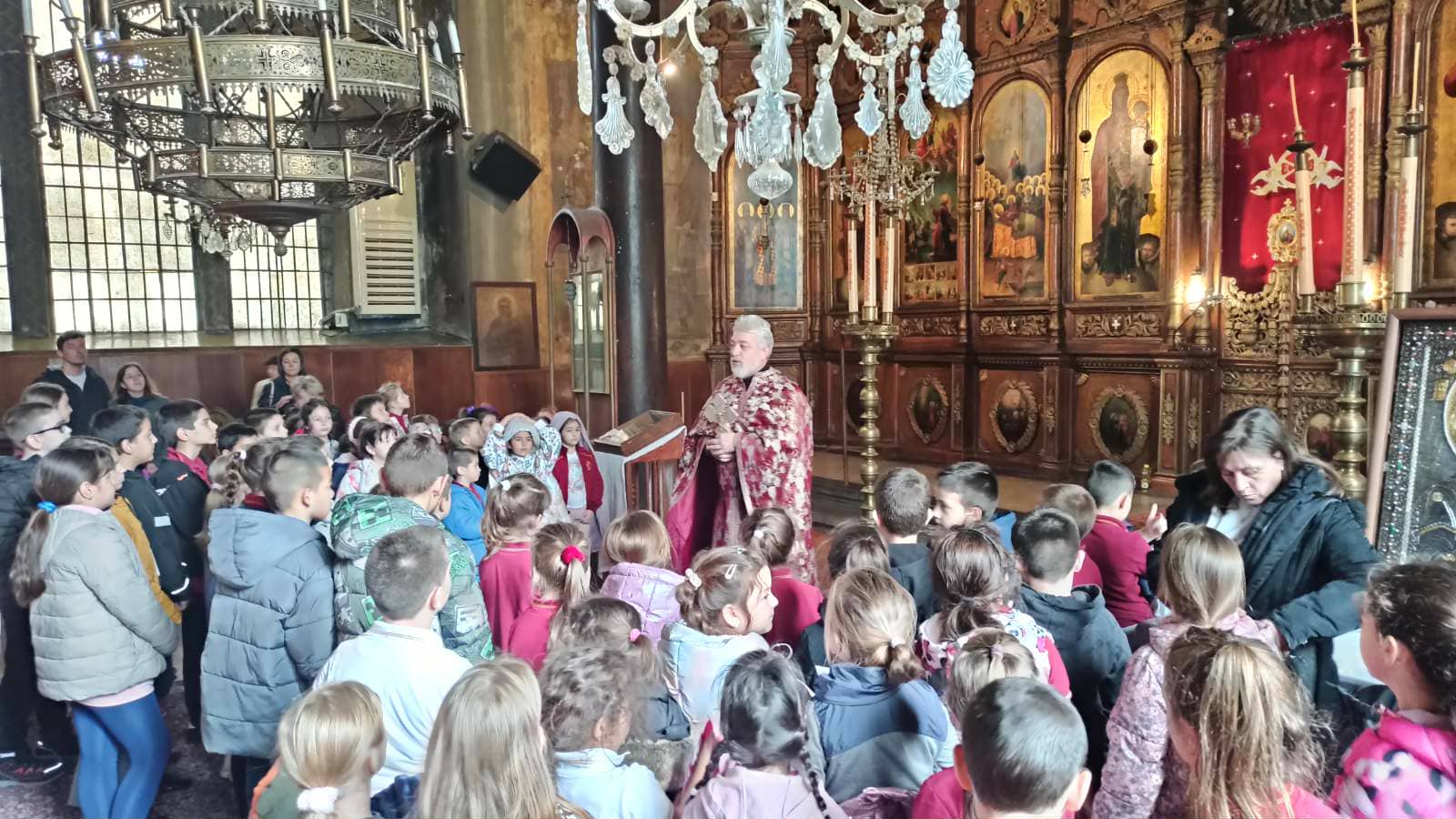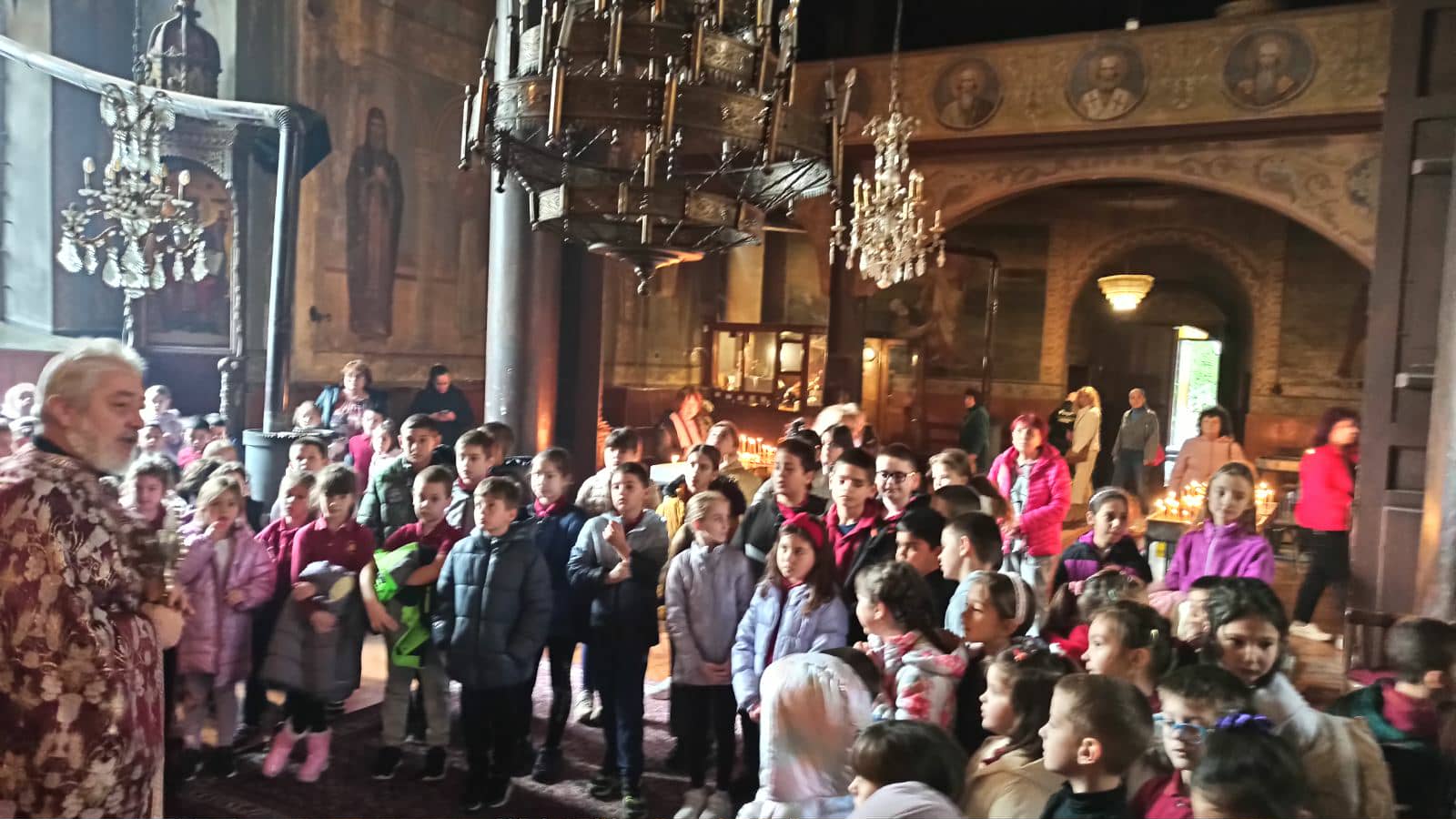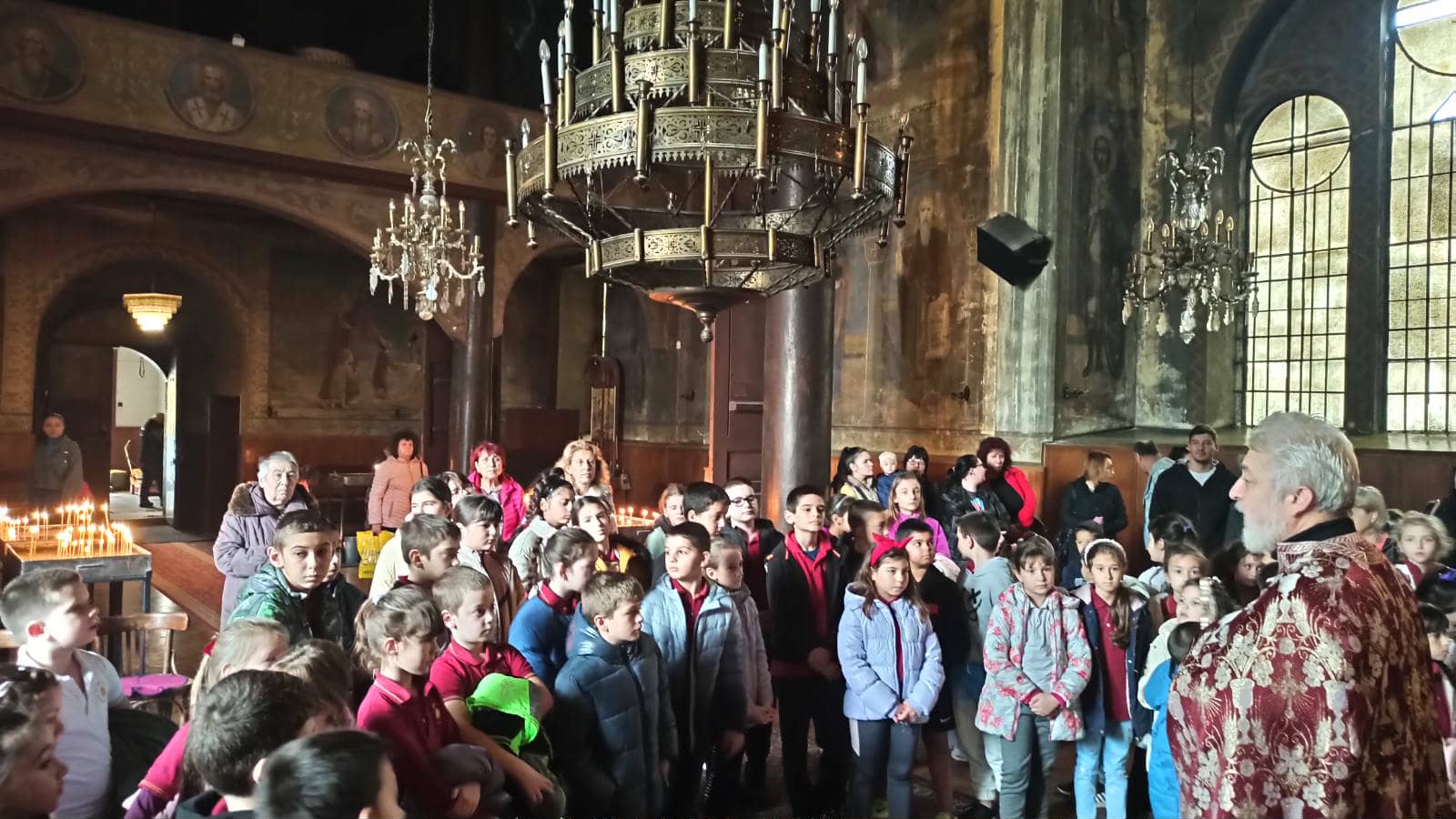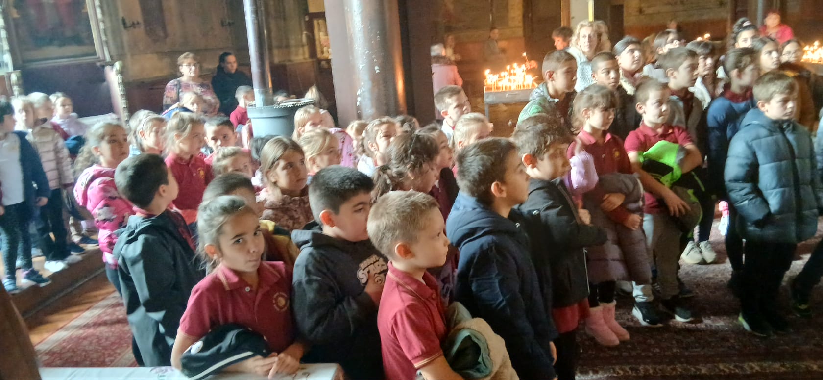 В деня на Въведение Богородично учениците от 1 „А“, 1 „Б“, 1 „В“ и 4 „А“ клас посетиха храм „Успение Богородично“, за да се запознаят с празника и да усетят духовната му атмосфера. Заедно с тях бяха учителите и родителите им, които и в празничния ден са обединени в  грижата и вниманието към благоденствието на децата.Отец Антон изнесе кратка беседа, в която разказа за значението на празника и за Божията майка, която винаги закриля семейството. Малките и големите ученици се поклониха пред иконата на Богородица, запалиха свещички и се помолиха за здраве и благополучие на близките си.