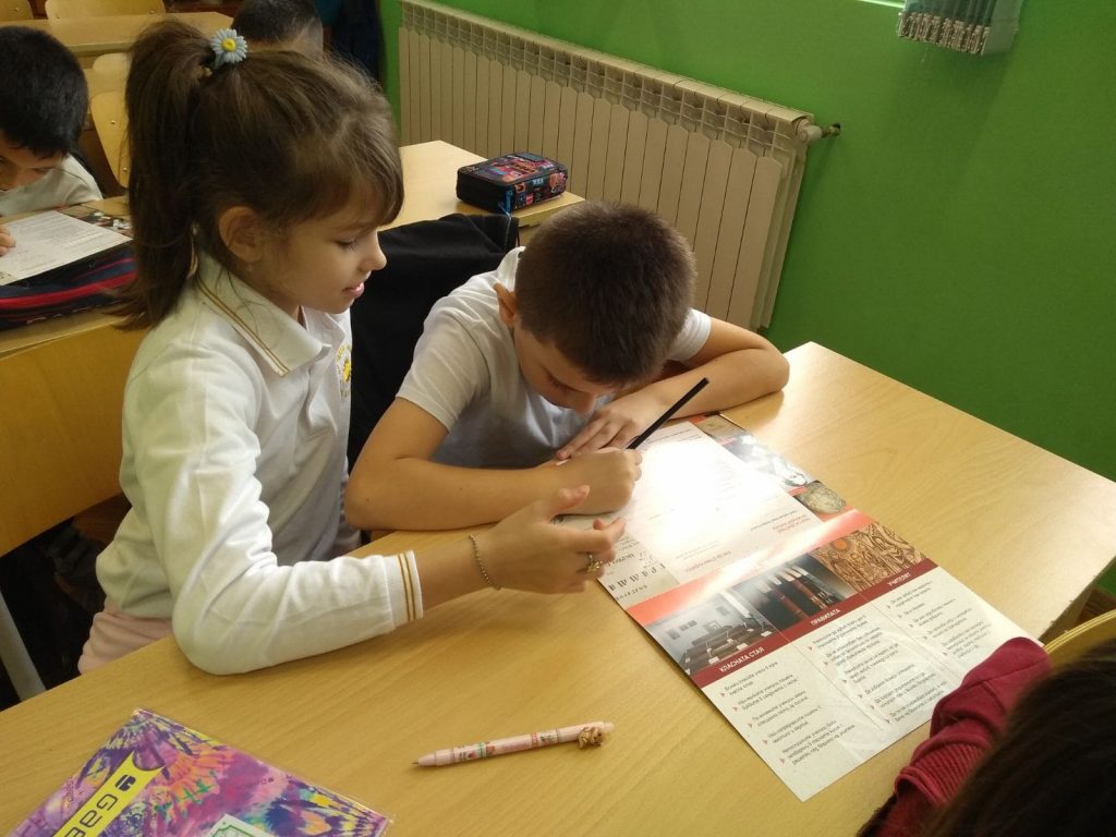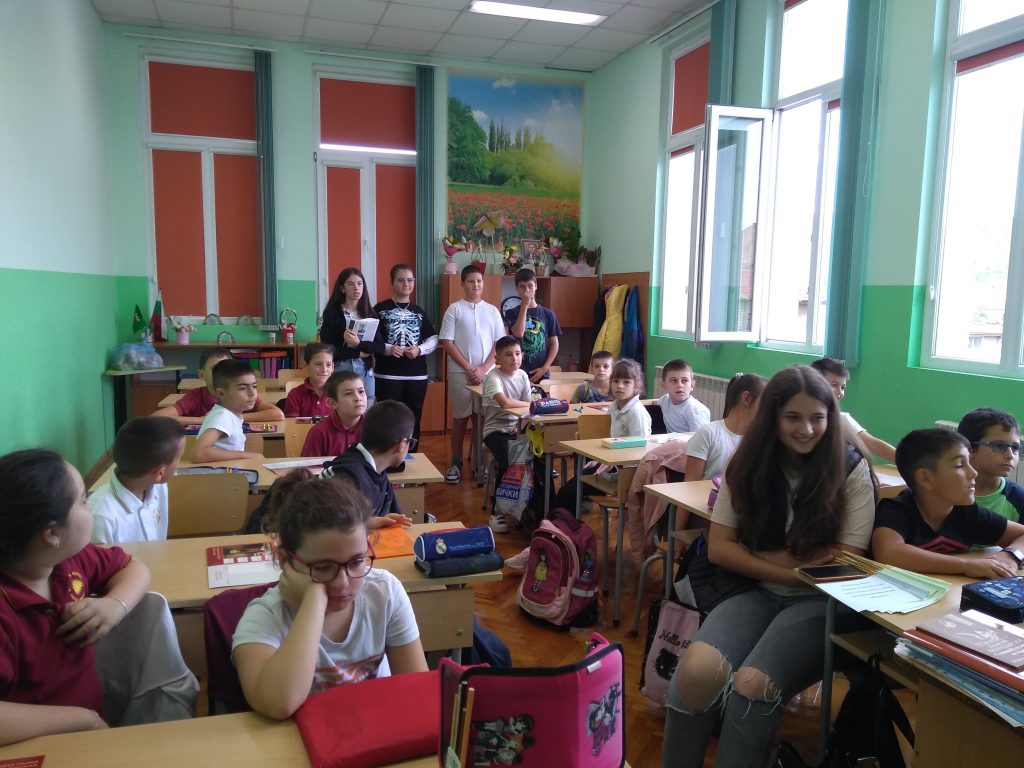 Учениците от 3.“В“ и 7.“В“ клас заедно отбелязаха Деня на народните будители. Със своята презентация седмокласниците успяха да разкрият най-ярките образи в българското просветно и революционно дело от възрожденския период и до днес. Показаха на своите по-малки приятели, че стремежът към усъвършенстване и постигане на високо образование е ценност, която се е зародила в сърцата на българите от тъмните години на османското владичество. Съвместният урок беше пример за третокласниците, че „взаимоучителният метод“ от първото светско училище е приложим и в съвременното ни училище. Учениците от трети клас се запознаха с будителския пример на първия български учител Неофит Рилски и неговите съмишленици. Запомниха важните промени и правила, които е въвел в училището. Желанието му, децата да учат не само науки, но и да добиват добродетели. Водеща сред тях, да е любовта към знанието.