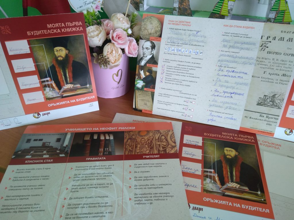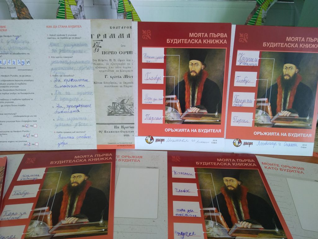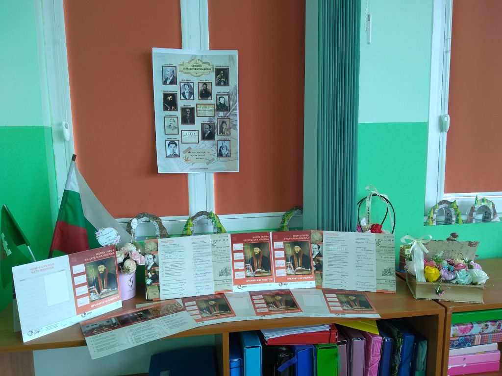 В хода на урока, децата изработиха „Моята първа будителска книжка“, с която направиха изложба в класа. Така изпълниха завещанието на българските будители – в учението си да се стремят към нови знания и добри дела.В часа по будителство звучаха стихотворенията на Ботев „На прощаване“ и на Добри Чинтулов – „Вятър ечи, Балкан стене“. Празникът завърши с песните на по-малките – „Ден на будителите“и „Песен за Апостола“. Учениците от седми клас поднесоха своята изненада – специално изработени празнични знаменца с портрети на български будители.
