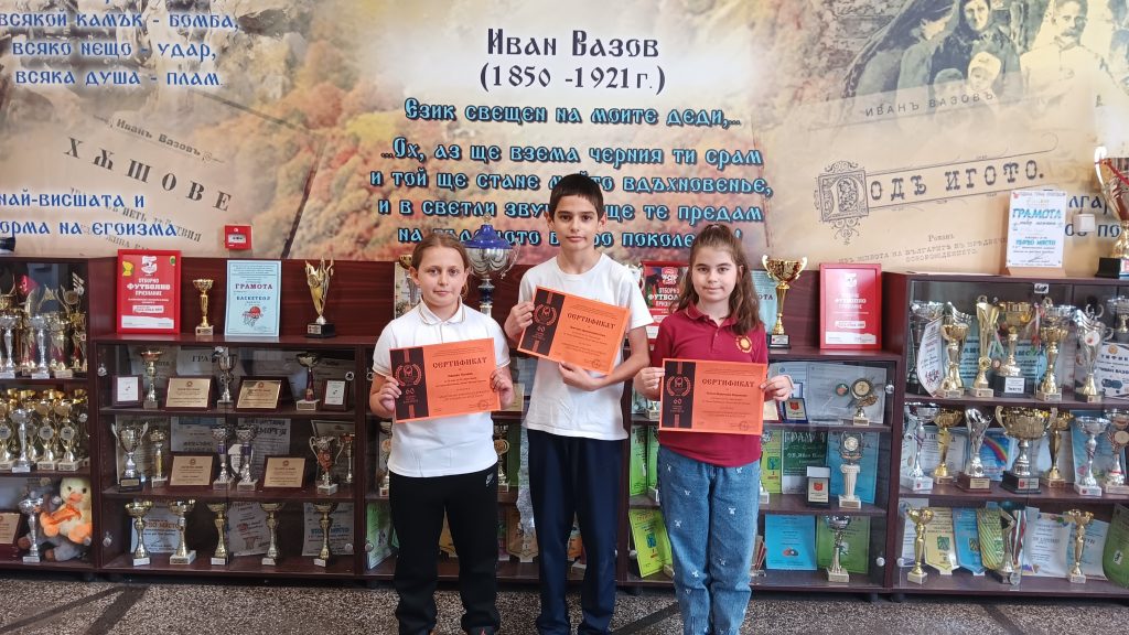 Училището бе достойно представено от трима ученици, които получиха сертификати за своето участие: