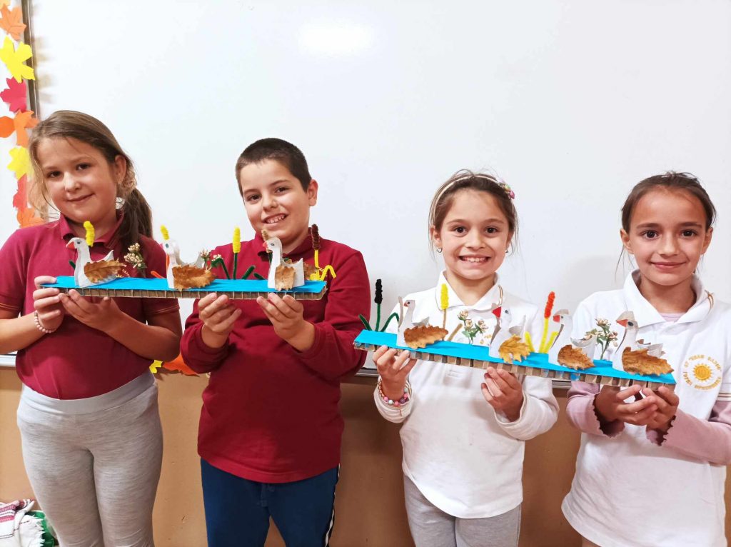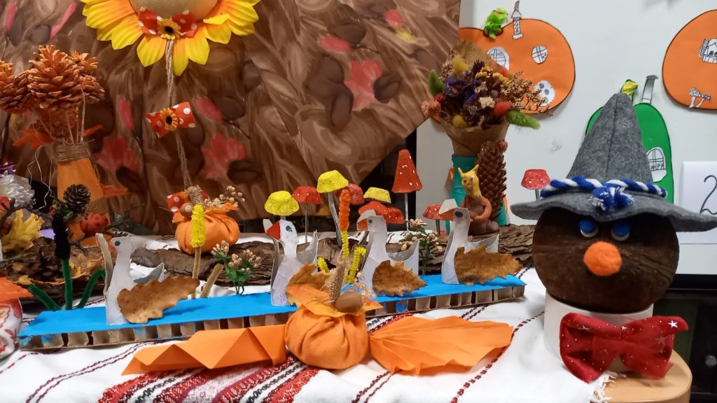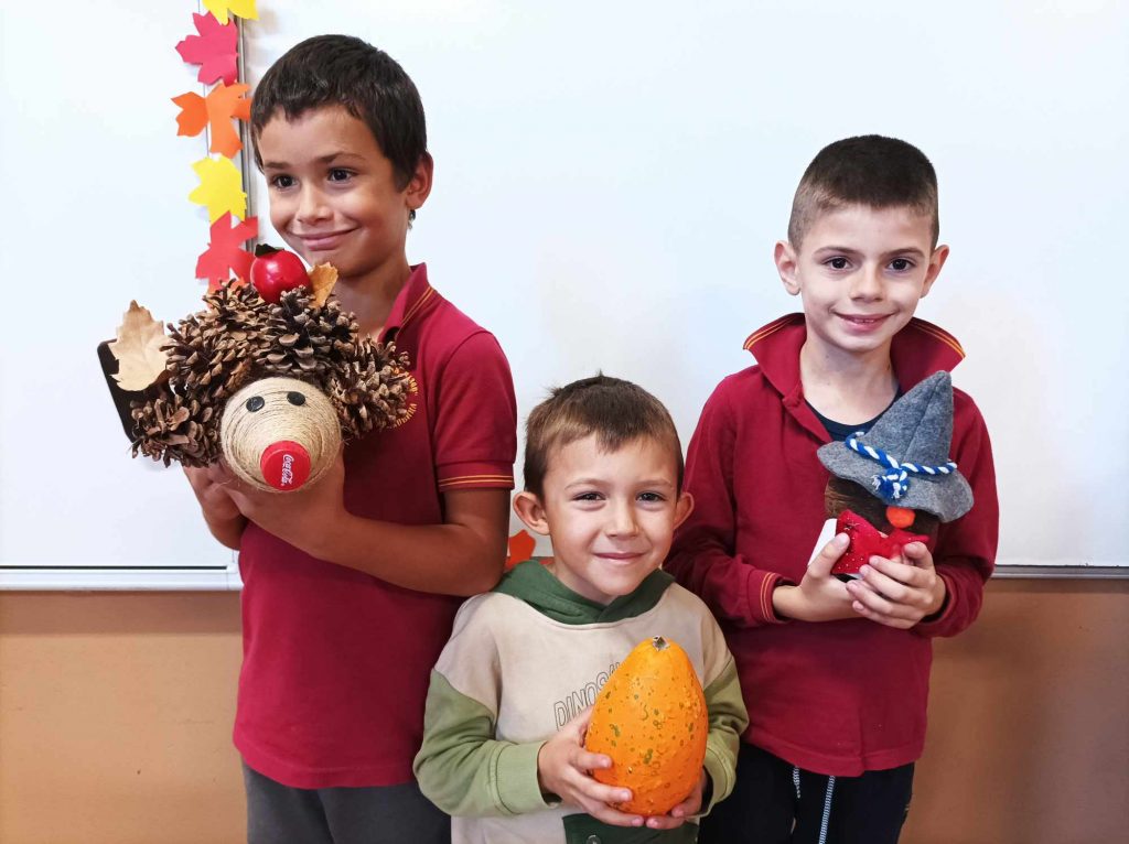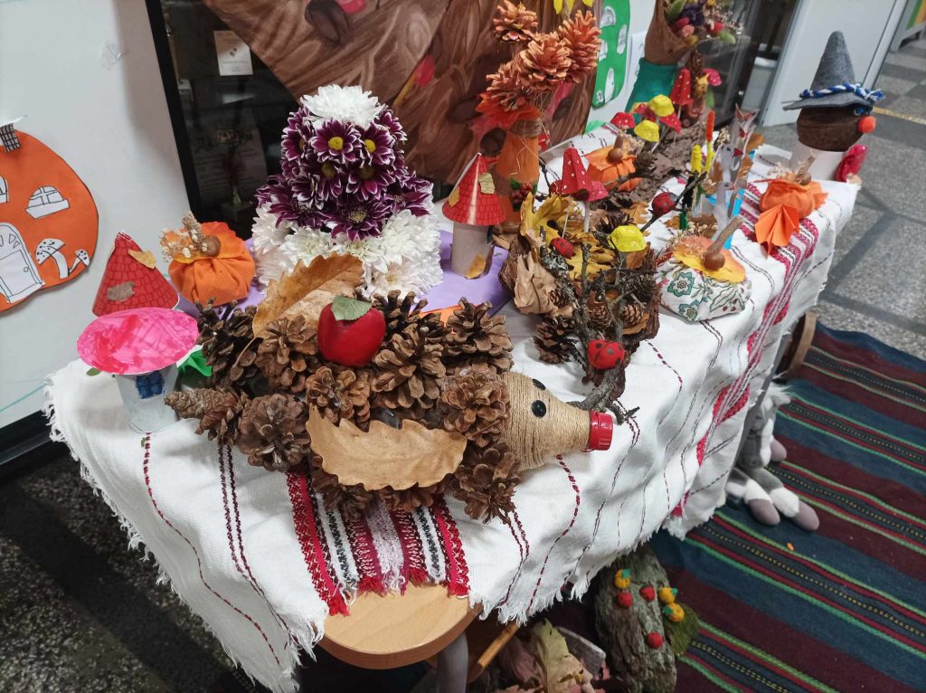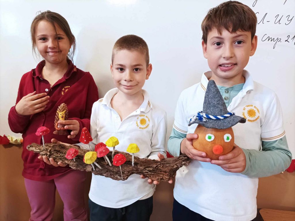 Живописните й пейзажи ни подканват да прекарваме повече време сред природата. Удивявайки й се, децата донесоха късче от нея в училище – кори от дървета, мъх, пъстри листа, клонки с чудновати форми. Със събраните сухи листа, кестени и жълъди, малките естети, сътвориха чудни аранжировки.