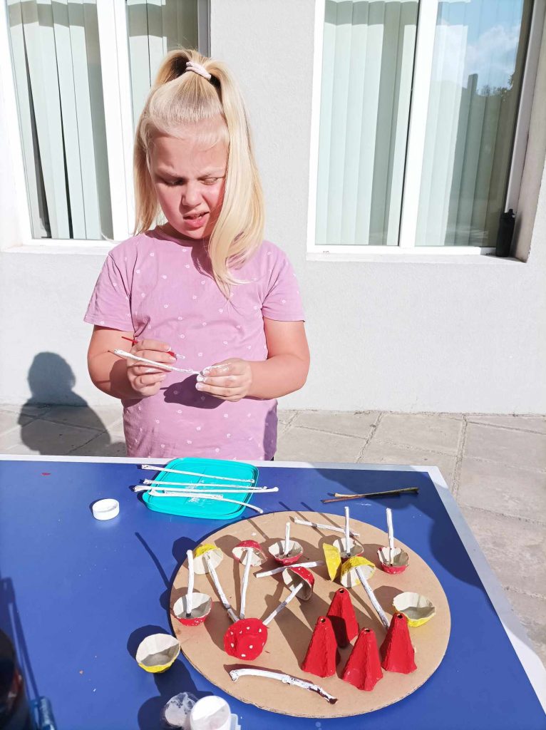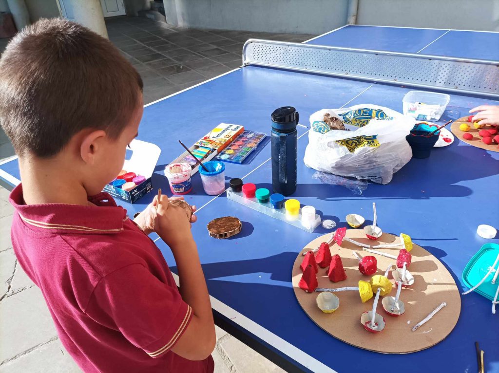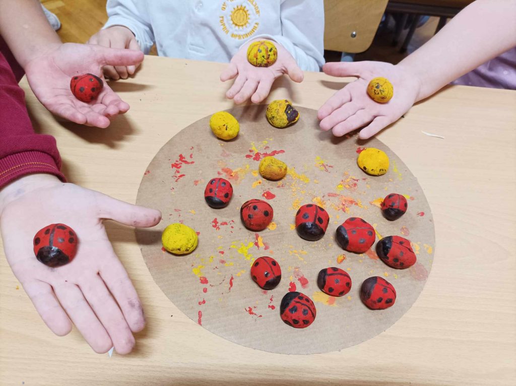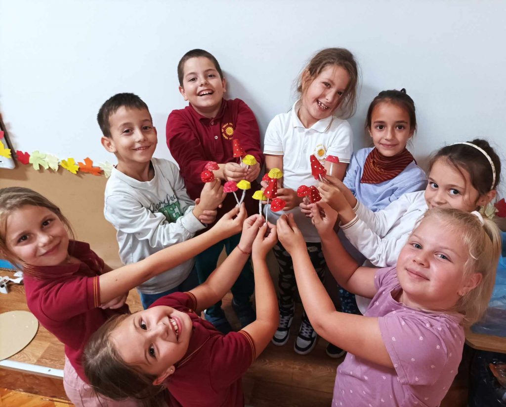 Живописните й пейзажи ни подканват да прекарваме повече време сред природата. Удивявайки й се, децата донесоха късче от нея в училище – кори от дървета, мъх, пъстри листа, клонки с чудновати форми. Със събраните сухи листа, кестени и жълъди, малките естети, сътвориха чудни аранжировки.
