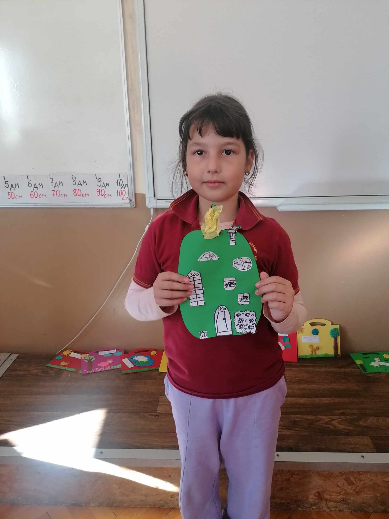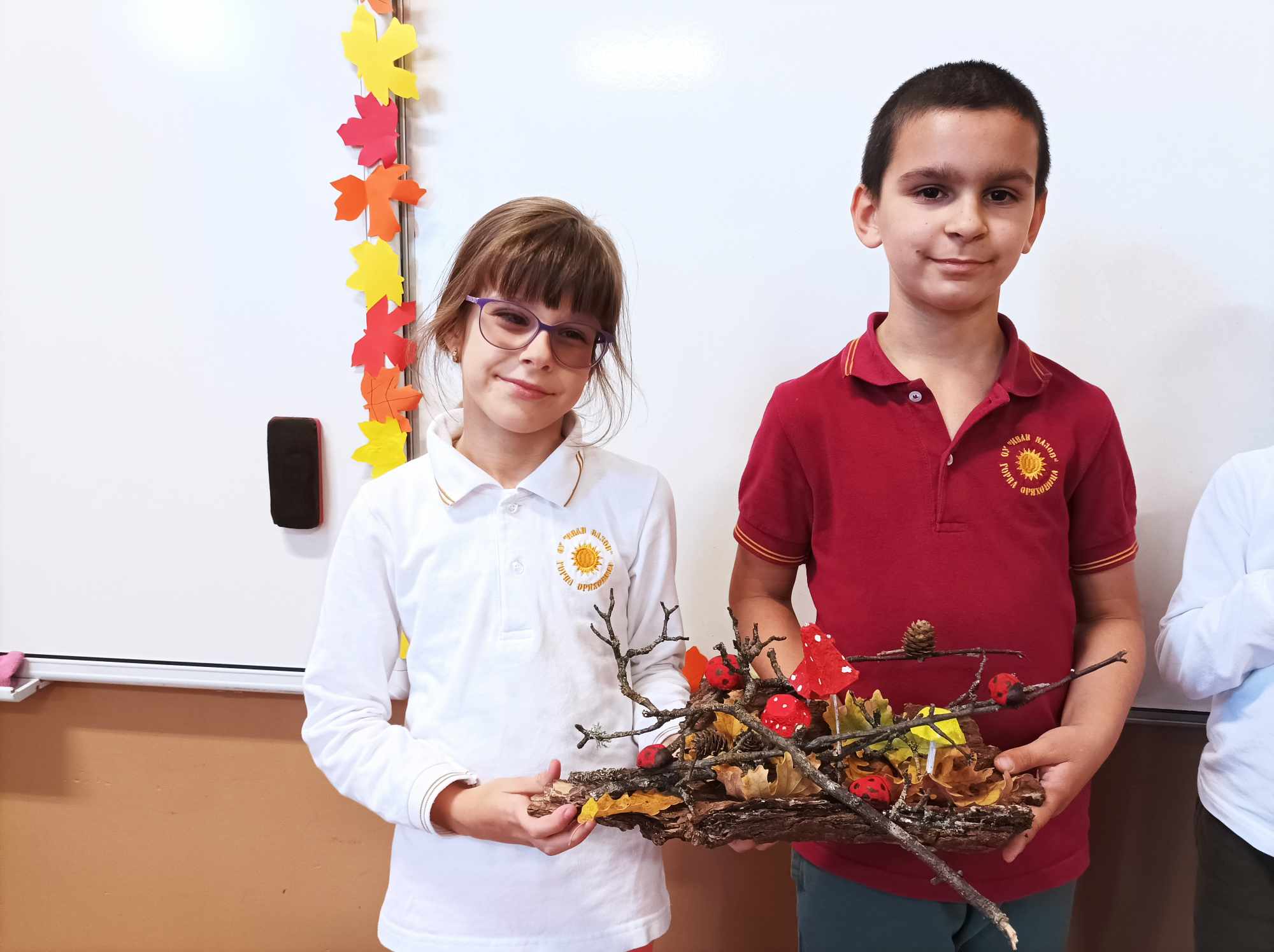 Живописните й пейзажи ни подканват да прекарваме повече време сред природата. Удивявайки й се, децата донесоха късче от нея в училище – кори от дървета, мъх, пъстри листа, клонки с чудновати форми. Със събраните сухи листа, кестени и жълъди, малките естети, сътвориха чудни аранжировки.