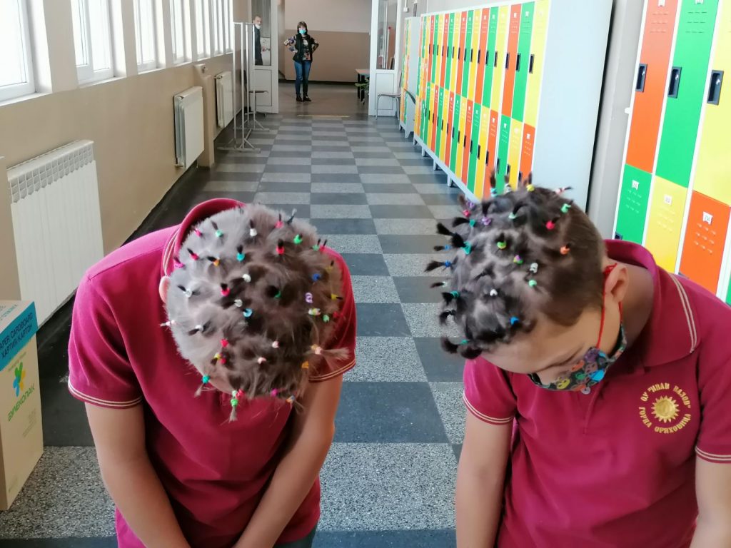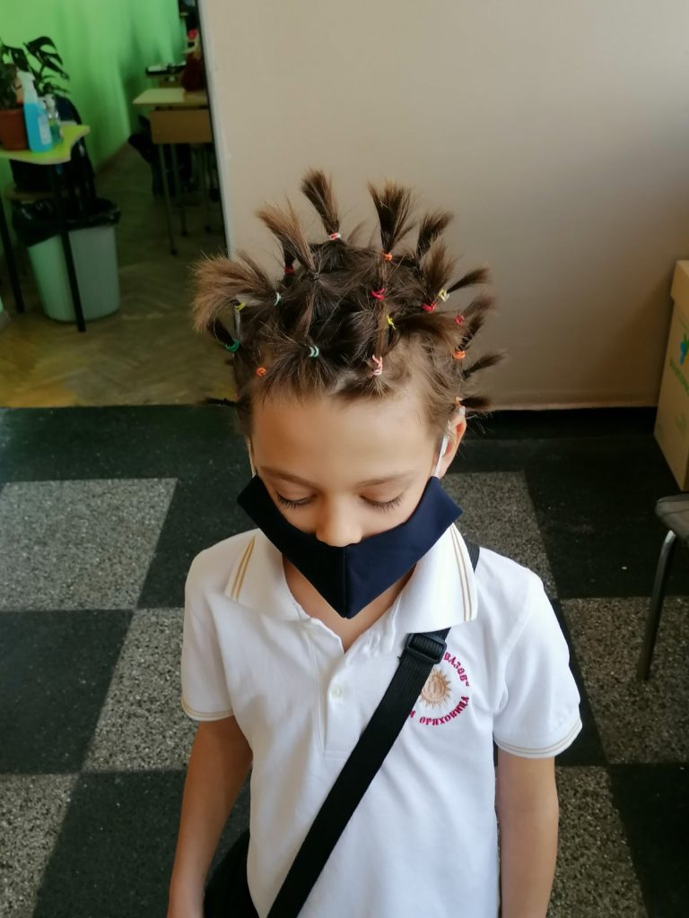 За да се намали риска от нежелателни инфекции учителите редовно запозват учениците с основни мерки за предпазване и спазване на лична хигиена. Учениците от 3Б клас , с класен ръководител Тодорка Маринова, представиха по един интересен и забавен начин на съучениците си какво е вирус, как изглежда и как се разпространява. Сръчните ръчички на децата сътвориха причудливи прически на тази тема.