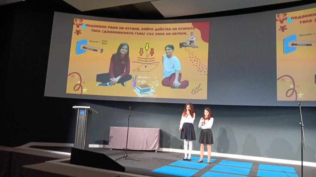 Голямата награда на конкурса за националните победители от ОУ „Иван Вазов“ – Горна Оряховица е да представят своите проекти на Националната конференция „STEM Образование и иновации“, секция STEM ученически проекти, която се провежда от 13 -15 април 2023 г. Малките момичета успяха достойно да защитят името на своето училище, показвайки своите презентационни умения от сцената пред десетки участници в залата на Интер Експо Център, София. Сертификати, златни медали и книга с публикация на проекта им бяха връчени от д-р Милена Крумова – Европейски институт за технологии, образование и дигитализация (EITED) и EduTechFlag, София.