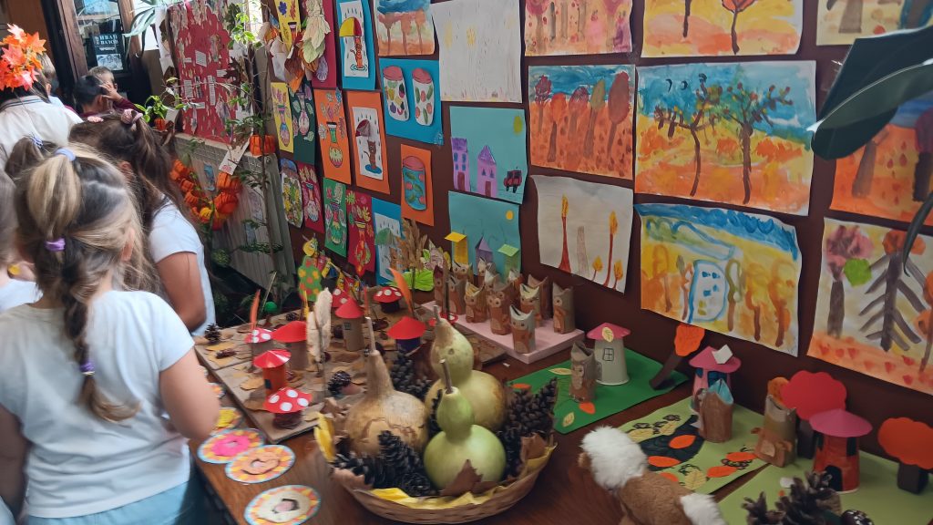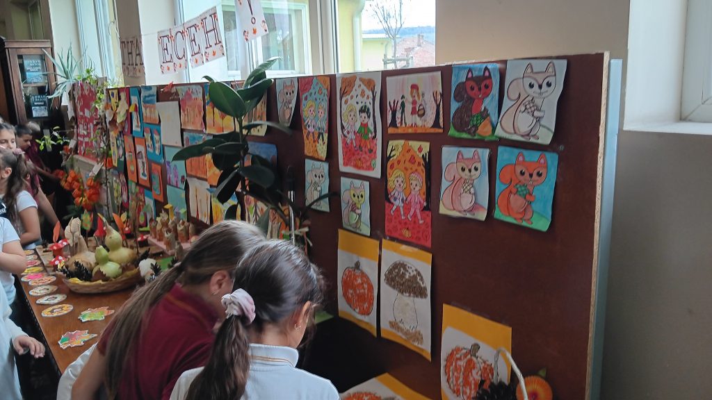 Есента пристигна със своята златна премяна и вдъхнови малките творци от всички начални класове да се включат в изложбата „Златна есен“. Преподавателите в групи ЦДО успяха да насърчат и ентусиазират малчуганите в часовете предвидени за занимания по интереси. На специална церемония, директорът на училището Иван Момъков откри есенната изложба и поздрави всички ученици за огромното старания, което пса вложили. С много старание, въображение и усмивки децата изработиха прекрасни творби, посветени на най-пъстрия сезон. Всеки ученик внесе частица от своето настроение и фантазия в творбите си. В изложбата можеха да се видят есенни пейзажи, апликации, картини, колажи и оригинални композиции от природни материали. Малките художници използваха разнообразни техники – рисуване с водни бои, апликации с цветна хартия и семена, отпечатване на листа, създаване на триизмерни фигури от шишарки, кестени, и сухи листа. От природните богатства се родиха истински малки произведения на изкуството. Коридорите на училището се преобразиха в истинска есенна галерия. Децата показаха, че когато има въображение и желание, природата може да се превърне в чудесен помощник на изкуството. Изложбата „Златна есен“ не беше просто представяне на детски творби, а истински празник на красотата, фантазията и любовта към природата. Тя напомни на всички, че есента не е просто сезон, а време за вдъхновение и споделена радост!