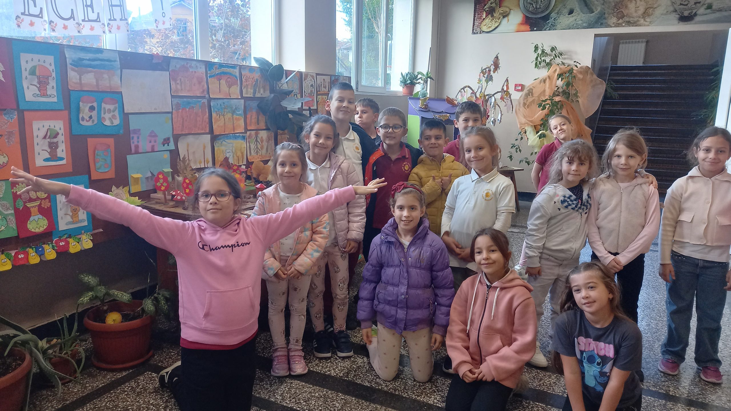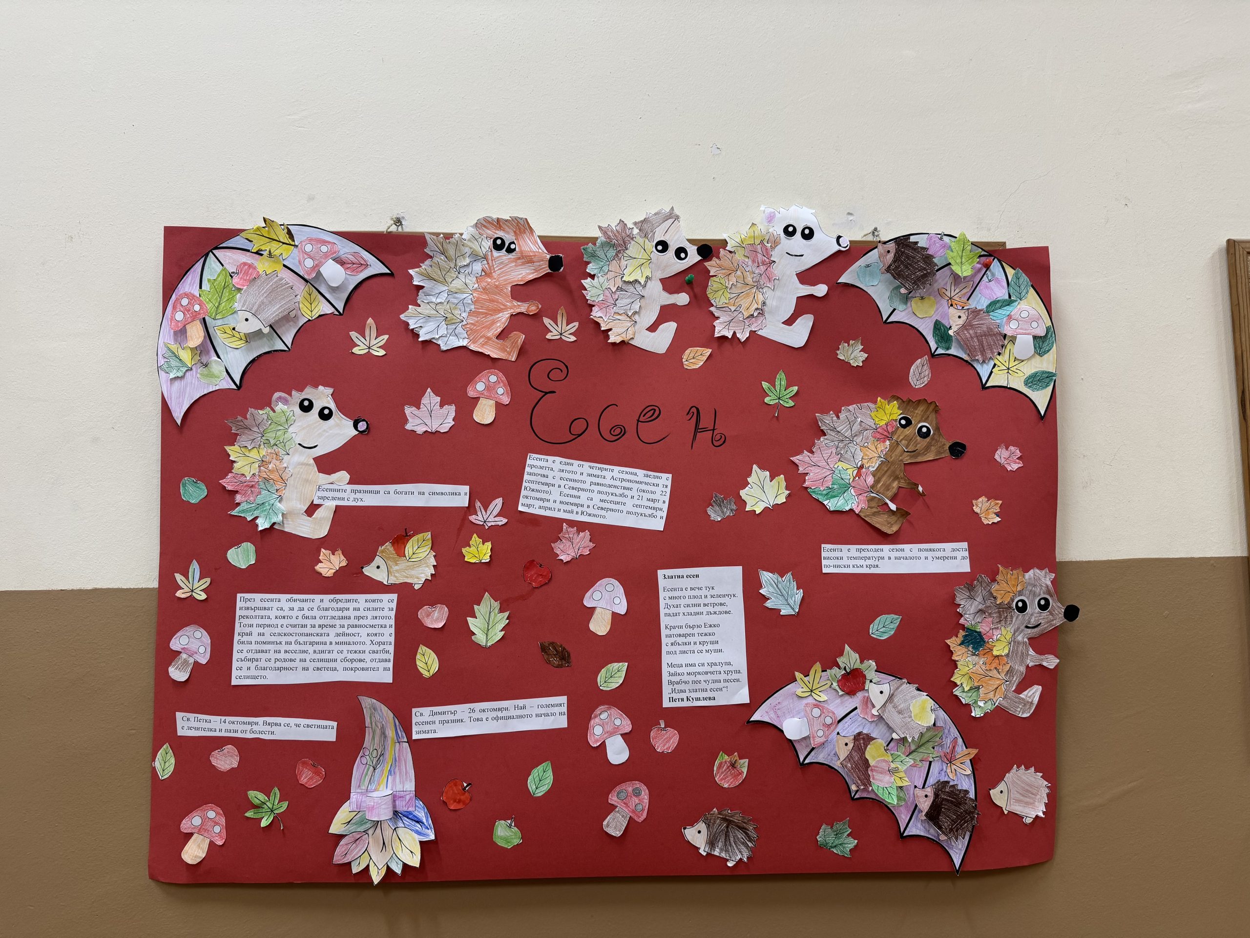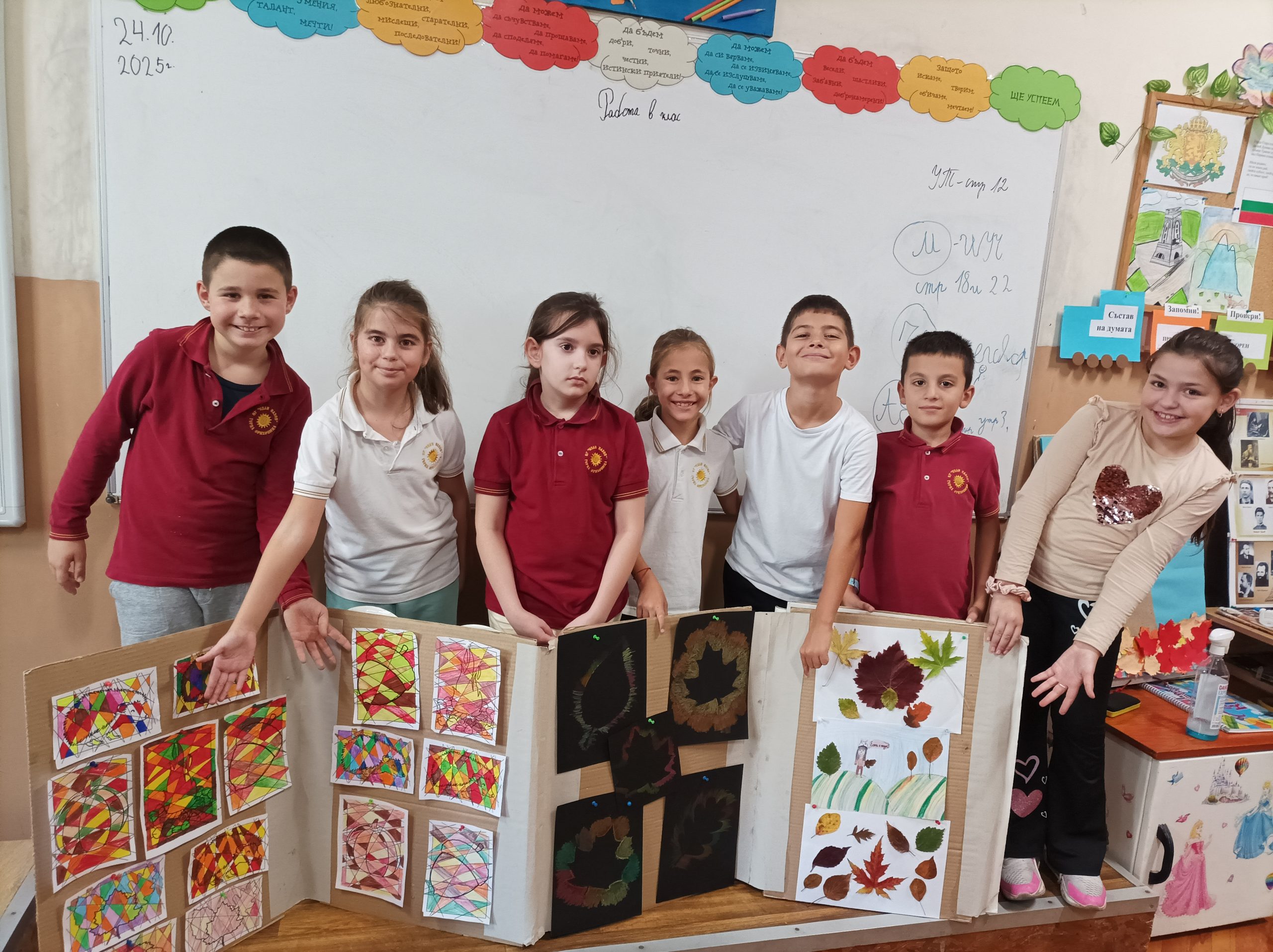 Есента пристигна със своята златна премяна и вдъхнови малките творци от всички начални класове да се включат в изложбата „Златна есен“. Преподавателите в групи ЦДО успяха да насърчат и ентусиазират малчуганите в часовете предвидени за занимания по интереси. На специална церемония, директорът на училището Иван Момъков откри есенната изложба и поздрави всички ученици за огромното старания, което пса вложили. С много старание, въображение и усмивки децата изработиха прекрасни творби, посветени на най-пъстрия сезон. Всеки ученик внесе частица от своето настроение и фантазия в творбите си. В изложбата можеха да се видят есенни пейзажи, апликации, картини, колажи и оригинални композиции от природни материали. Малките художници използваха разнообразни техники – рисуване с водни бои, апликации с цветна хартия и семена, отпечатване на листа, създаване на триизмерни фигури от шишарки, кестени, и сухи листа. От природните богатства се родиха истински малки произведения на изкуството. Коридорите на училището се преобразиха в истинска есенна галерия. Децата показаха, че когато има въображение и желание, природата може да се превърне в чудесен помощник на изкуството. Изложбата „Златна есен“ не беше просто представяне на детски творби, а истински празник на красотата, фантазията и любовта към природата. Тя напомни на всички, че есента не е просто сезон, а време за вдъхновение и споделена радост!