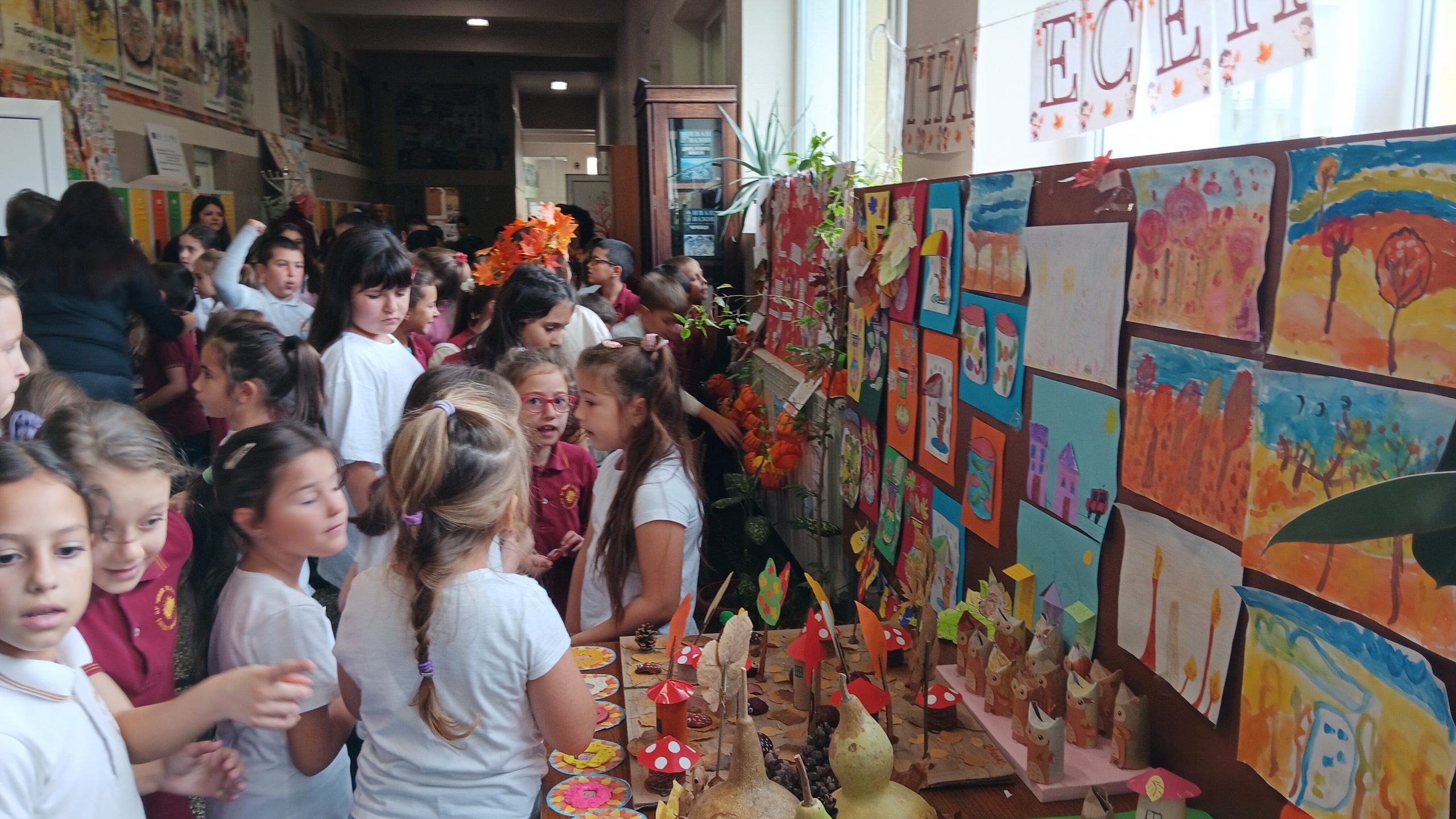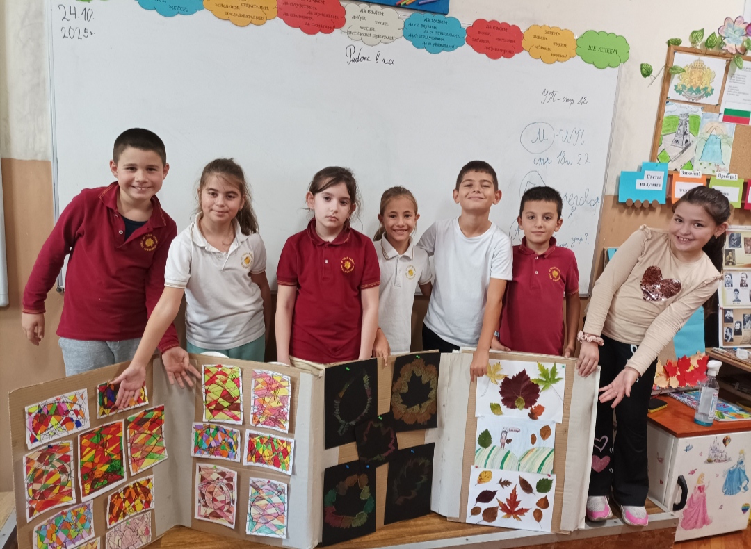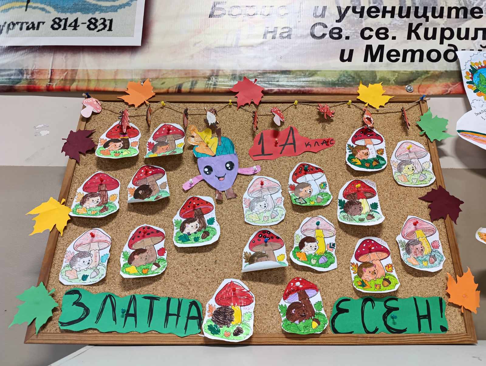 Есента пристигна със своята златна премяна и вдъхнови малките творци от всички начални класове да се включат в изложбата „Златна есен“. Преподавателите в групи ЦДО успяха да насърчат и ентусиазират малчуганите в часовете предвидени за занимания по интереси. На специална церемония, директорът на училището Иван Момъков откри есенната изложба и поздрави всички ученици за огромното старания, което пса вложили. С много старание, въображение и усмивки децата изработиха прекрасни творби, посветени на най-пъстрия сезон. Всеки ученик внесе частица от своето настроение и фантазия в творбите си. В изложбата можеха да се видят есенни пейзажи, апликации, картини, колажи и оригинални композиции от природни материали. Малките художници използваха разнообразни техники – рисуване с водни бои, апликации с цветна хартия и семена, отпечатване на листа, създаване на триизмерни фигури от шишарки, кестени, и сухи листа. От природните богатства се родиха истински малки произведения на изкуството. Коридорите на училището се преобразиха в истинска есенна галерия. Децата показаха, че когато има въображение и желание, природата може да се превърне в чудесен помощник на изкуството. Изложбата „Златна есен“ не беше просто представяне на детски творби, а истински празник на красотата, фантазията и любовта към природата. Тя напомни на всички, че есента не е просто сезон, а време за вдъхновение и споделена радост!