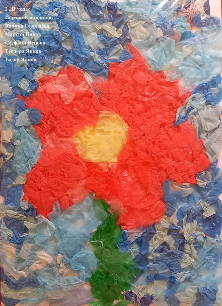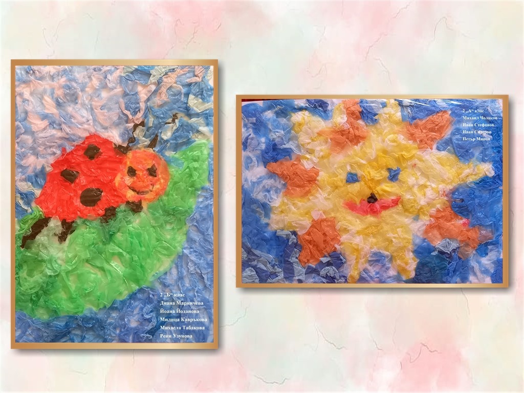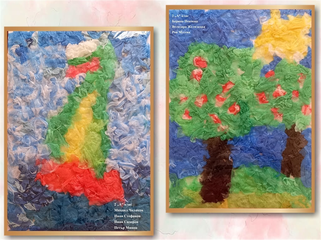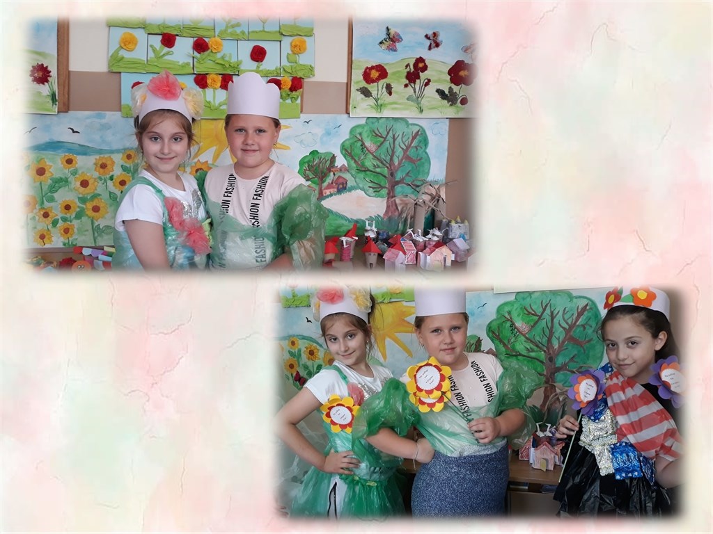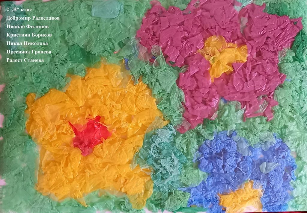 Учениците от 2 а, б, и в класове съвместно заедно с техния преподавател по изобразително изкуство, г-жа Нанкова, изработиха пана от найлонови торбички. В часовете за занимания по интереси изработиха къщи от картон. Вдъхновени от творчеството със отпадъци учениците си направиха модно ревю от рециклирани материали..