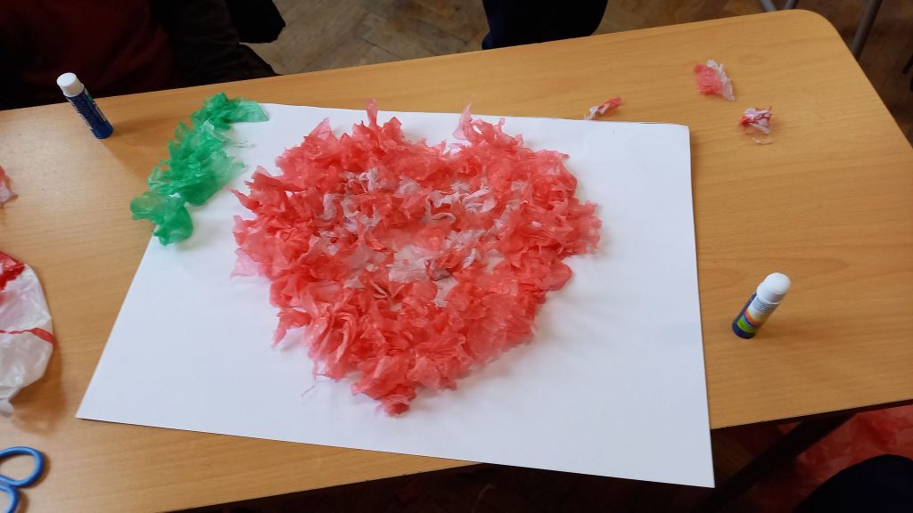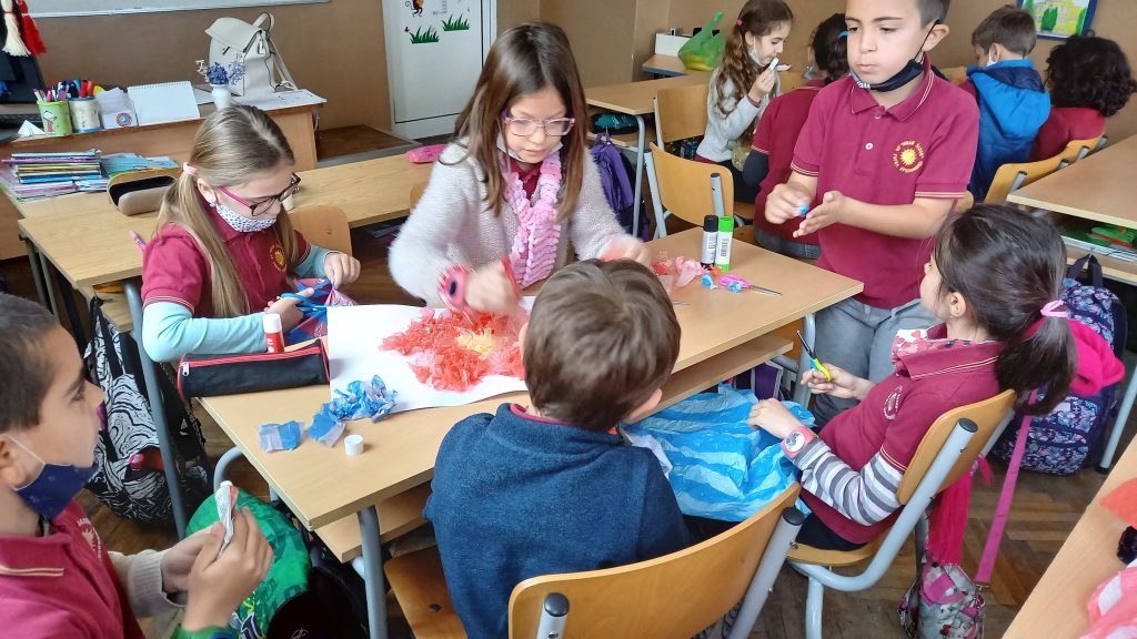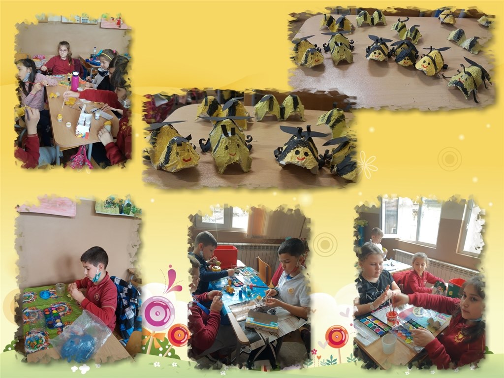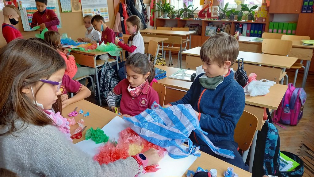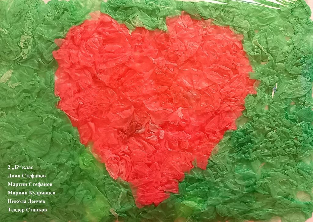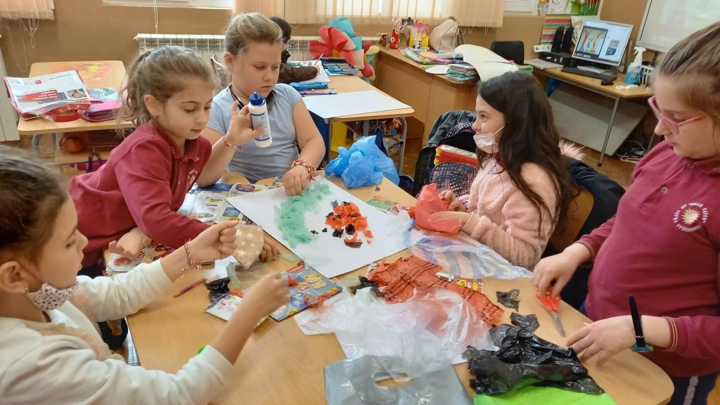 Учениците от 2 а, б, и в класове съвместно заедно с техния преподавател по изобразително изкуство, г-жа Нанкова, изработиха пана от найлонови торбички. В часовете за занимания по интереси изработиха къщи от картон. Вдъхновени от творчеството със отпадъци учениците си направиха модно ревю от рециклирани материали..