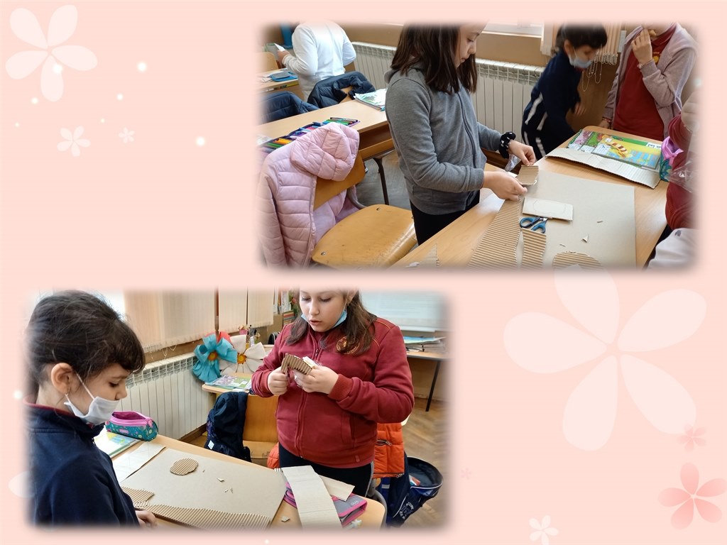 Третокласниците от 3 Б клас в часовете по изобразително изкуство се изявиха като добри архитекти, като сътвориха от картон „Къщата на моите мечти“.