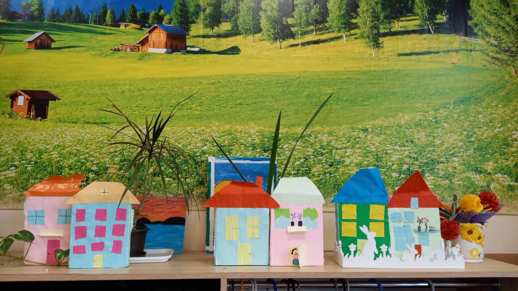 Третокласниците от 3 Б клас в часовете по изобразително изкуство се изявиха като добри архитекти, като сътвориха от картон „Къщата на моите мечти“.