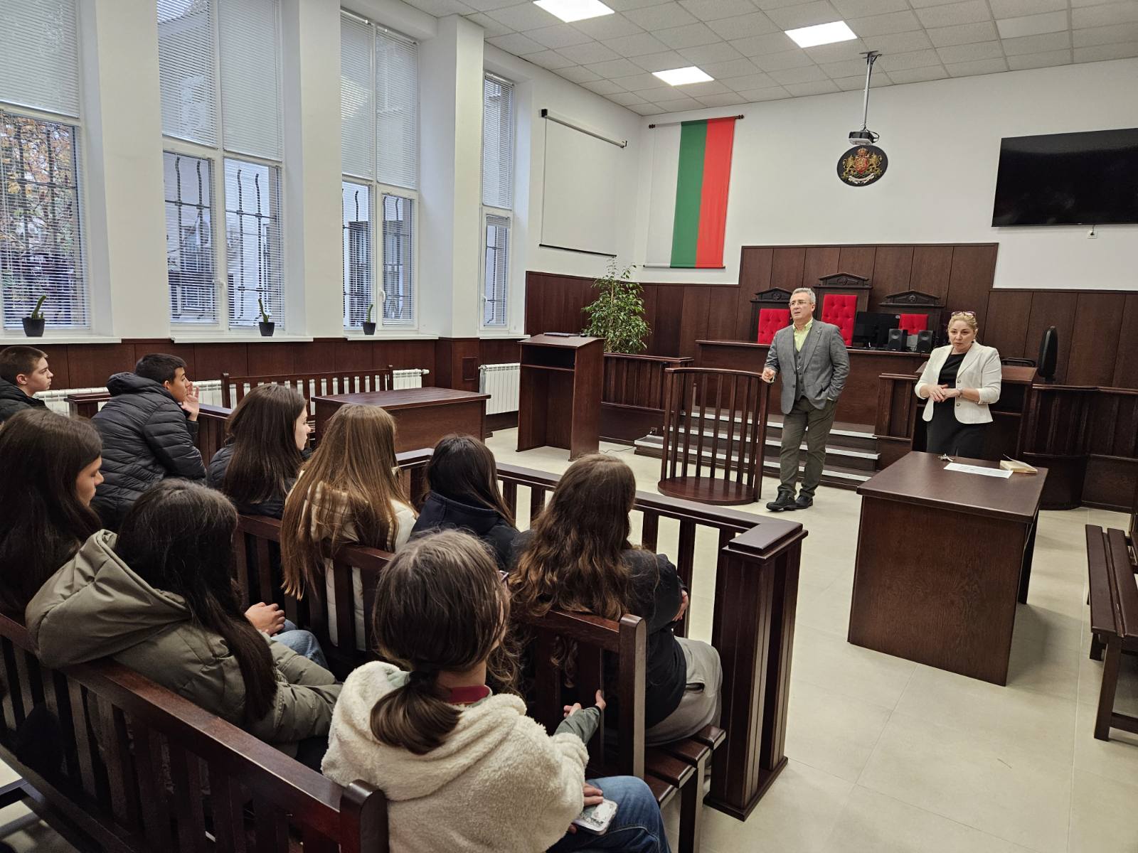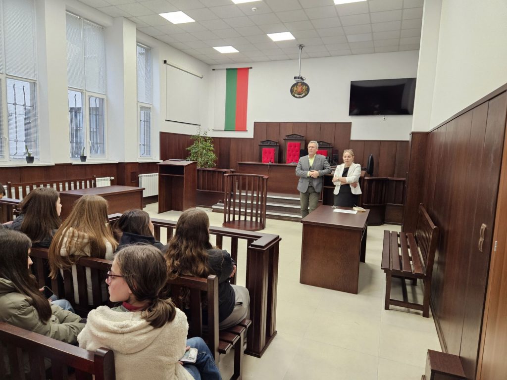 Интересен час на класа имаха учениците от 7 в клас на тема: „Наказателно правосъдие. Правосъдие и нарушение. Съучастие. Наказателно отговорни лица. Наказание – понятие, цел, видове. престъпления.“, при посещението си в горнооряховския районен съд с лектори съдия Златина Личева и прокурор Тодор Баланов.