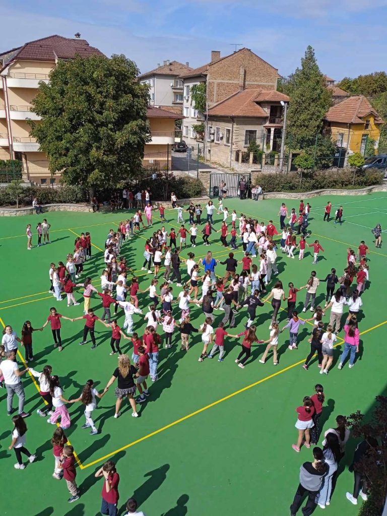 Освен вдъхновяващите демонстрации, спортният ден продължи с още една емоционална инициатива. По време на голямото междучасие цялото училище – ученици и учители се хванаха на български хора. Под звуците на българска народна музика училищния двор оживя в ритъма на традицията. Танците създадоха неповторима атмосфера, в която се срещнаха миналото и настоящето, духът на спорта и магията на фолклора.