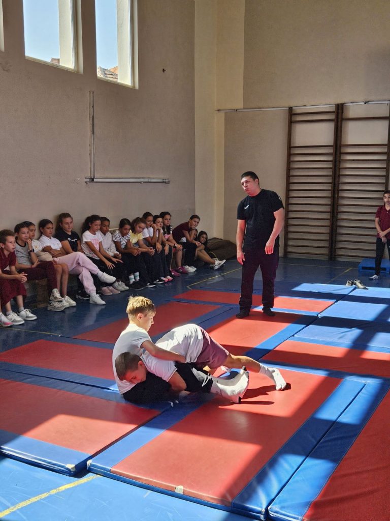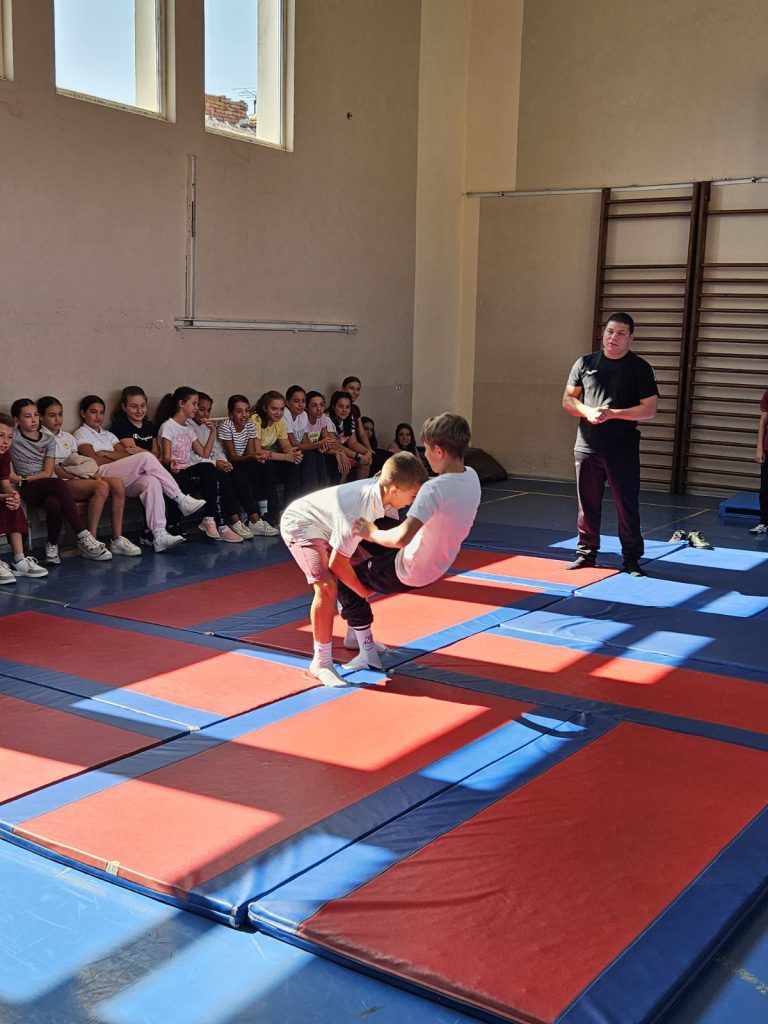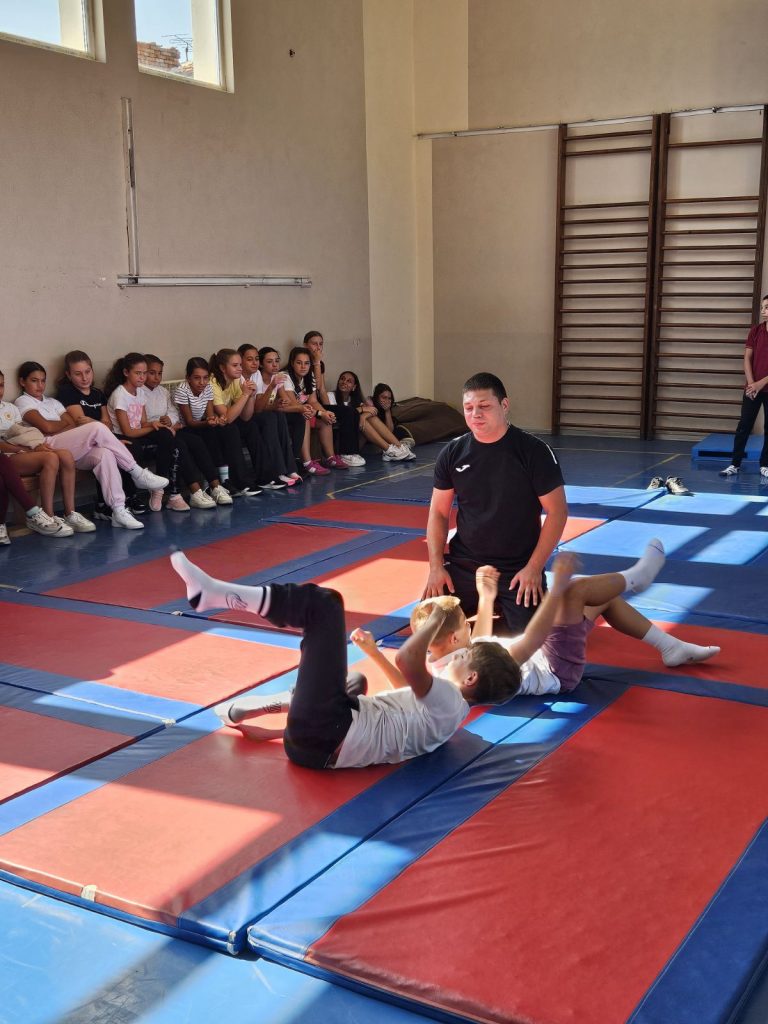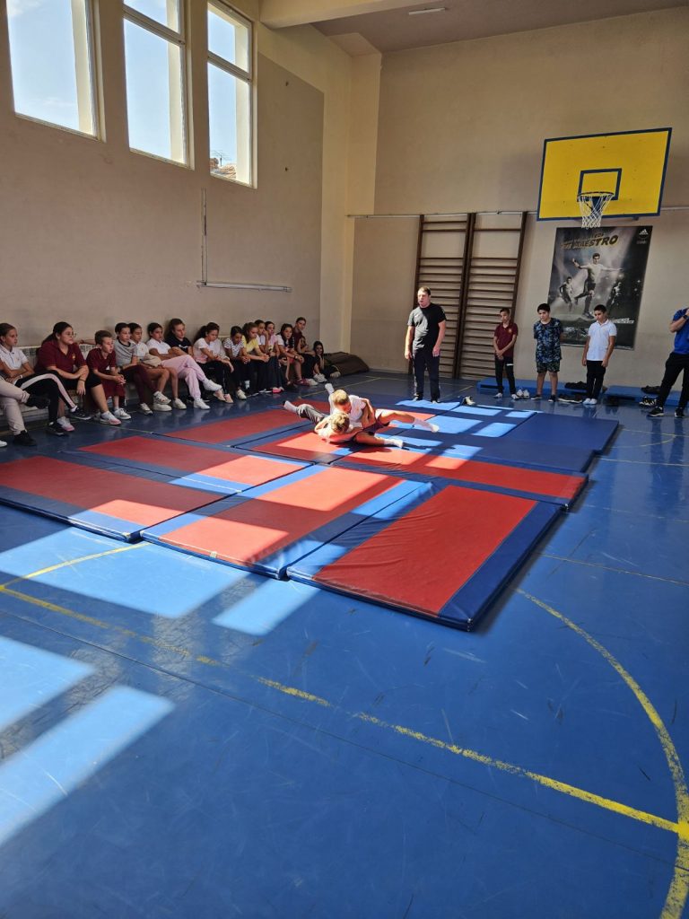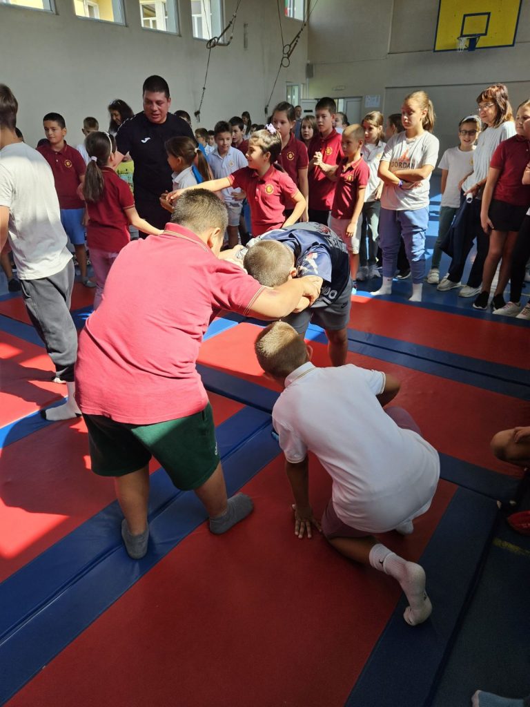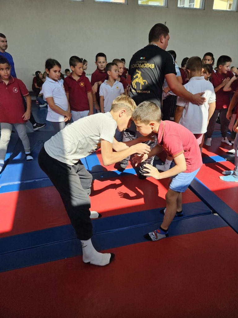 Началото на спортния празник постави Николай Ганев – треньор по борба в СК „Локомотив“ – Горна Оряховица. Под негово ръководство, медалистите от нашето училище Мартин Попов от 7 в клас и Йордан Миланов – 5 б клас демонстрираха основни технико-тактически умения по борба, заедно с ученици от първи до седми клас. Треньор Ганев представи интересни факти от историята на борбата – един от най- древните олимпийски спортове, който възпитава дисциплина, воля, уважение и спортен дух.