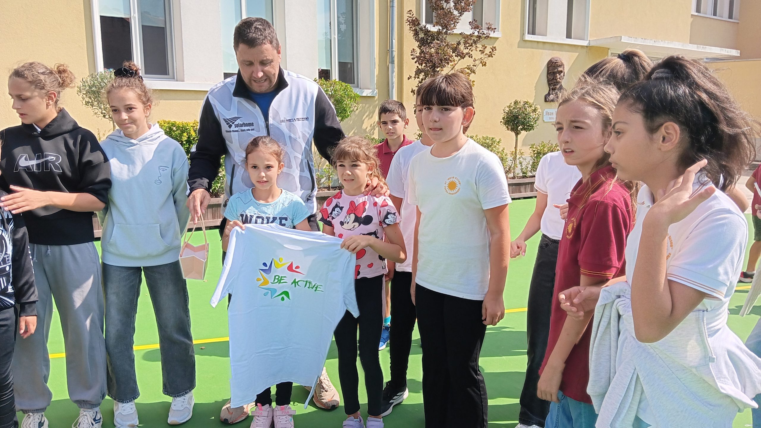 Ръководството на училището подготви специален подарък за нашите гости – тениски с логото на училището и мотото „Be active”, като израз на благодарност за тяхната отдаденост и сътрудничество.