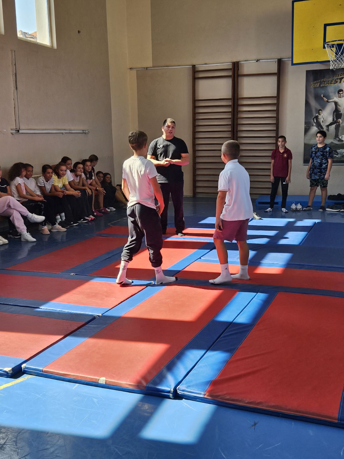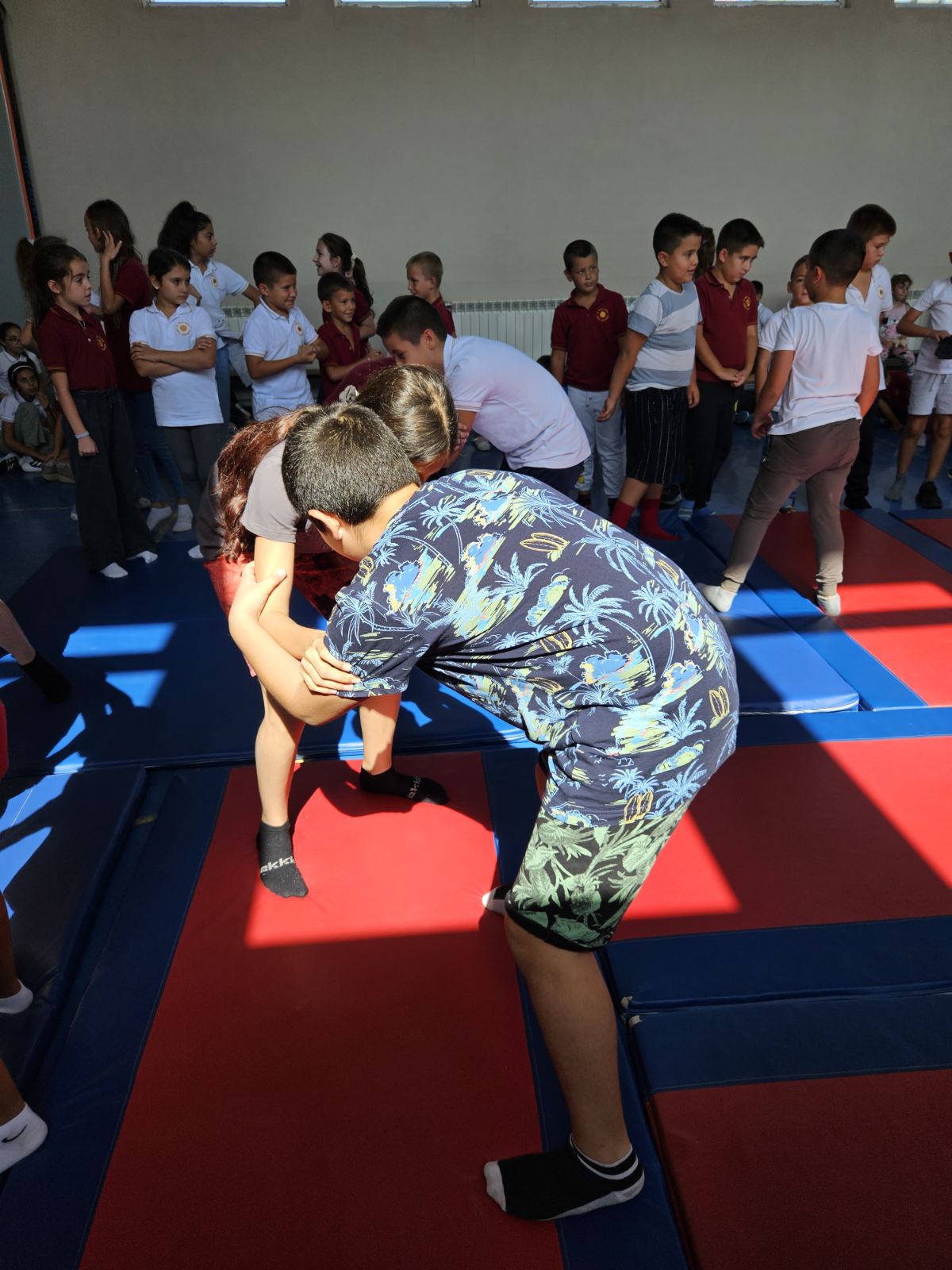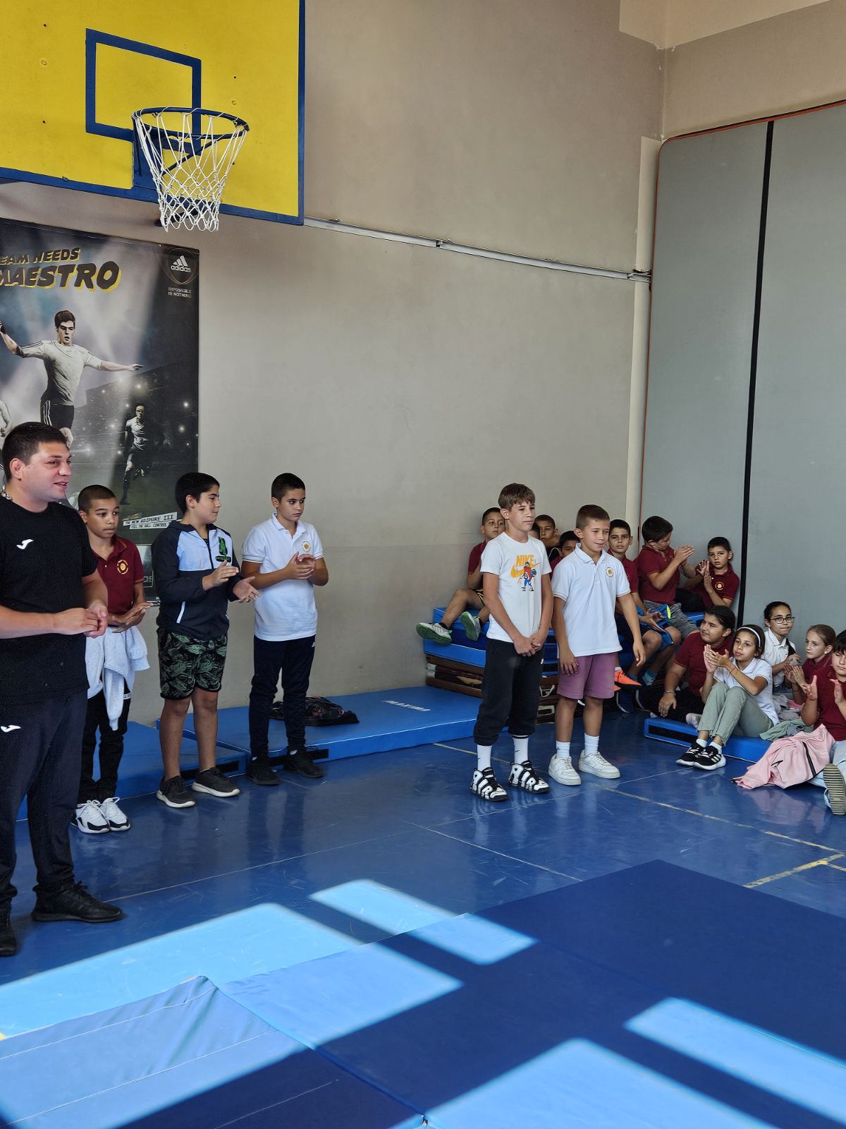 Началото на спортния празник постави Николай Ганев – треньор по борба в СК „Локомотив“ – Горна Оряховица. Под негово ръководство, медалистите от нашето училище Мартин Попов от 7 в клас и Йордан Миланов – 5 б клас демонстрираха основни технико-тактически умения по борба, заедно с ученици от първи до седми клас. Треньор Ганев представи интересни факти от историята на борбата – един от най- древните олимпийски спортове, който възпитава дисциплина, воля, уважение и спортен дух.