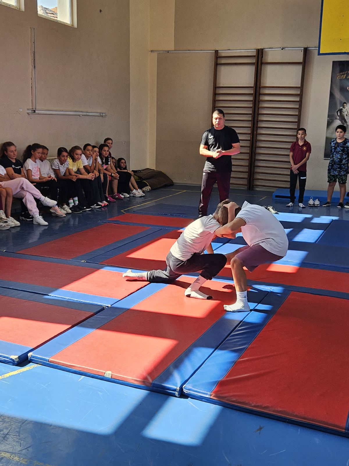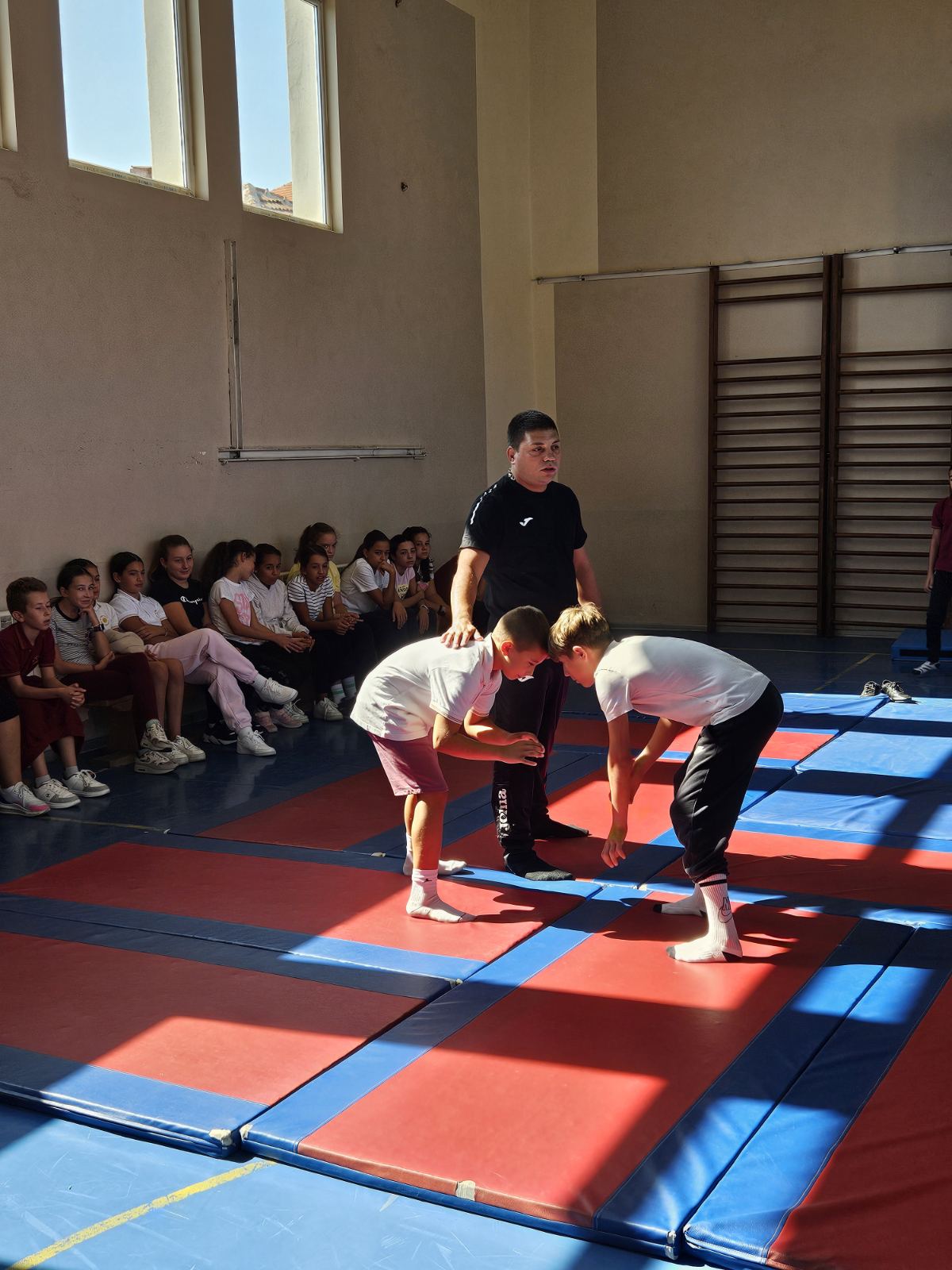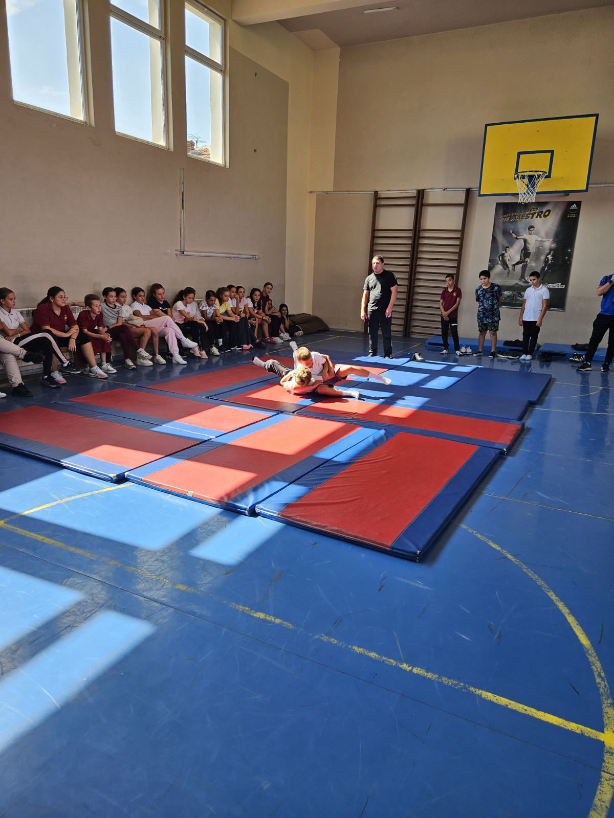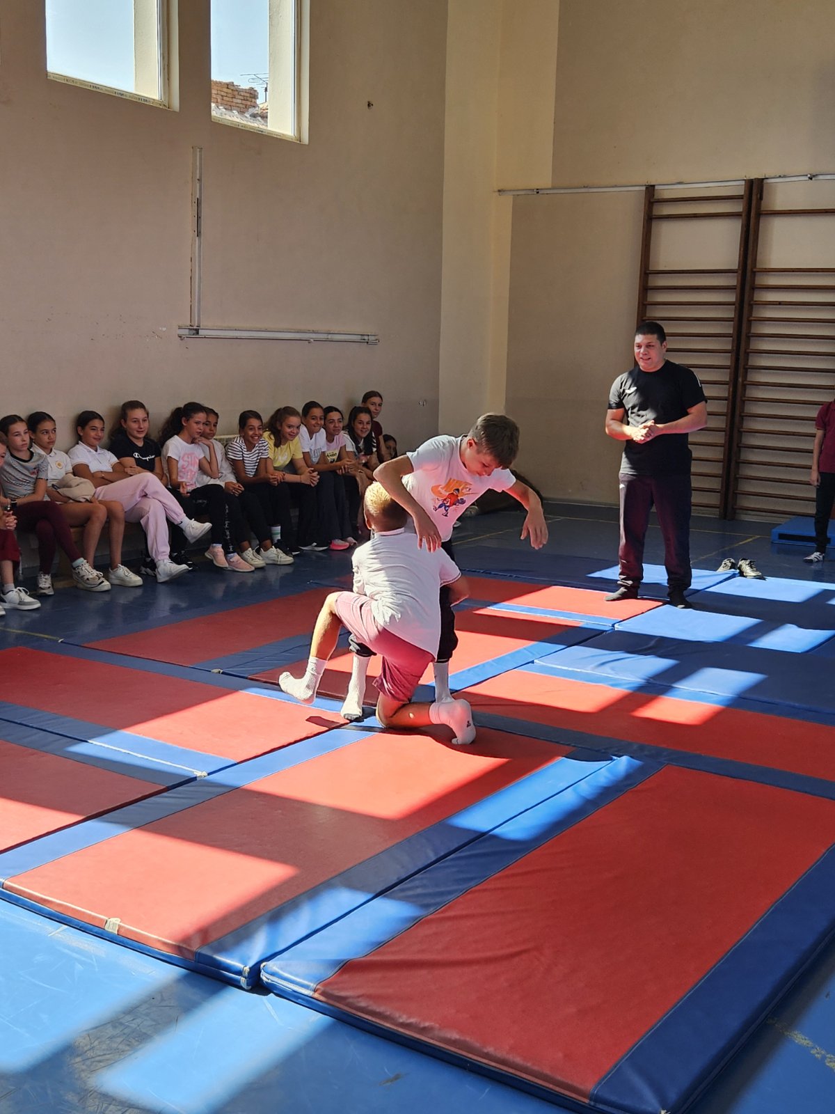 Началото на спортния празник постави Николай Ганев – треньор по борба в СК „Локомотив“ – Горна Оряховица. Под негово ръководство, медалистите от нашето училище Мартин Попов от 7 в клас и Йордан Миланов – 5 б клас демонстрираха основни технико-тактически умения по борба, заедно с ученици от първи до седми клас. Треньор Ганев представи интересни факти от историята на борбата – един от най- древните олимпийски спортове, който възпитава дисциплина, воля, уважение и спортен дух.