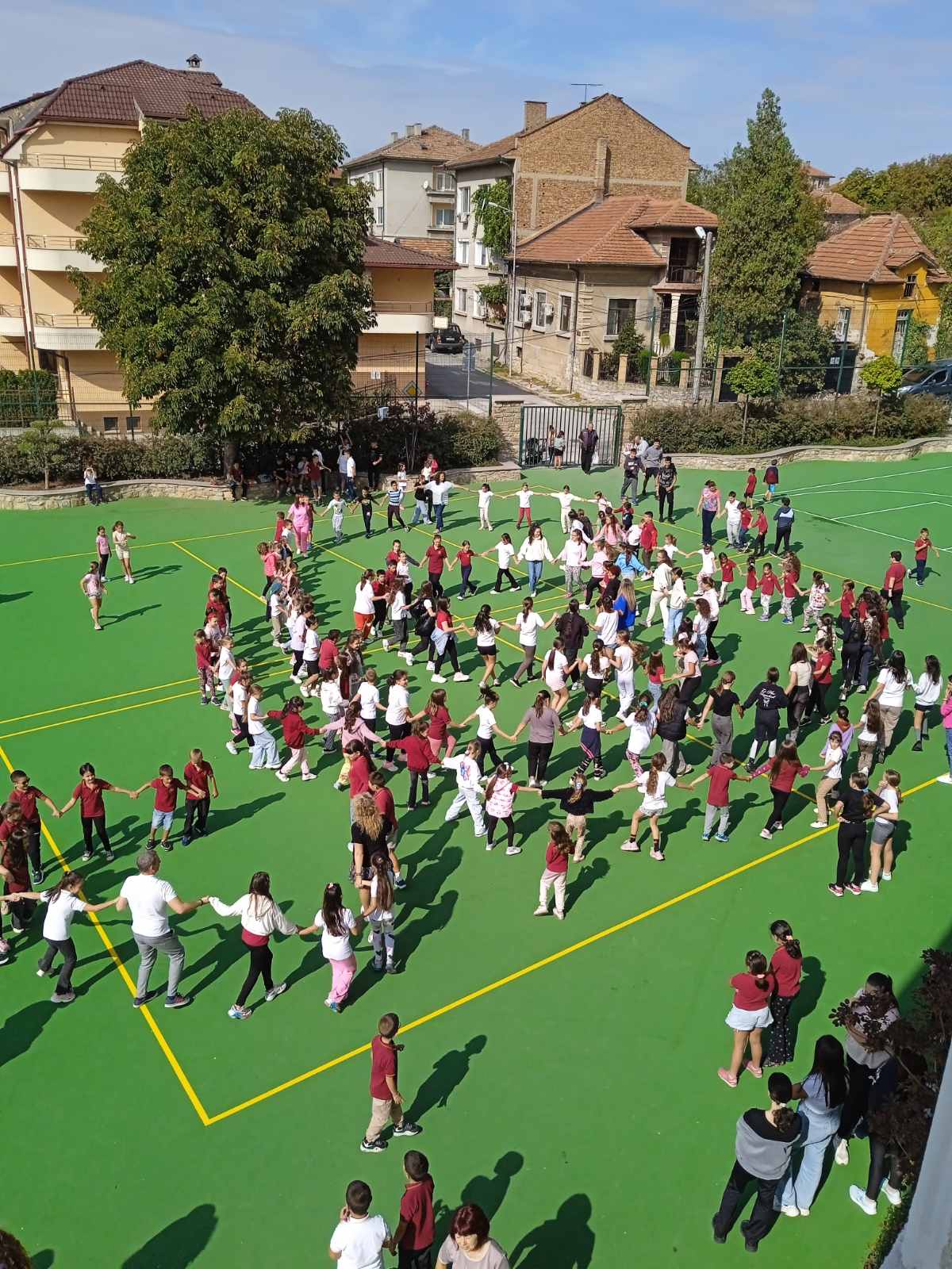 Освен вдъхновяващите демонстрации, спортният ден продължи с още една емоционална инициатива. По време на голямото междучасие цялото училище – ученици и учители се хванаха на български хора. Под звуците на българска народна музика училищния двор оживя в ритъма на традицията. Танците създадоха неповторима атмосфера, в която се срещнаха миналото и настоящето, духът на спорта и магията на фолклора.