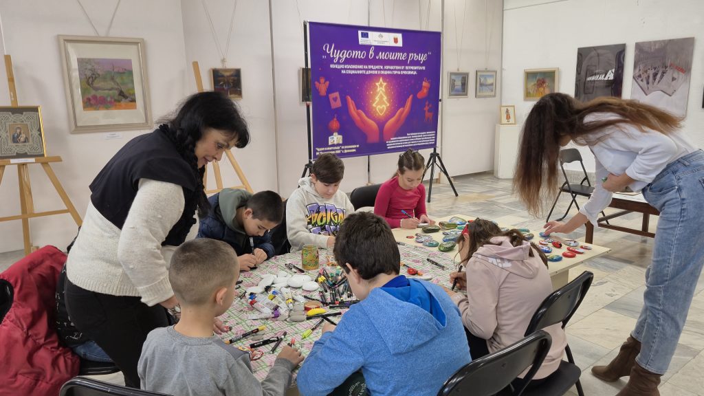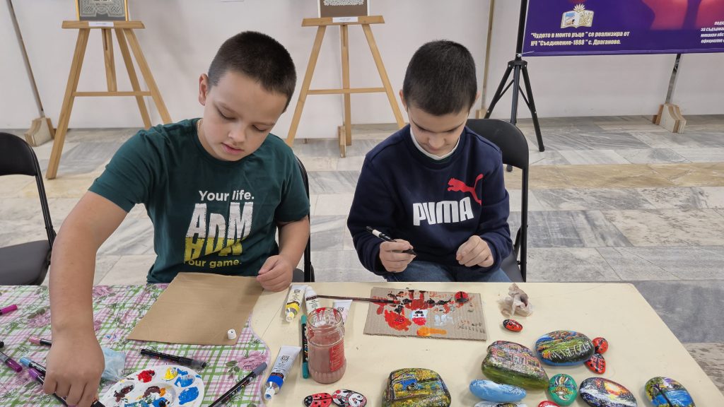 В един от творческите кътове учениците низаха гривни от мъниста, заедно с психолога Росица Иванова. Във втори кът рисуваха камъчета, заедно с поета-художник Таня Мезева, а в третия кът изработиха коледни фигурки от глина под скулптура Гълъбин Христов. Всички твориха с голямо старание и любов, а изработените сувенири ще са един прекрасен спомен от чудото, което сътвориха със собствените си ръце, споделен със своите близки и приятели.