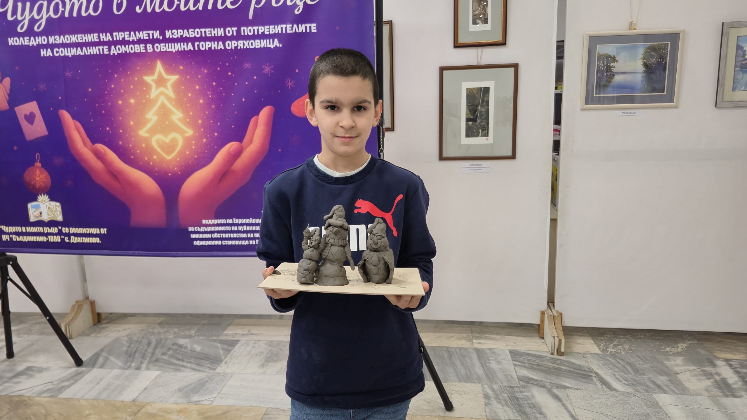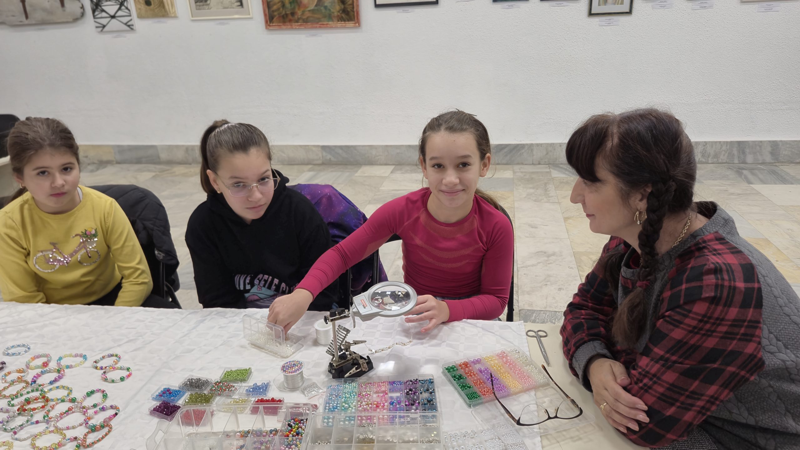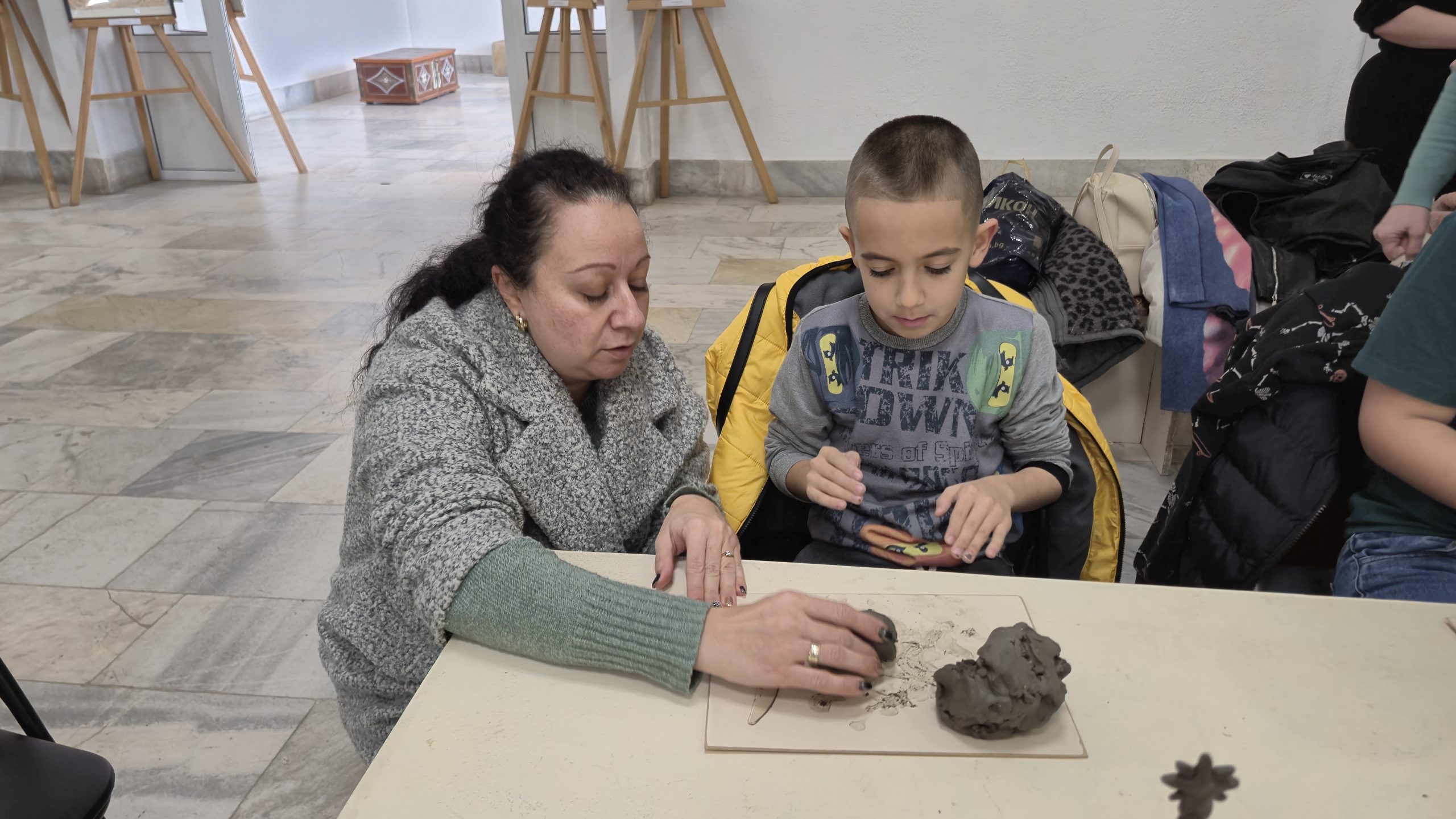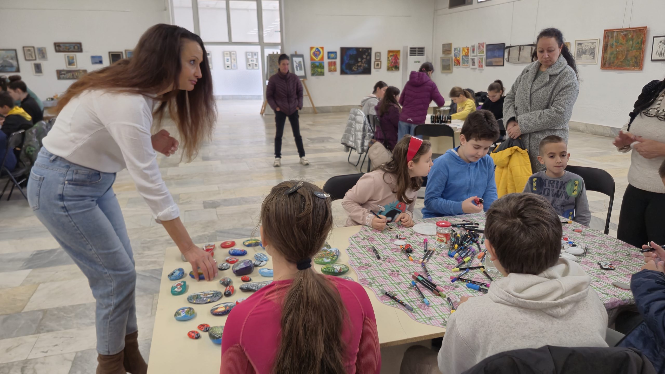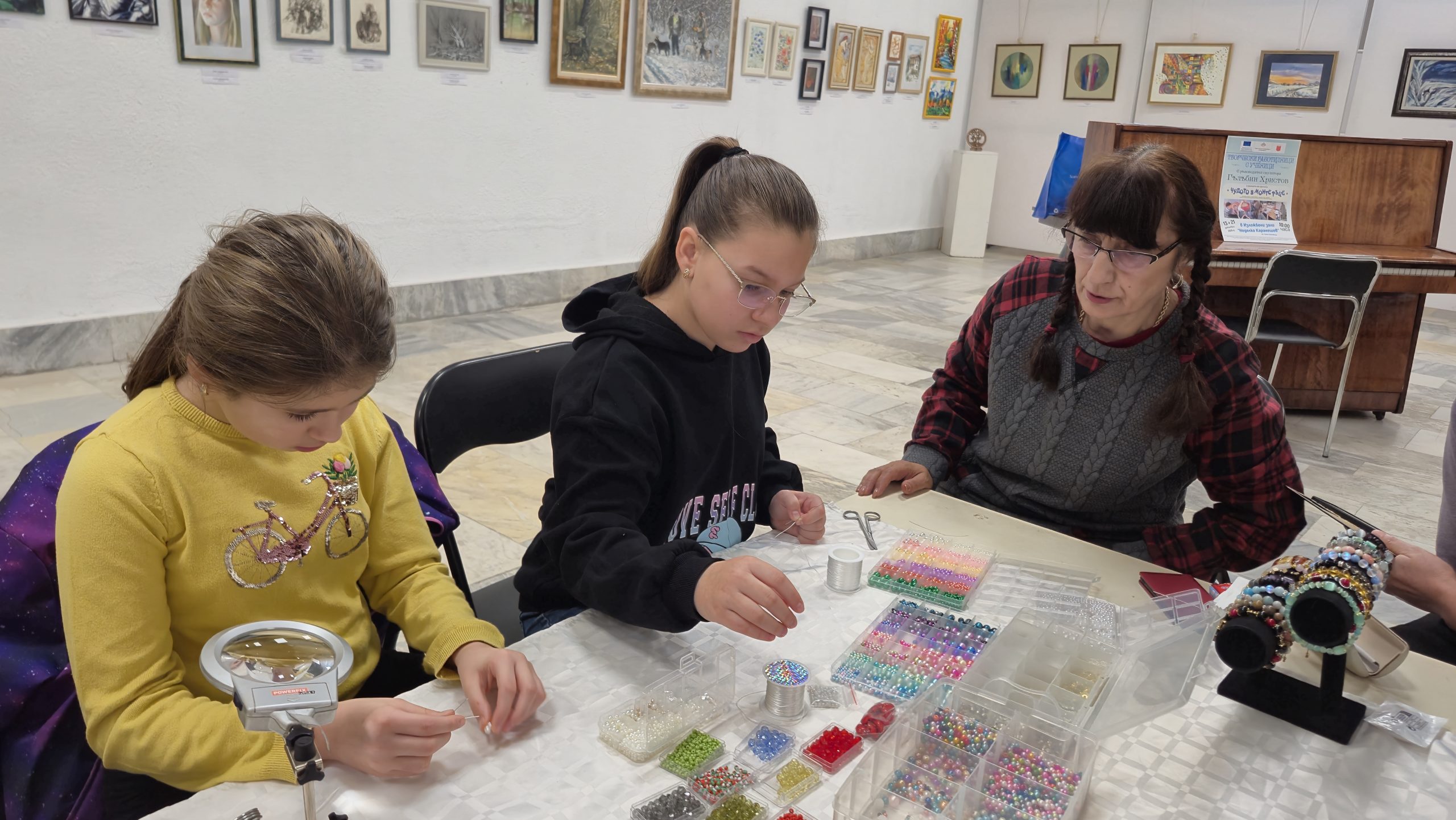 В един от творческите кътове учениците низаха гривни от мъниста, заедно с психолога Росица Иванова. Във втори кът рисуваха камъчета, заедно с поета-художник Таня Мезева, а в третия кът изработиха коледни фигурки от глина под скулптура Гълъбин Христов. Всички твориха с голямо старание и любов, а изработените сувенири ще са един прекрасен спомен от чудото, което сътвориха със собствените си ръце, споделен със своите близки и приятели.