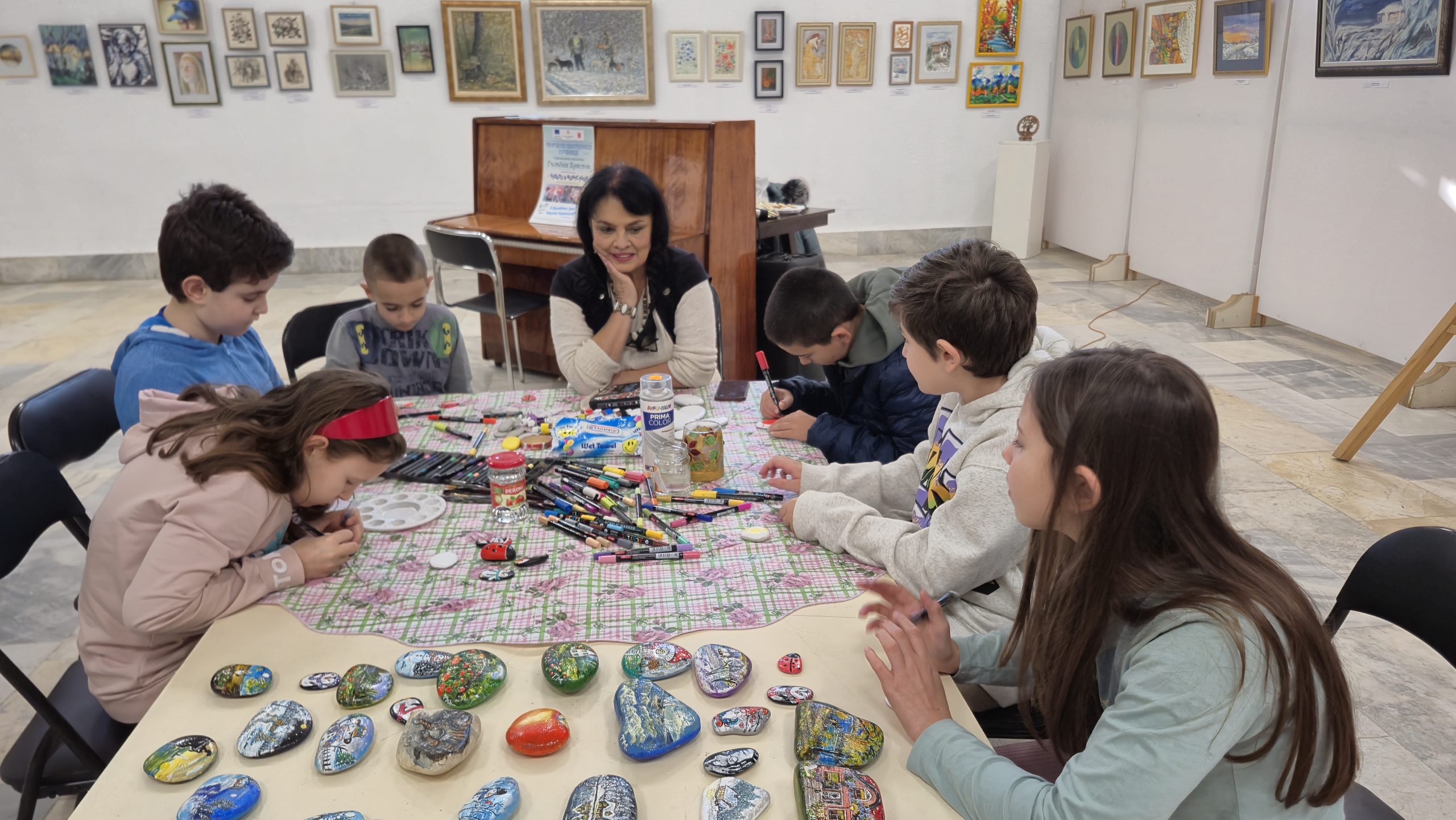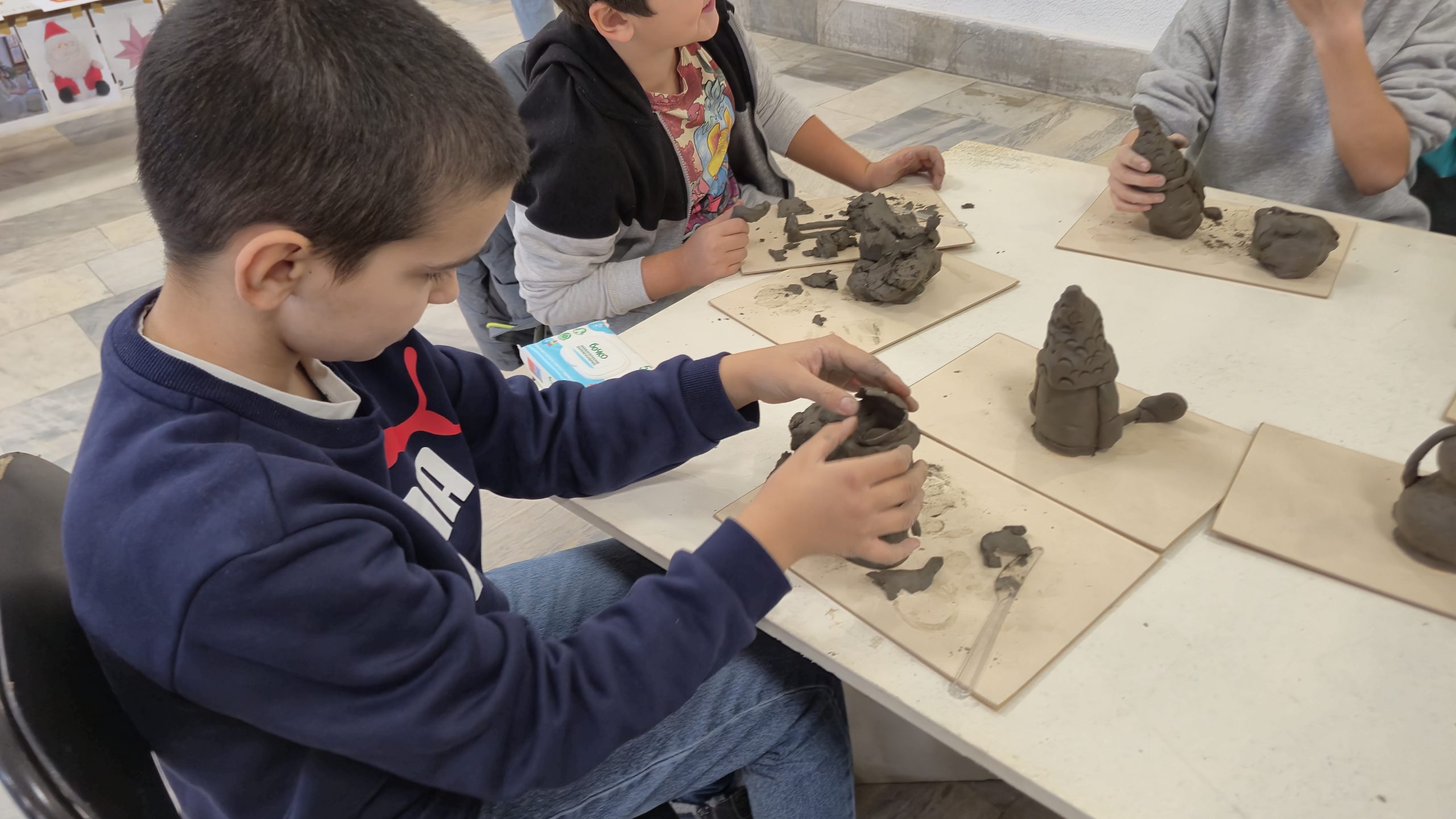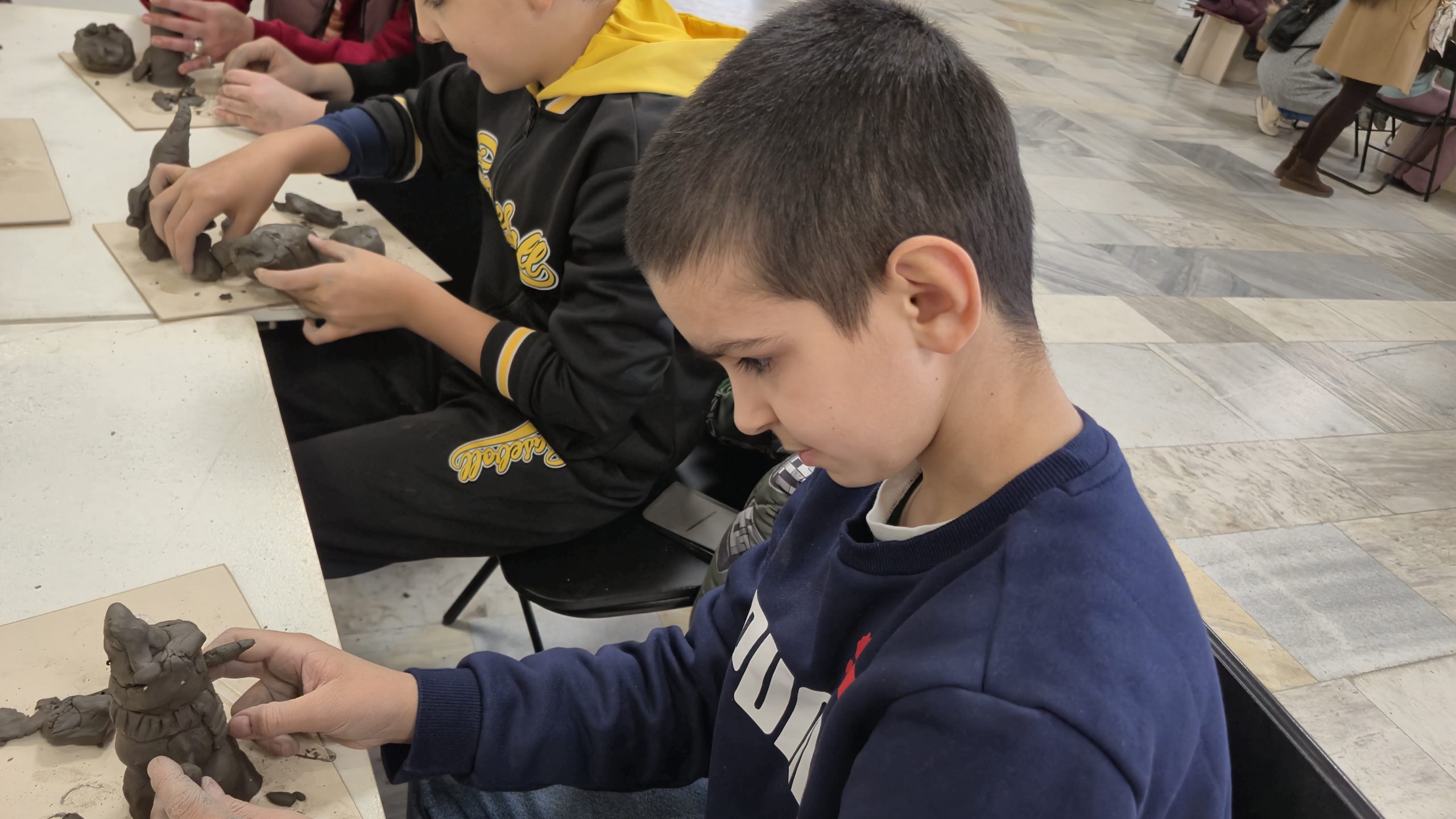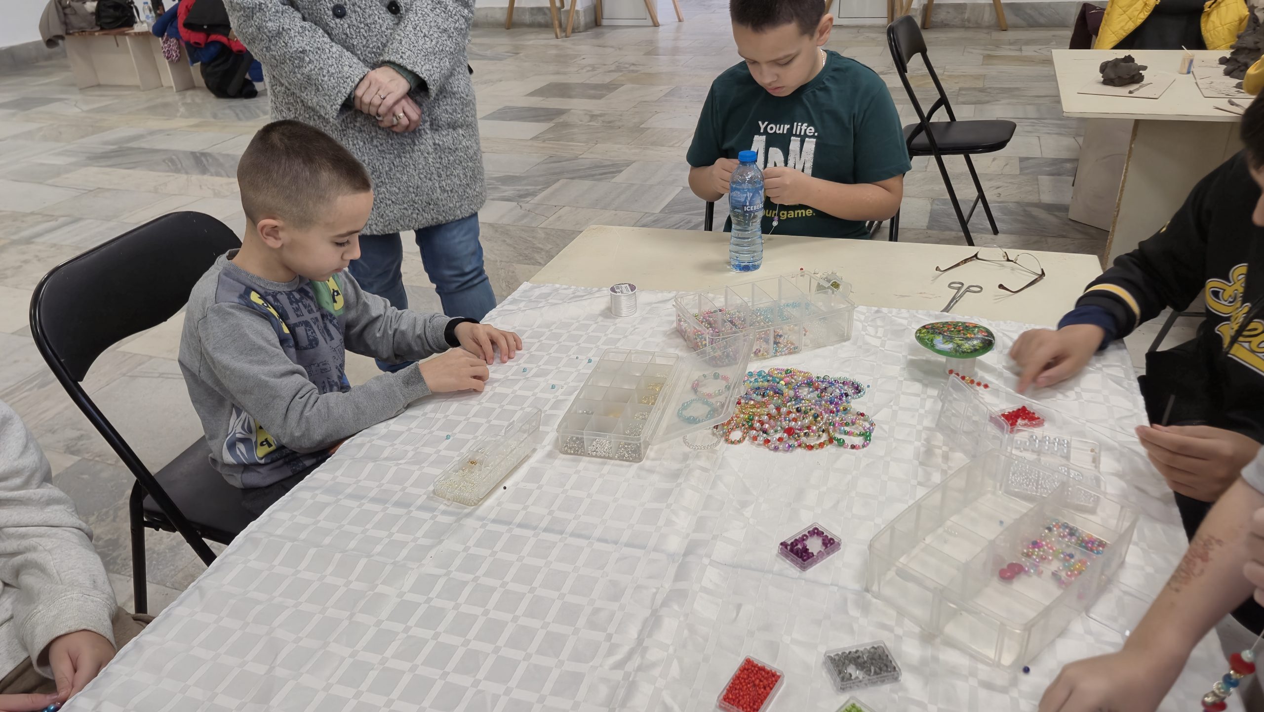 В един от творческите кътове учениците низаха гривни от мъниста, заедно с психолога Росица Иванова. Във втори кът рисуваха камъчета, заедно с поета-художник Таня Мезева, а в третия кът изработиха коледни фигурки от глина под скулптура Гълъбин Христов. Всички твориха с голямо старание и любов, а изработените сувенири ще са един прекрасен спомен от чудото, което сътвориха със собствените си ръце, споделен със своите близки и приятели.