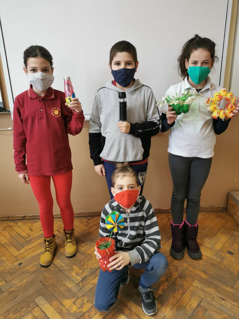 В Световния ден на рециклирането се включиха учениците от 4а клас. Заедно с класния си ръководител г-жа Минчева вдъхнаха нов живот на вече използвани материали.