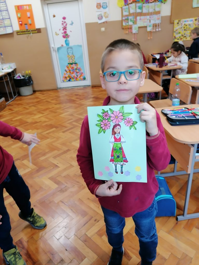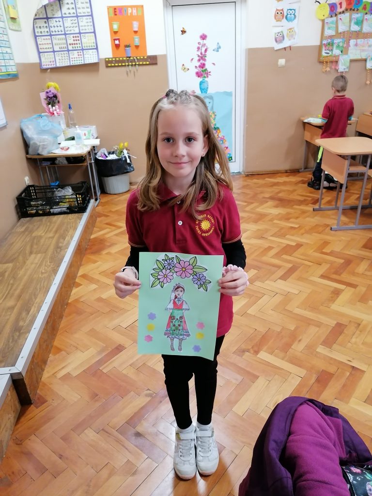 Седмица преди празника Лазаровден, преподавателят в група ЦДО Ирина Стефанова посвети на традициите и обичаите свързани с него. В заниманията по интереси учениците от 1 в клас се запознаха с традиционното облекло на момите лазарки. Оцветиха и апликираха модел на тракийска носия. Децата обсъдиха и си припомниха всички традиции, които са свързани с празника, както и обичаите, които благодарение нас, са живи и до днес. Празникът носи пролетно настроение и се очаква с нетърпение както от участничките, така и от жителите и гостите на селата и градовете.