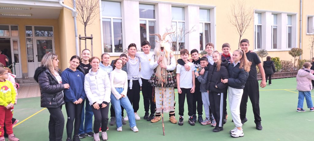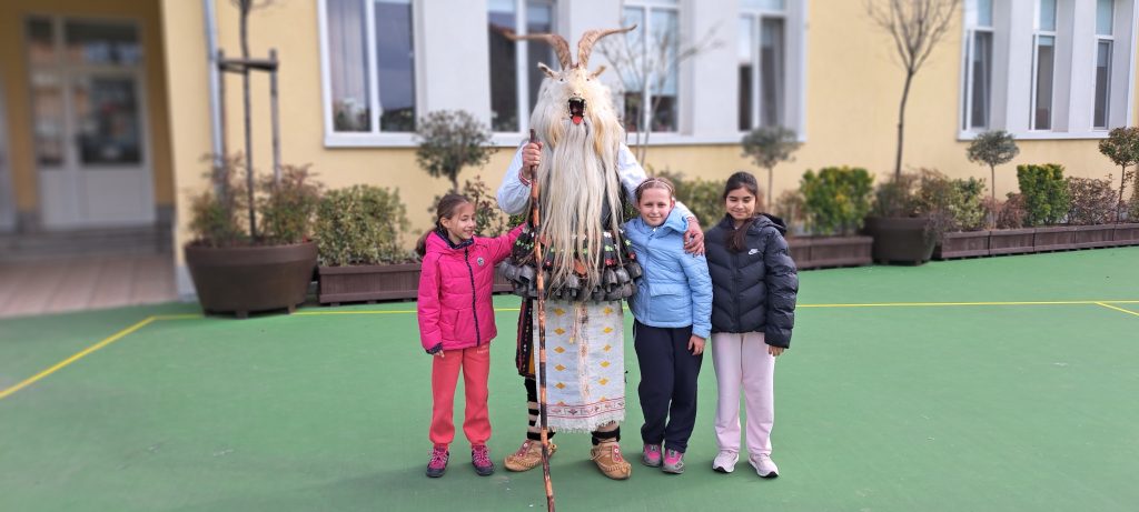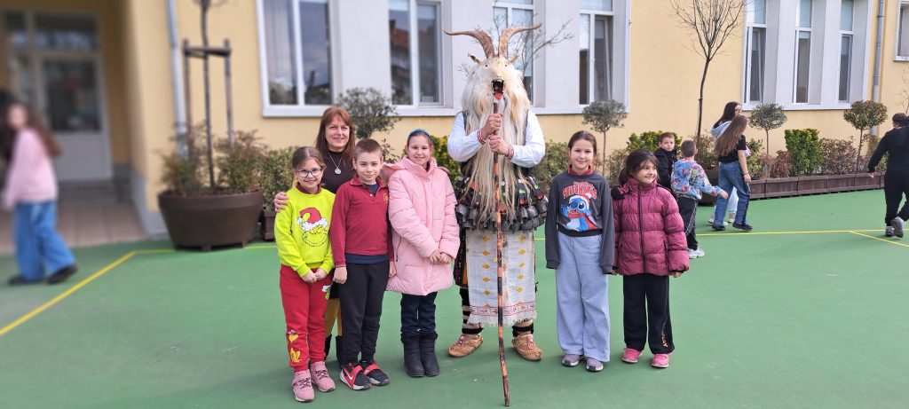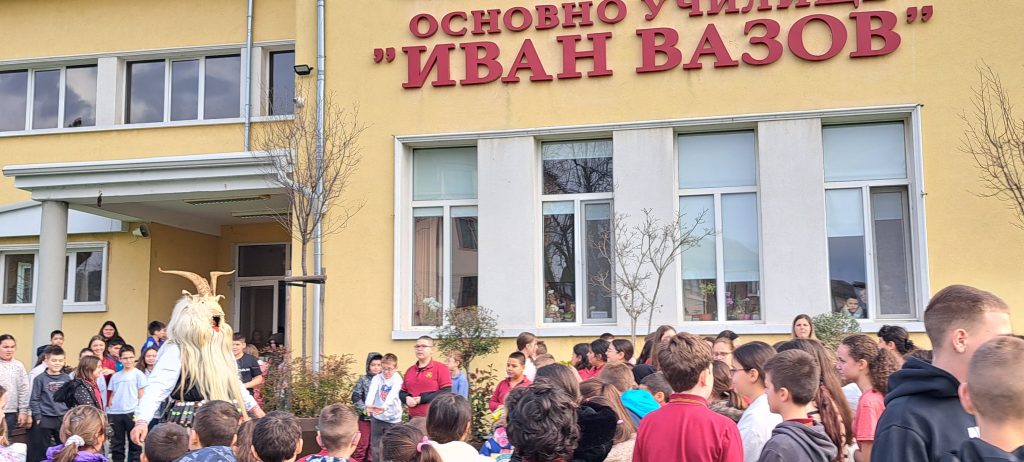 В един необикновен учебен ден дворът и коридорите на ОУ „Иван Вазов», се огласиха от ритмичния звън на десетки чанове. Училището посрещна специален гост – Веселин Петков, представител на именитата кукерска група при село Победа, област Ямбол.