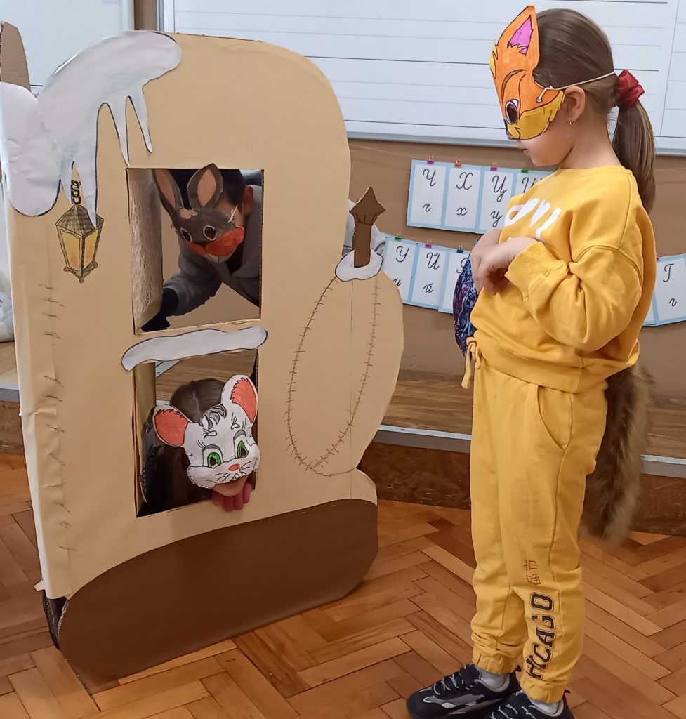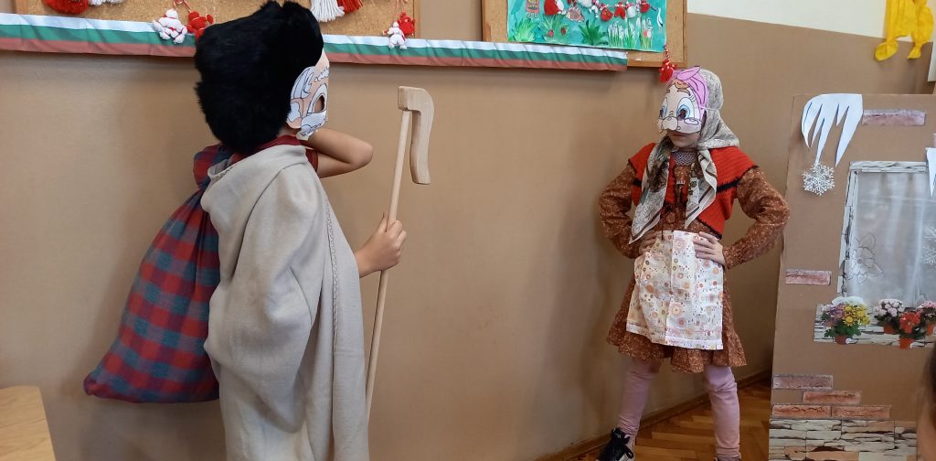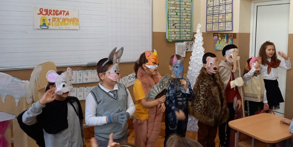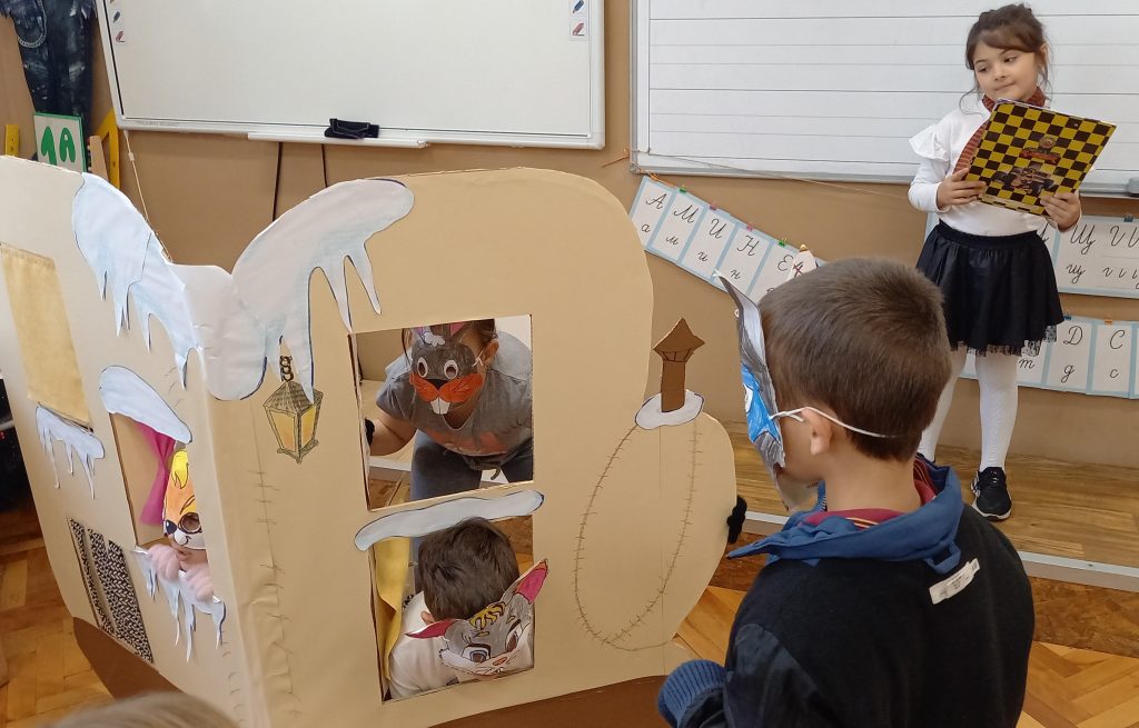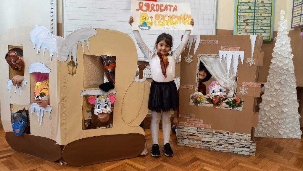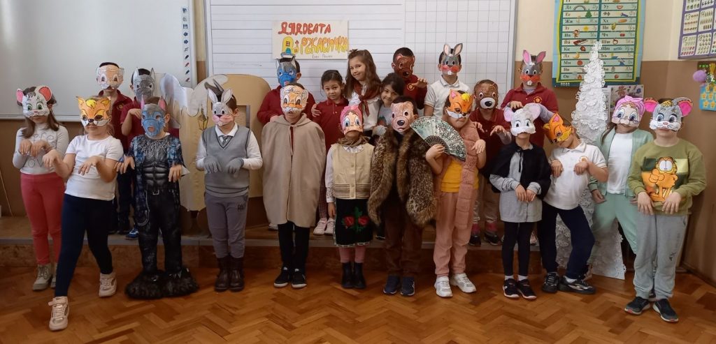 С огромно желание и проявена артистичност, начинаещите актьори репетираха почти всеки ден .Децата бяха разделени на три групи и всяка от тях изнесе представление пред малчуганите от подготвителната група и ученици от 1б и 1в клас. Навсякъде бяха посрещнати и изпратени с бурни овации. Малките ученици се запознаха и визуално с автора на приказката – Елин Пелин и видяха нов вариант за края й. Децата от 1а клас разбраха, колко е сериозен трудът на артиста. Колко е дълга подготовката и репетициите, и колко кратко е самото представление. С голям интерес публиката следеше играта на артистите, слушаше разказа на разказвача и търсеше поуката в приказката. Стигнаха до идеята, че щом животните, които са врагове в природата, могат да живеят заедно, значи и хората могат да бъдат задружни.
